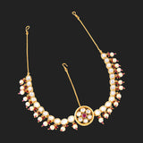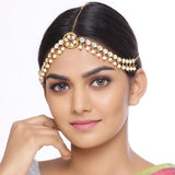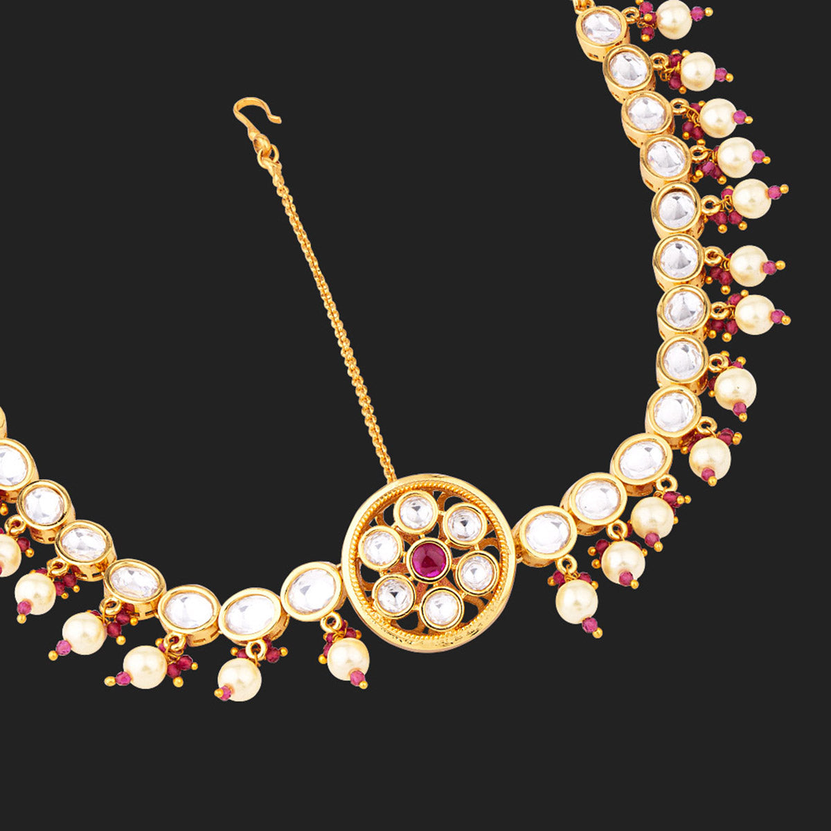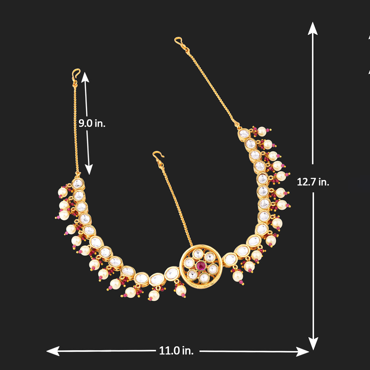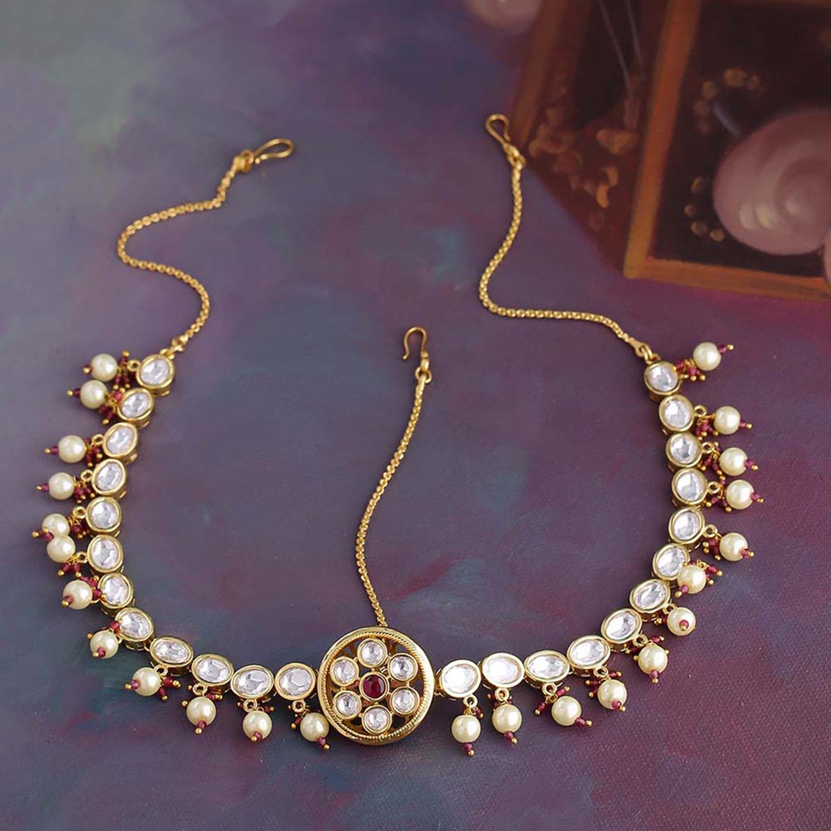 Inspired by the sights and sounds of the heritage city of Udaipur, this light maatha patti style maang tika has been fashioned out of brass. Adorned with a floral motif and faux kundan gems, the yellow gold plated tika will look splendid when paired with ethnic and Indo-Western looks. This piece of jewelry comes with the Voylla assurance of quality and durability.