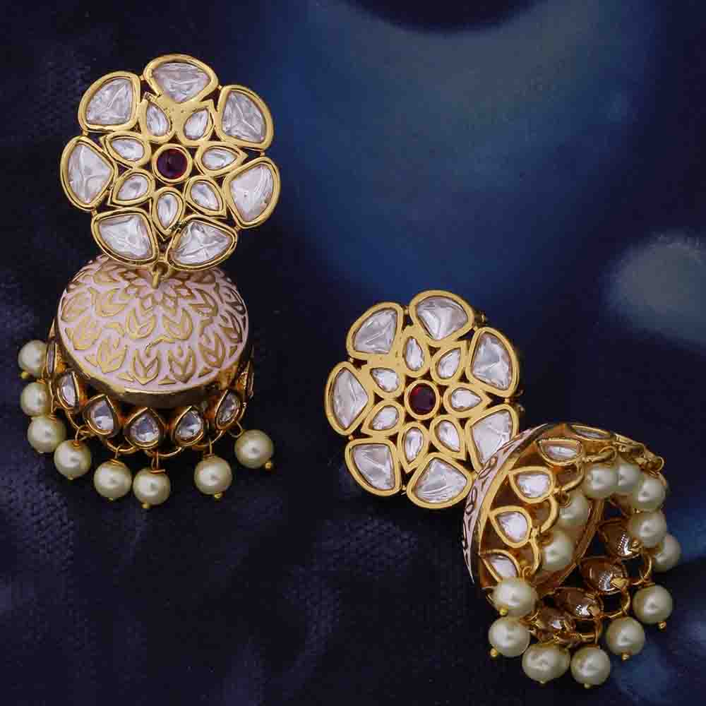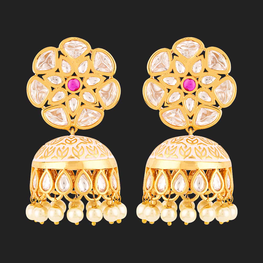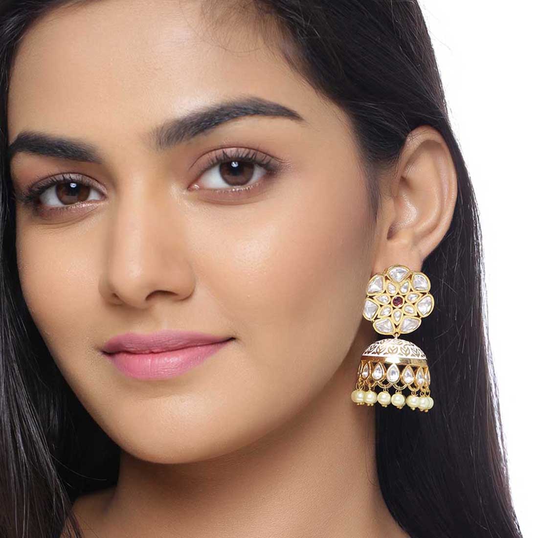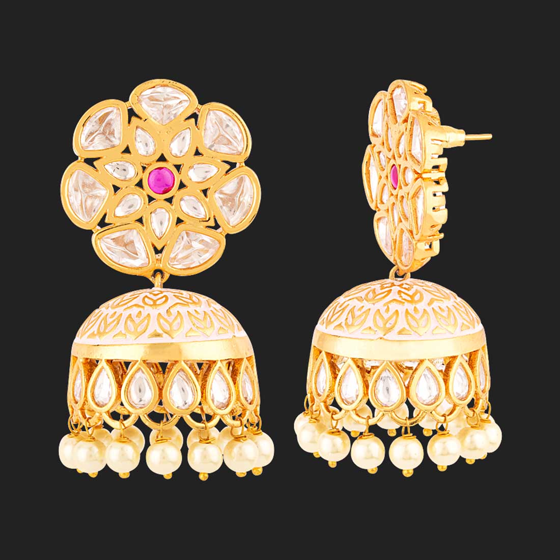 Udaipur Floral Kundan Gems Jhumka Earrings