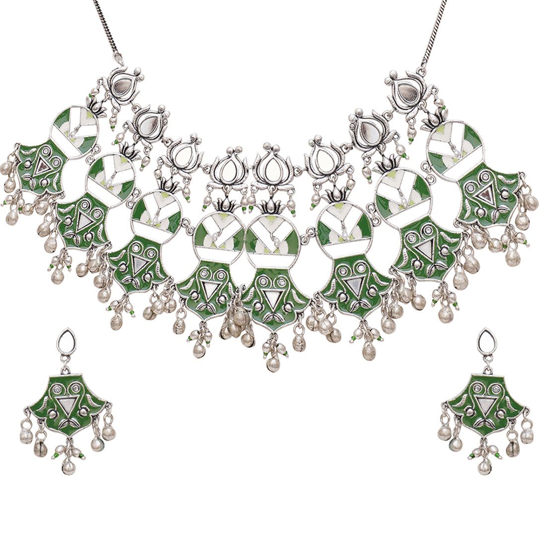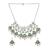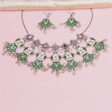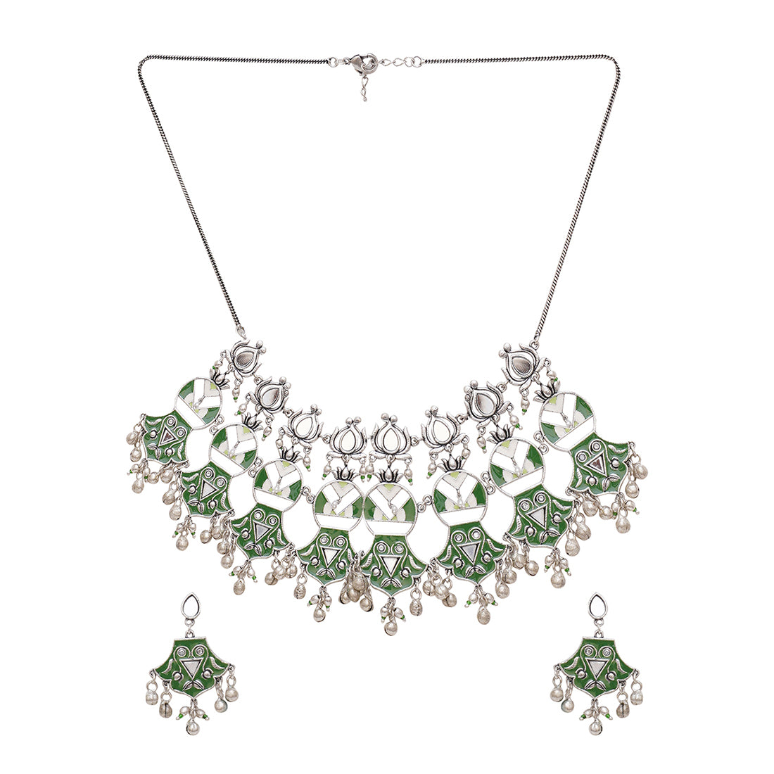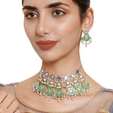 Festive Hues Unique Green Lotus Motif Choker Necklace Set