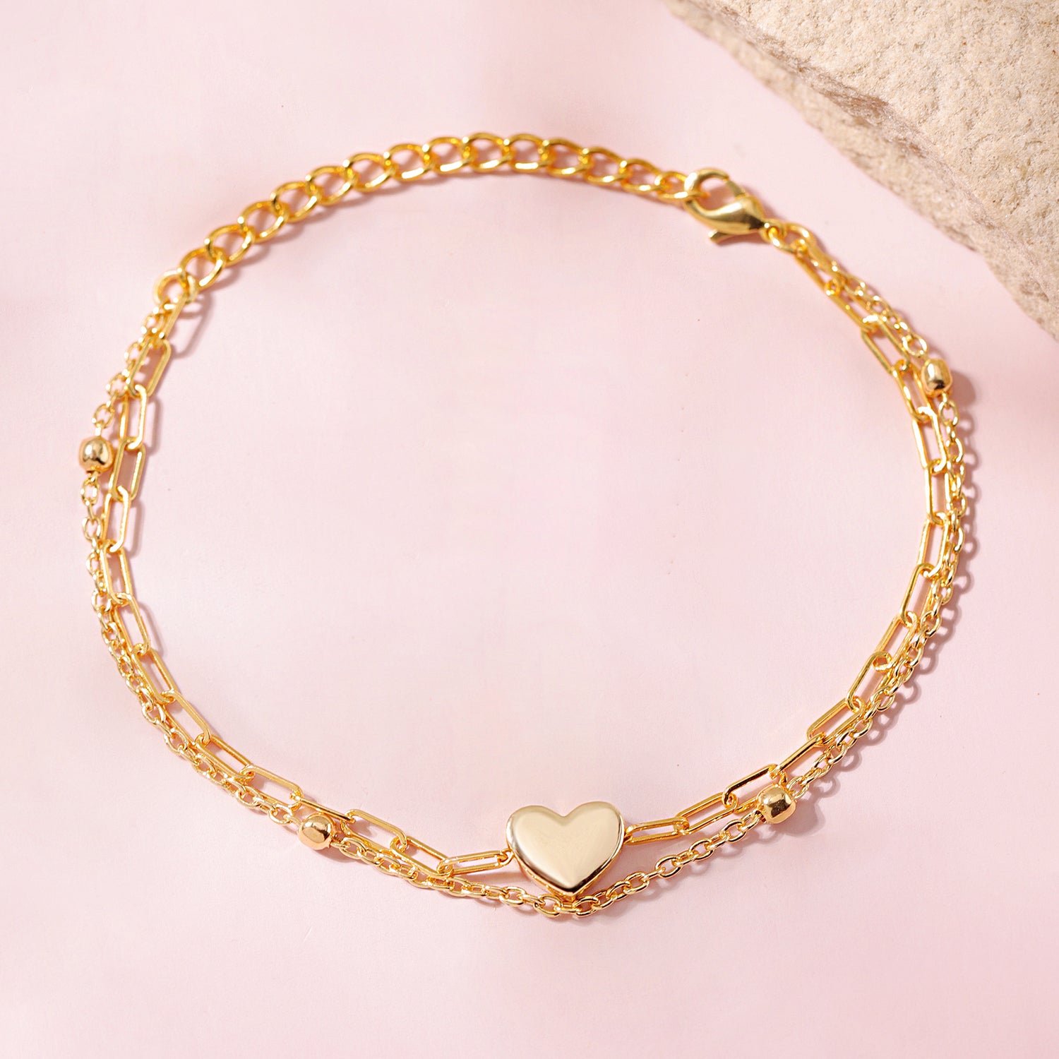 Valentine’s Day Golden Heart Layered Chain Bracelet