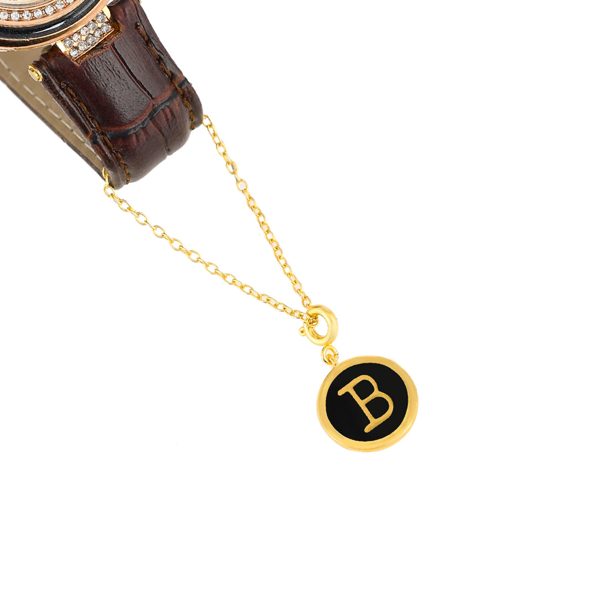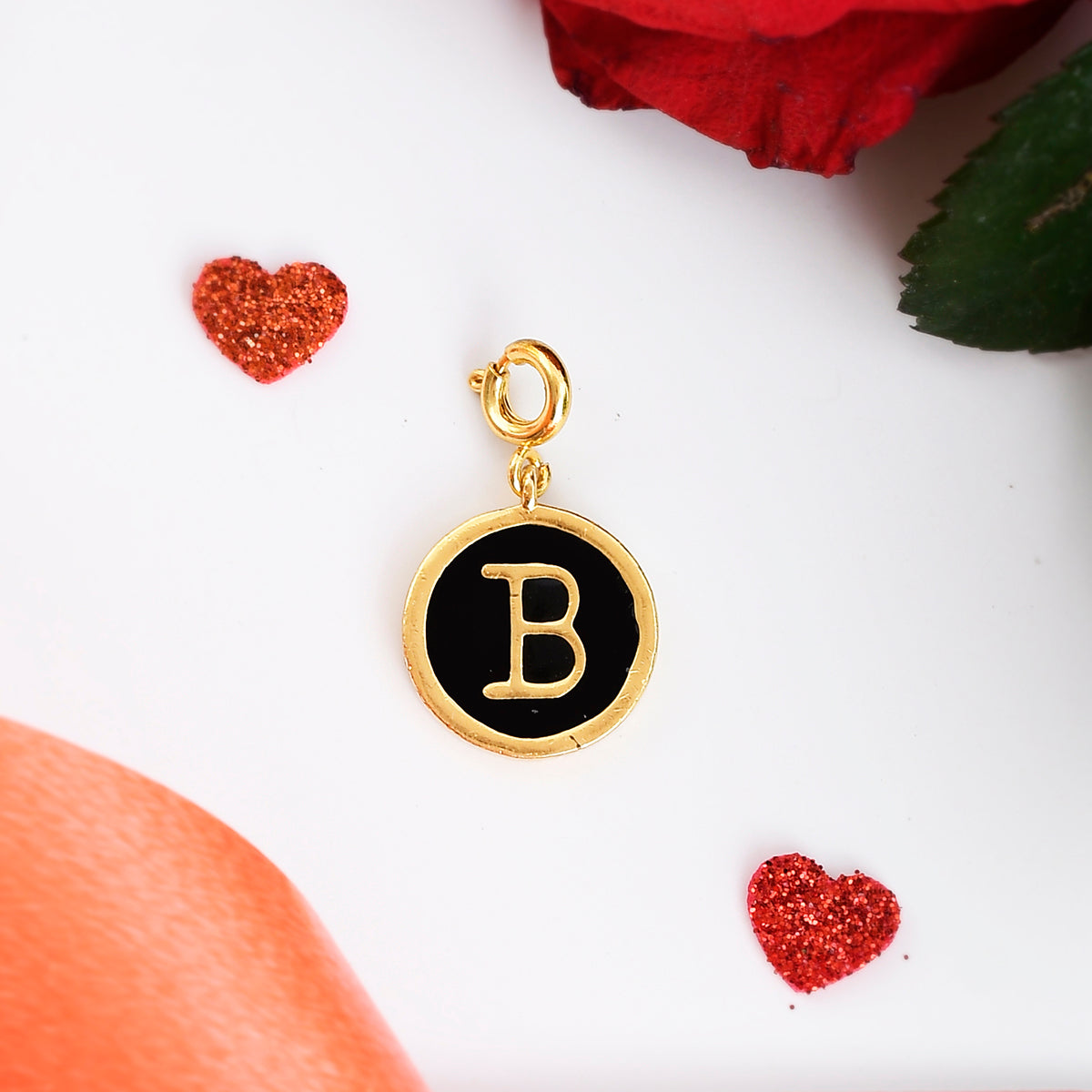 Black enamel alphabet B charm for watches and bracelet. Made from brass and gold plated. The perfect V Day gift for a loved one.