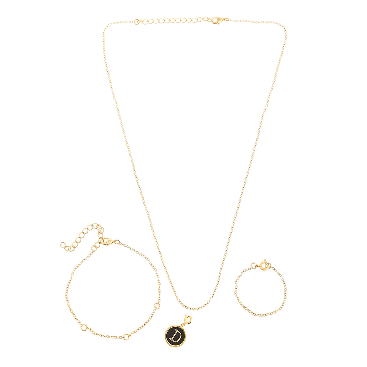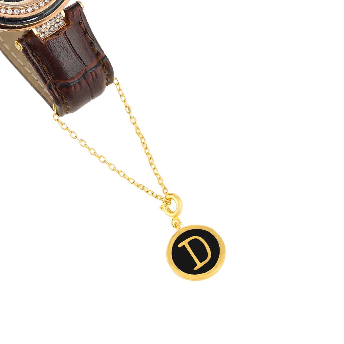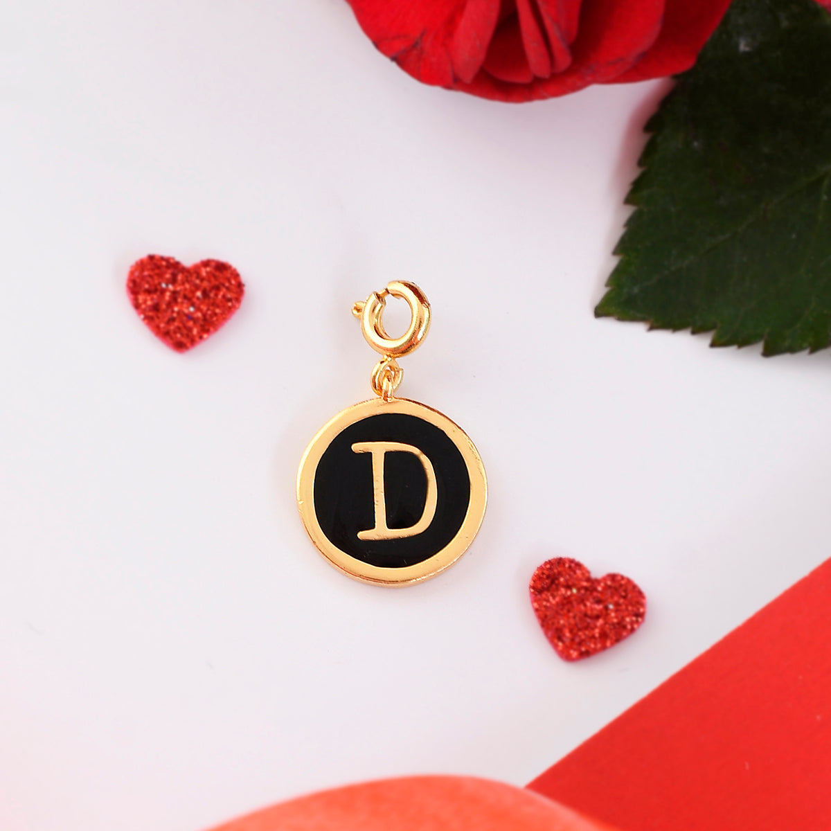 D alphabet charm with blue enamel details. Made from brass and gold plated. A good gifting option and can be paired with watches and bracelets