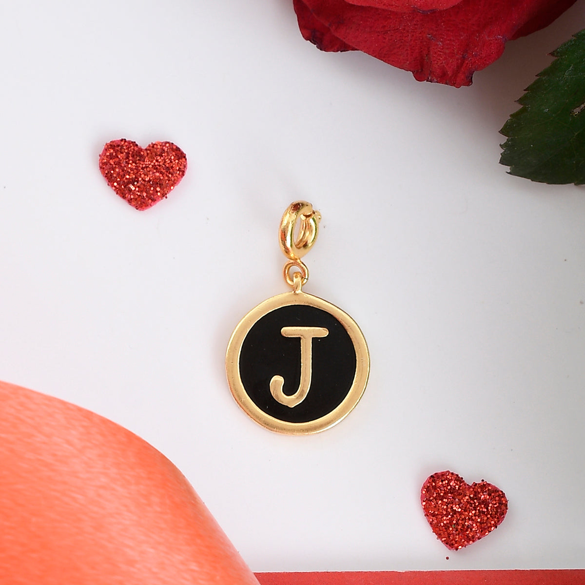 Alphabet J Black Enamel Charm