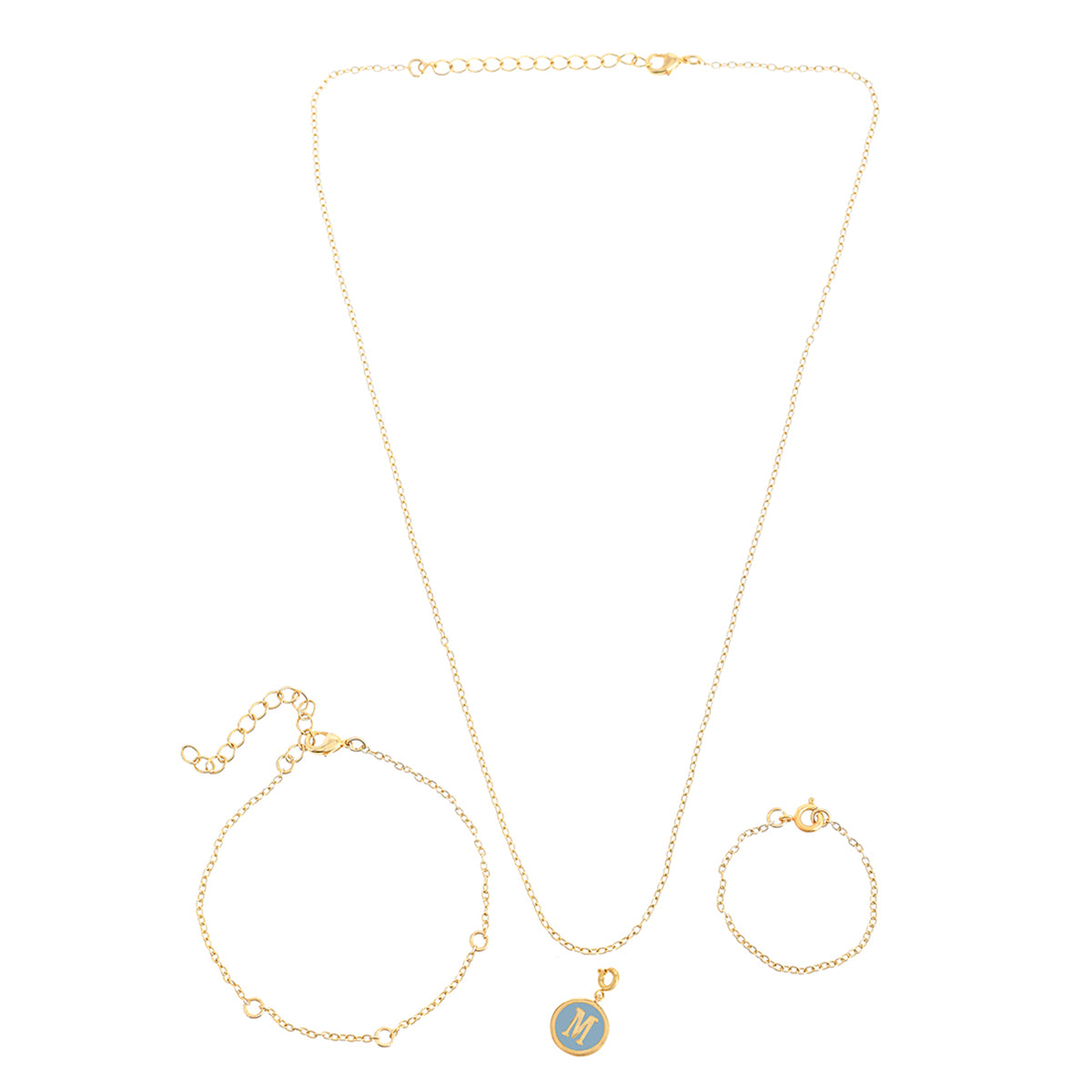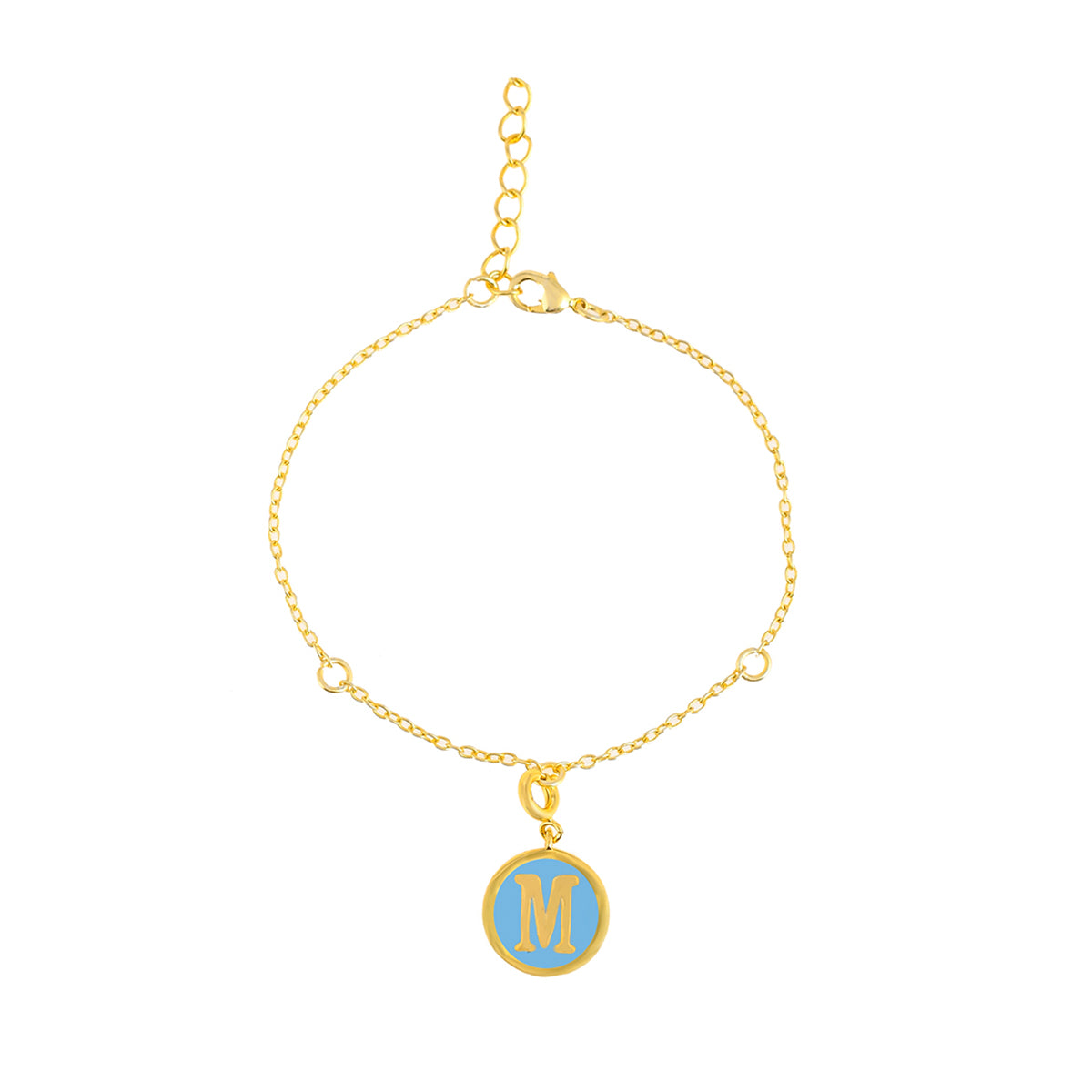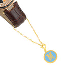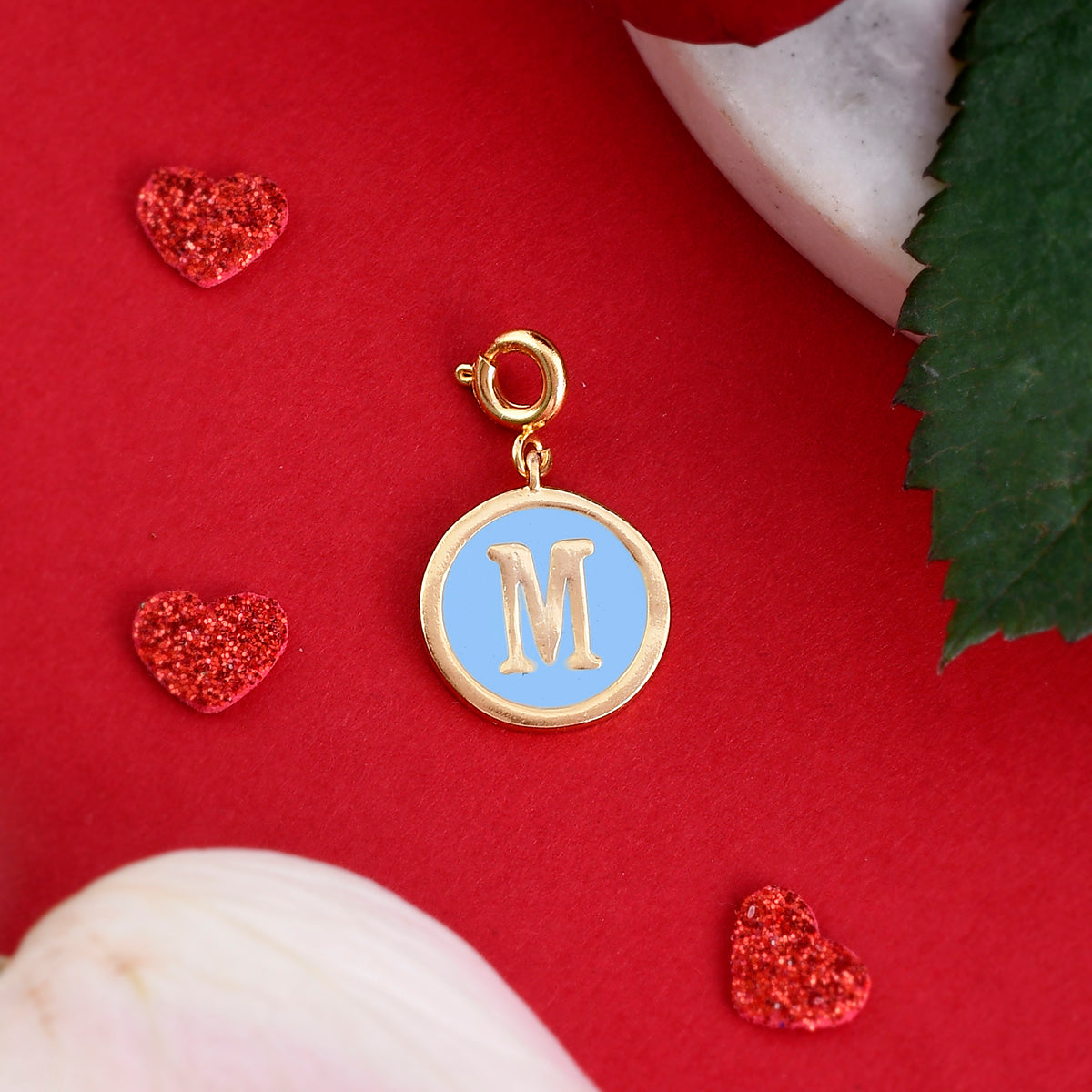 M alphabet charm with blue enamel. Gold plated and fashioned out of brass. The charm can be added to bracelets and watches. Will make for the perfect Valentine's Day gift.
