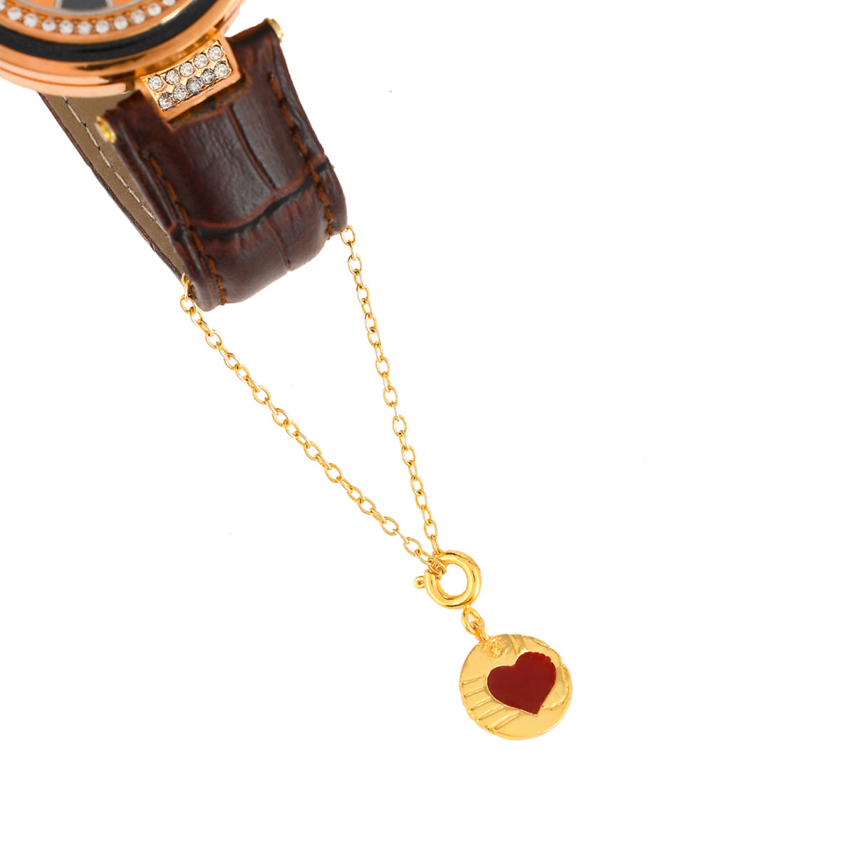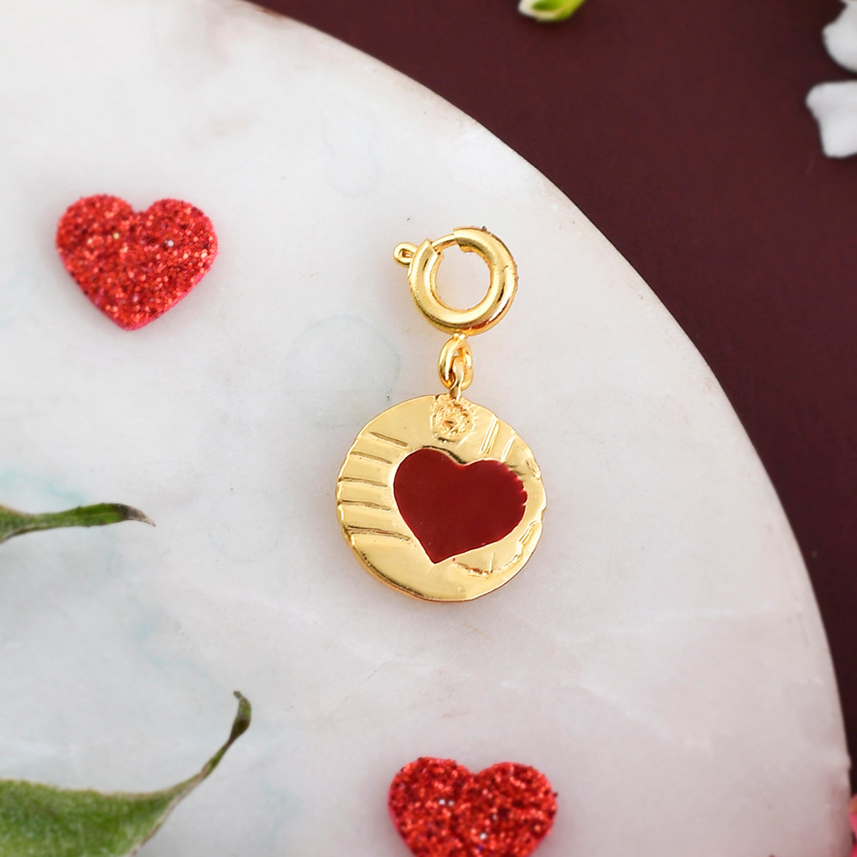 Red enamelled heart charm made from brass. Gold plated and can be paired with watches and bracelets of all kinds.