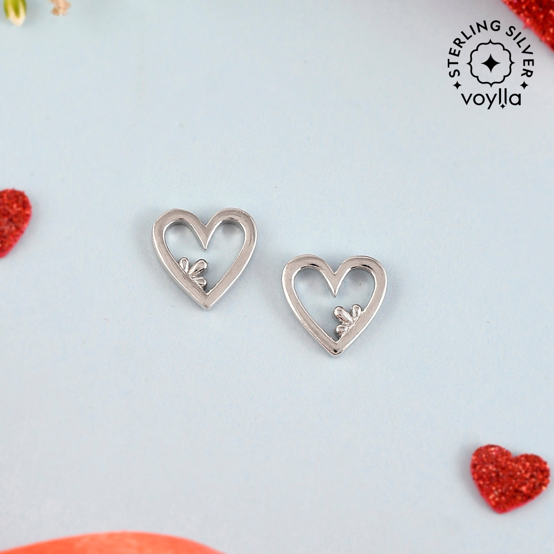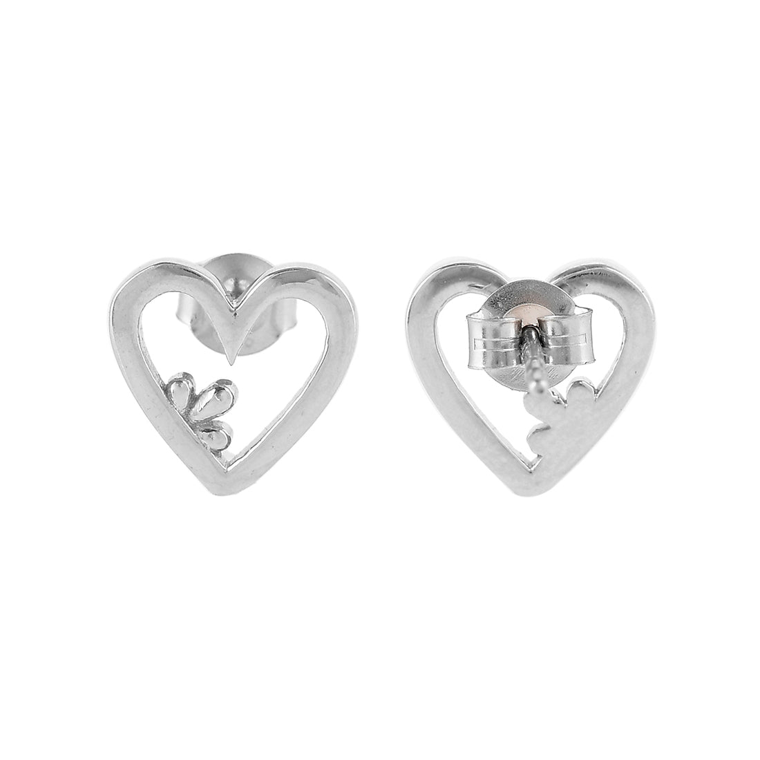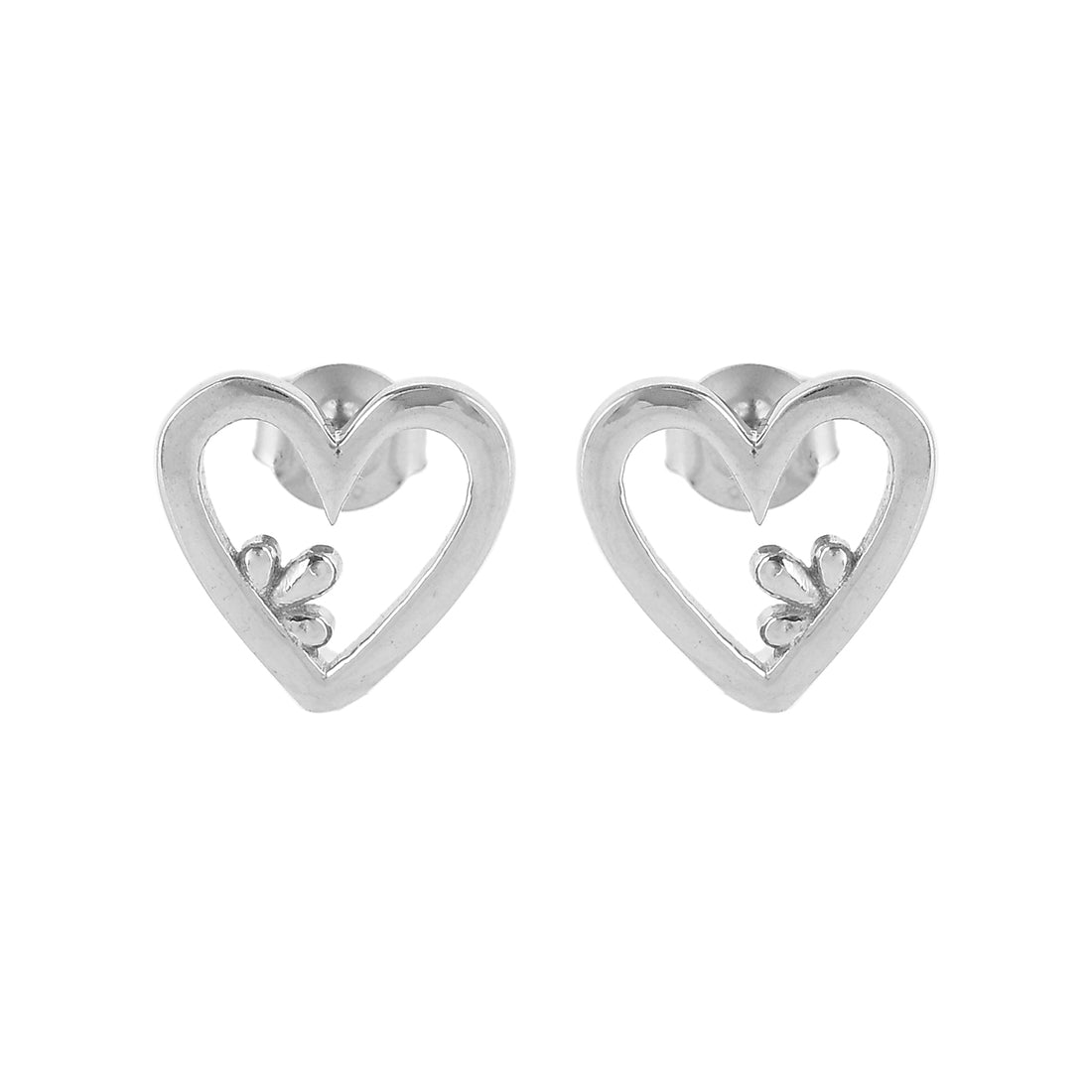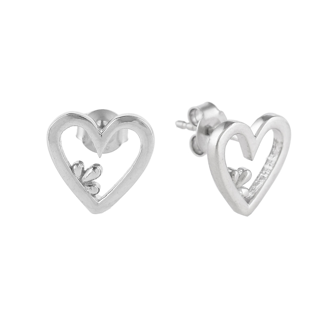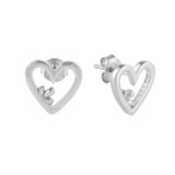 Clover and hearts pattern stud earrings made from 925 sterling silver. White rhodium plated, the lightweight and versatile pair will make the perfect gift for Valentine's Day.