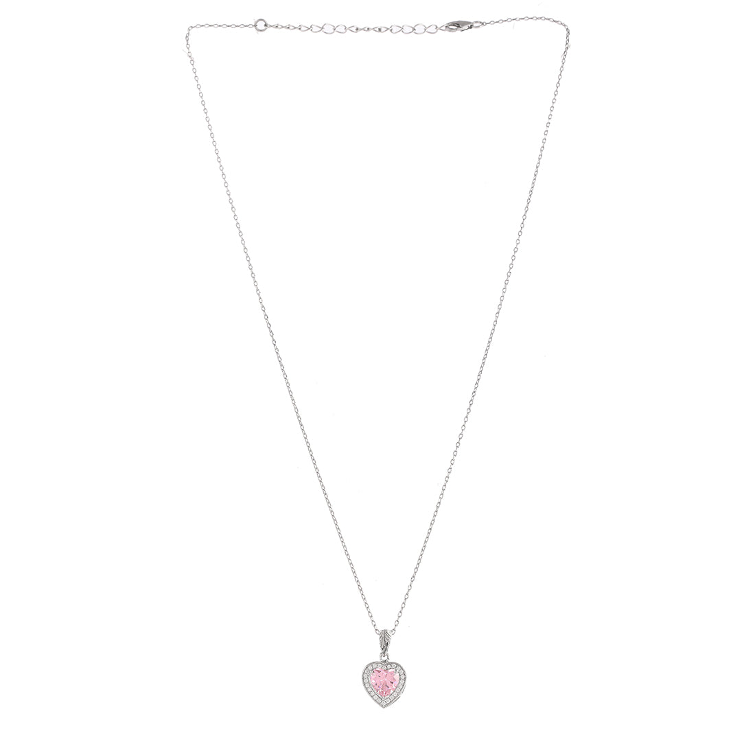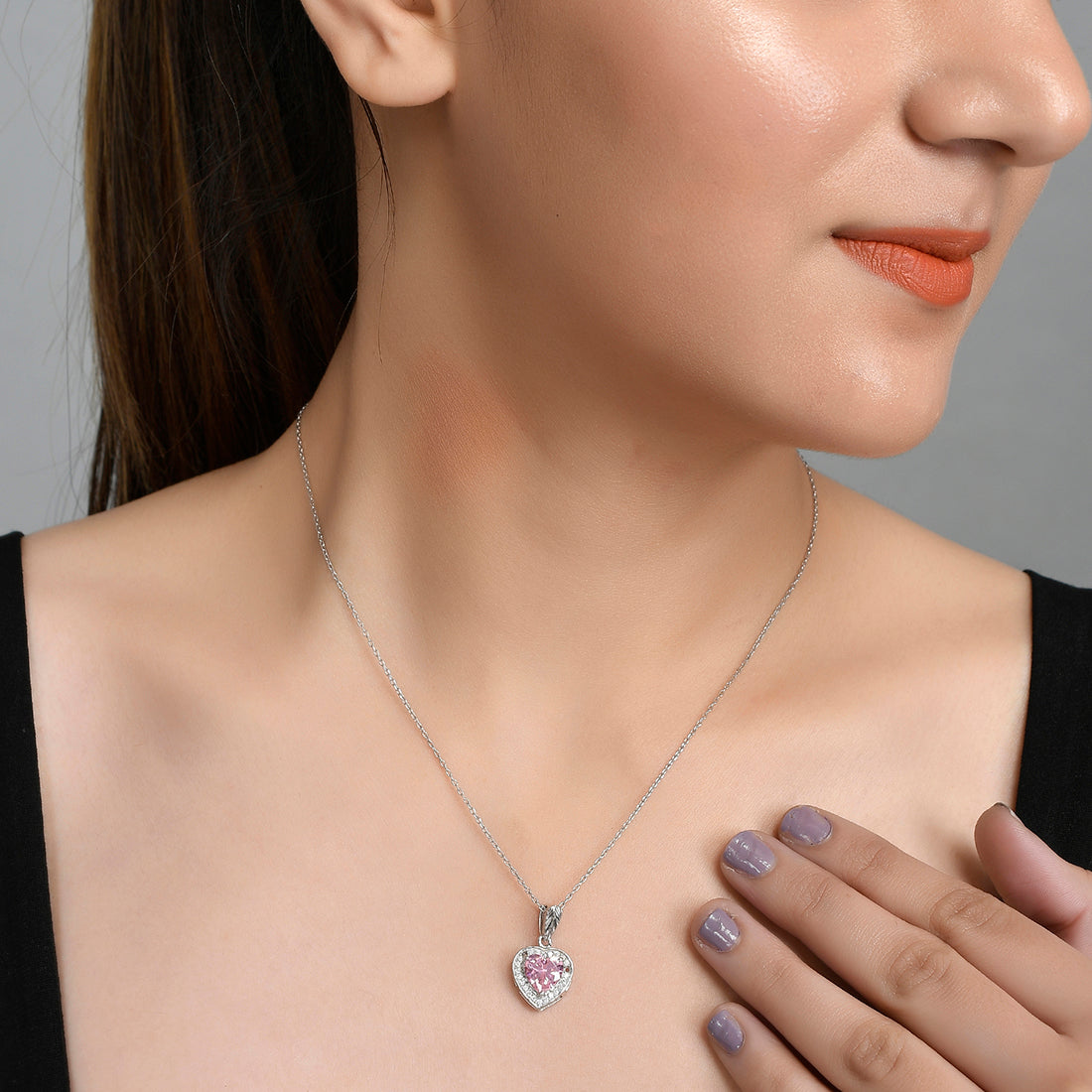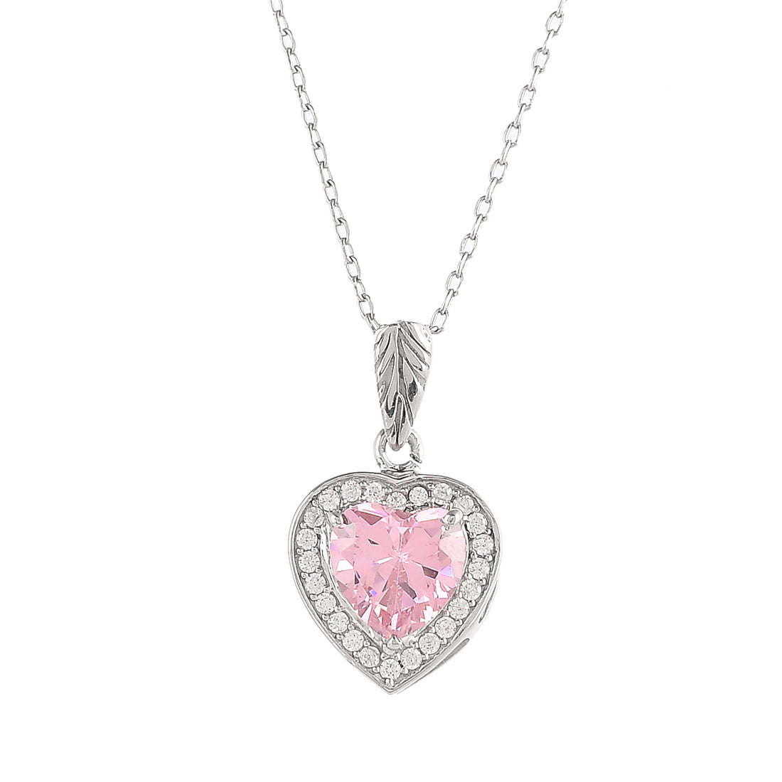 925 sterling silver heart pendant with silver and pink zirconia gemstones. White rhodium plated, the pendant is the perfect V Day gift and can be threaded in chains as well as added to bracelets as a charm.