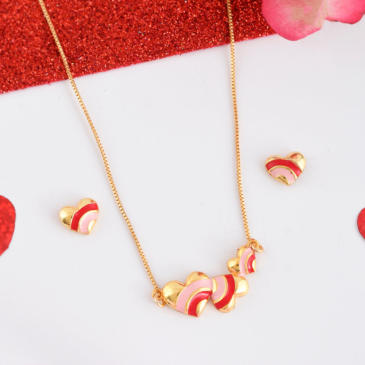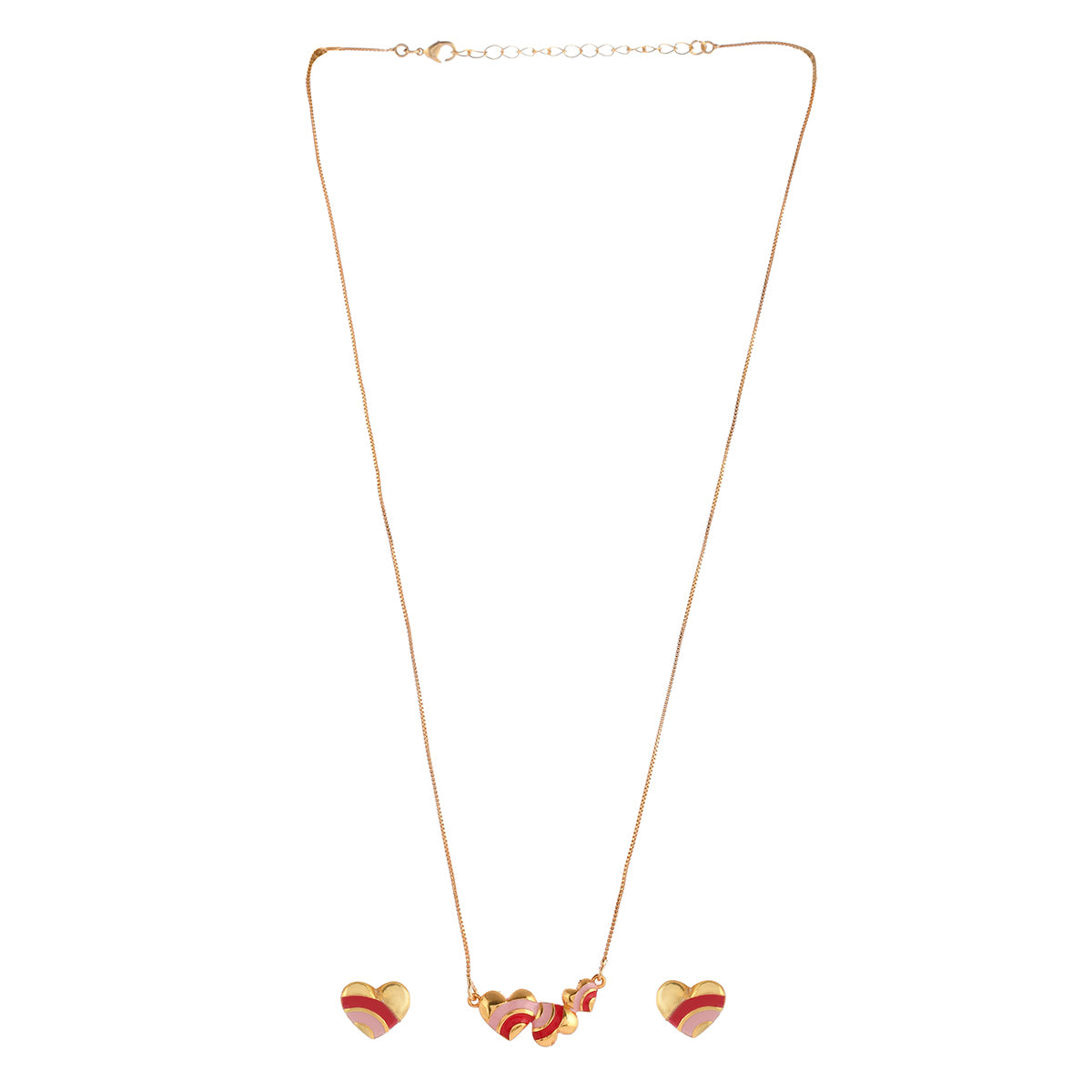 Pink and Red Enamel Hearts Pendant Set