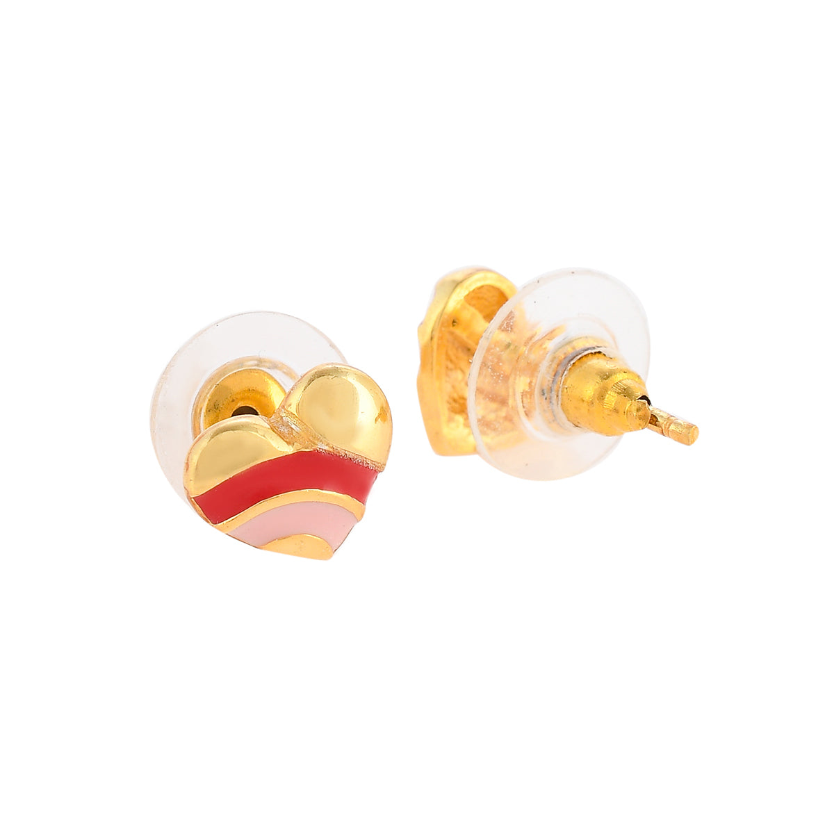 Pink and red enamel hearts pendant set with gold plating. Made from brass and a good and versatile gifting option.