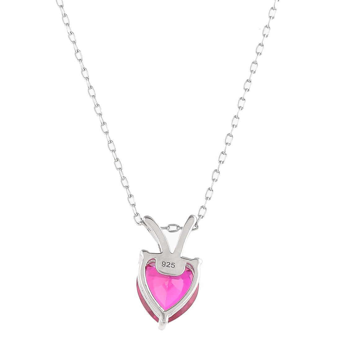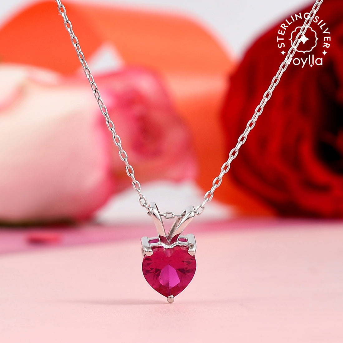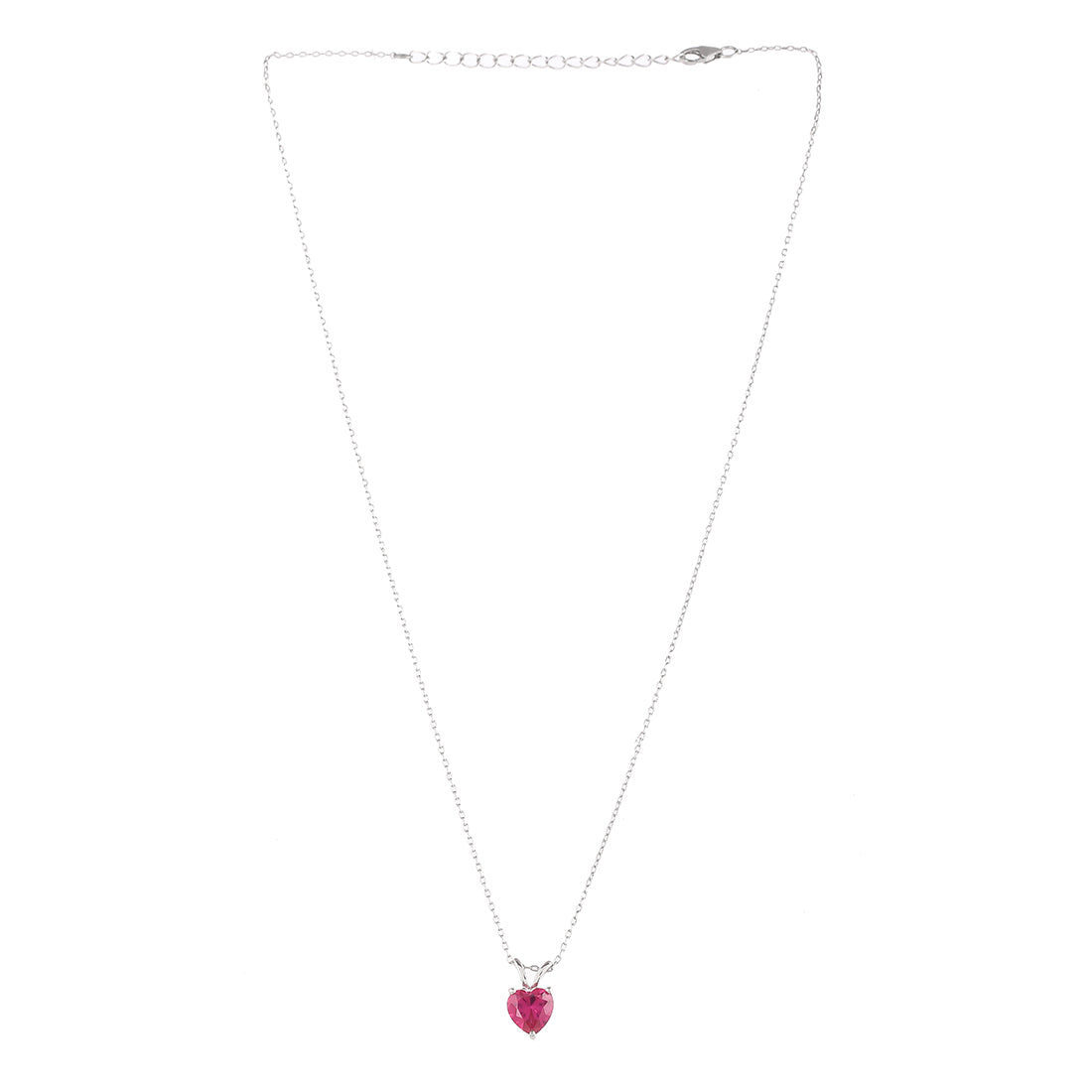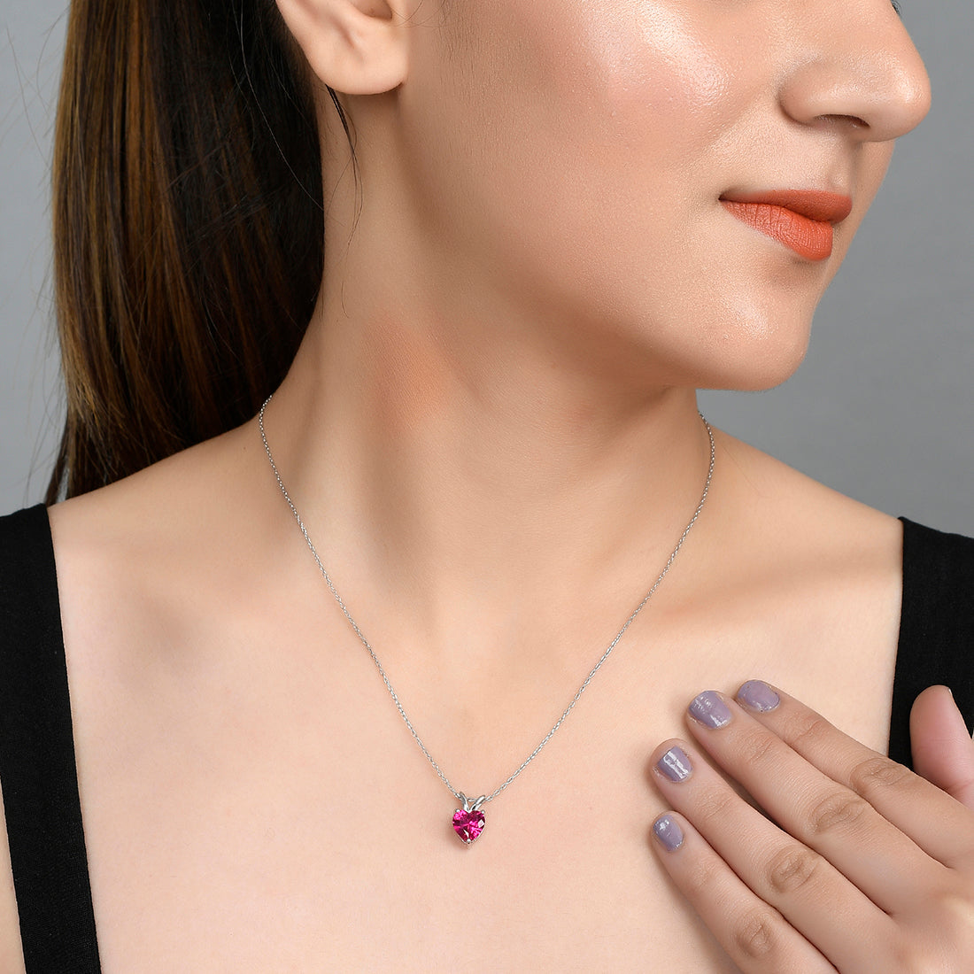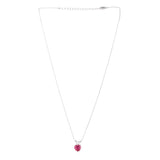 A charming heart pendant fashioned out of 925 sterling silver. White rhodium plated and adorned with a bright red zirconia gemstones. Pair with your V Day look to add an instant sparkle to it.