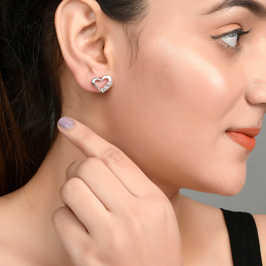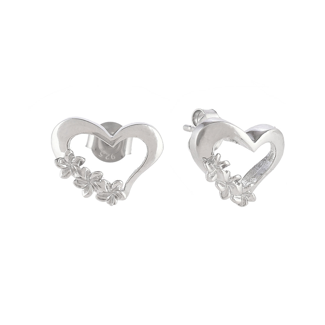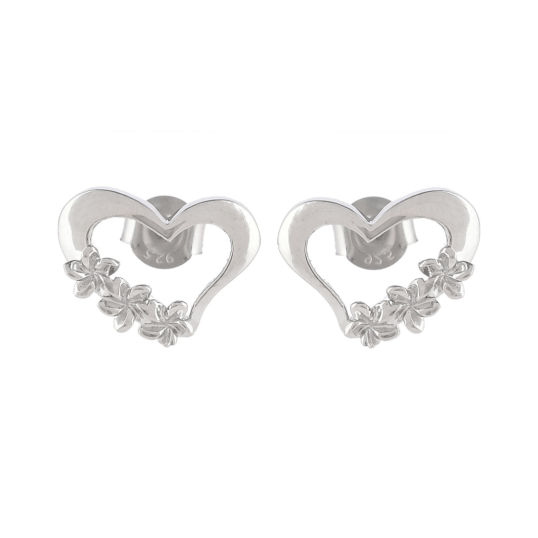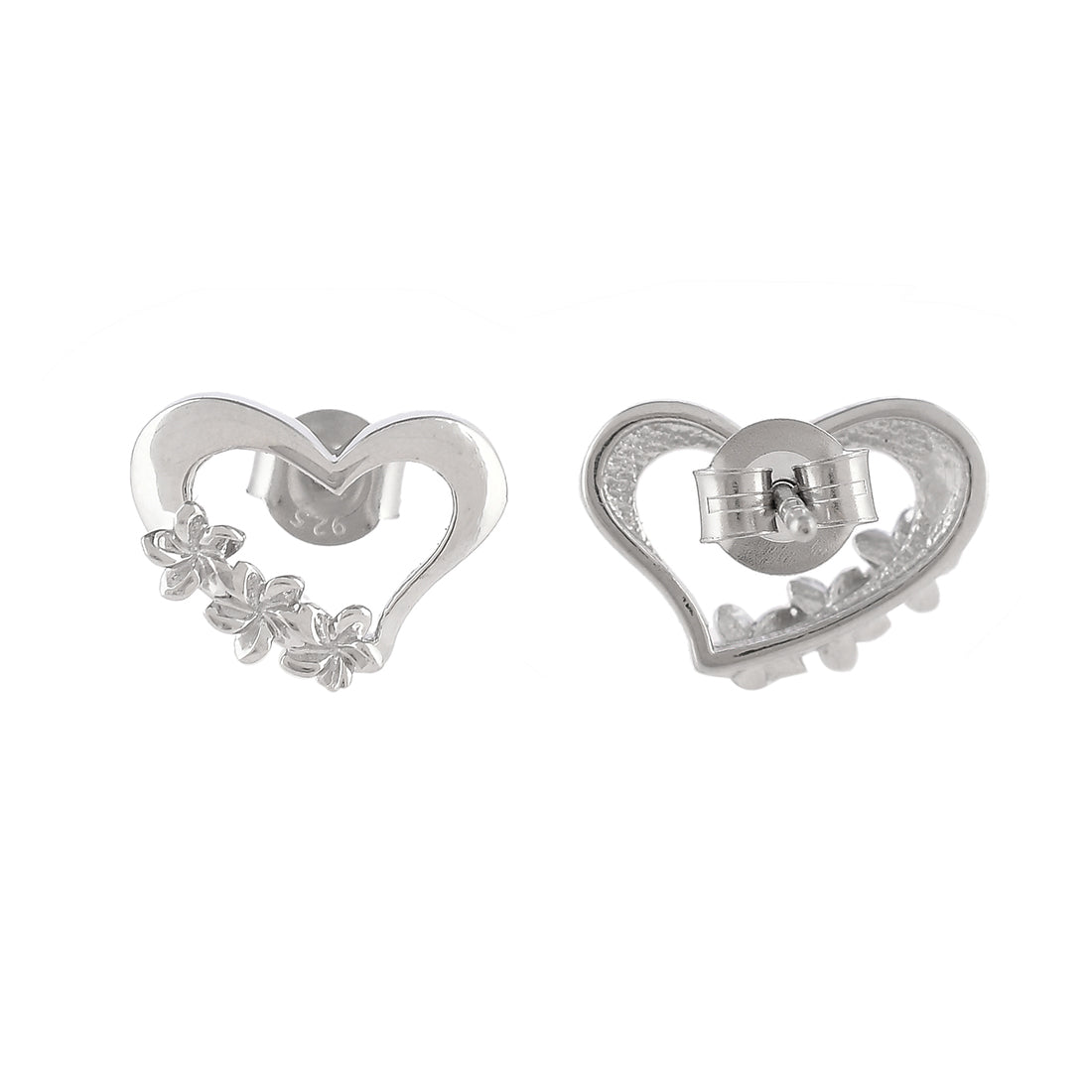 Star studded heart alluring stud earrings fashioned out of 925 sterling silver. The pair has been given a white rhodium plating and features a high polish finish. Lightweight, comfortable and versatile.