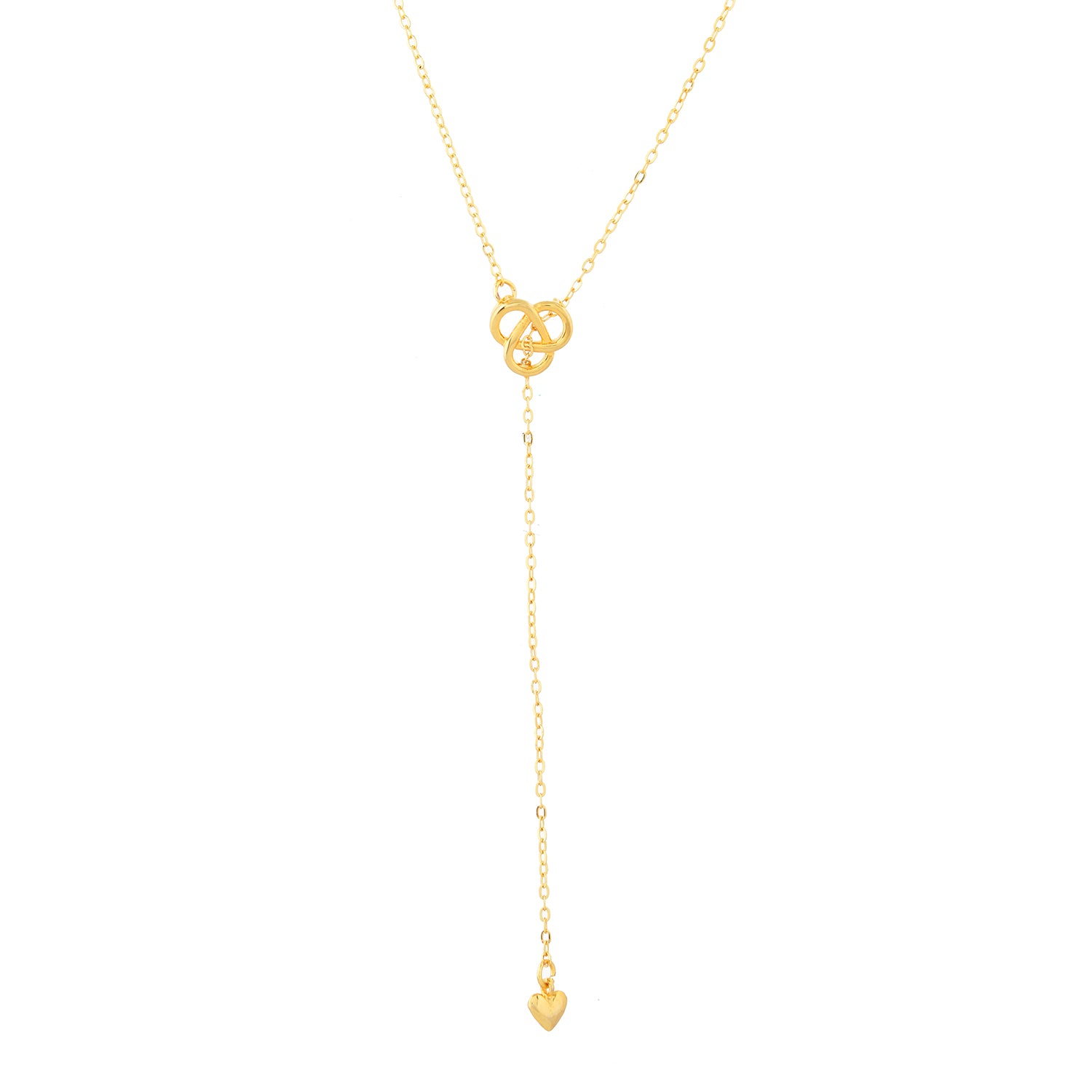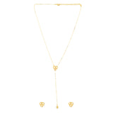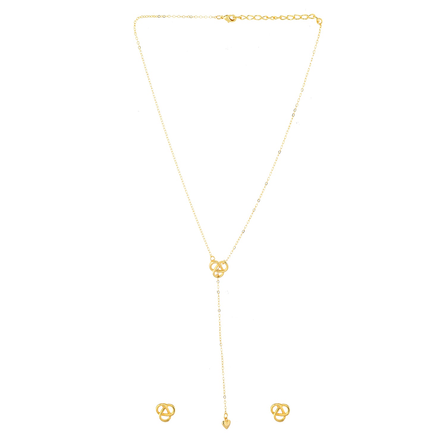 The Valentine's Day Forever In Love Pendant Set is a stunning piece from the Valentines Collection, crafted with meticulous attention to detail and quality. Made from high-quality brass and plated with Yellow Gold, this set exudes elegance and sophistication. The pendant features an intricate knot design symbolizing eternal love, with a delicate heart charm dangling gracefully. The matching earrings mirror the pendant's knot design, creating a cohesive and stylish look. The set's golden hue adds a touch of luxury, making it perfect for festive occasions, weddings, and parties. This American Diamond Pendant Set is an ideal gift for women, whether for Valentine's Day, Diwali, Rakshabandhan, Christmas, or New Year. It is a versatile accessory that complements both traditional and contemporary outfits, making it a cherished addition to any jewelry collection. Surprise your loved ones—be it your sister, girlfriend, wife, or mother—with this exquisite piece that speaks volumes of your affection and thoughtfulness.