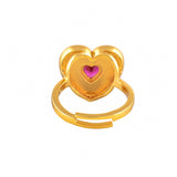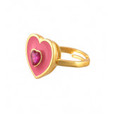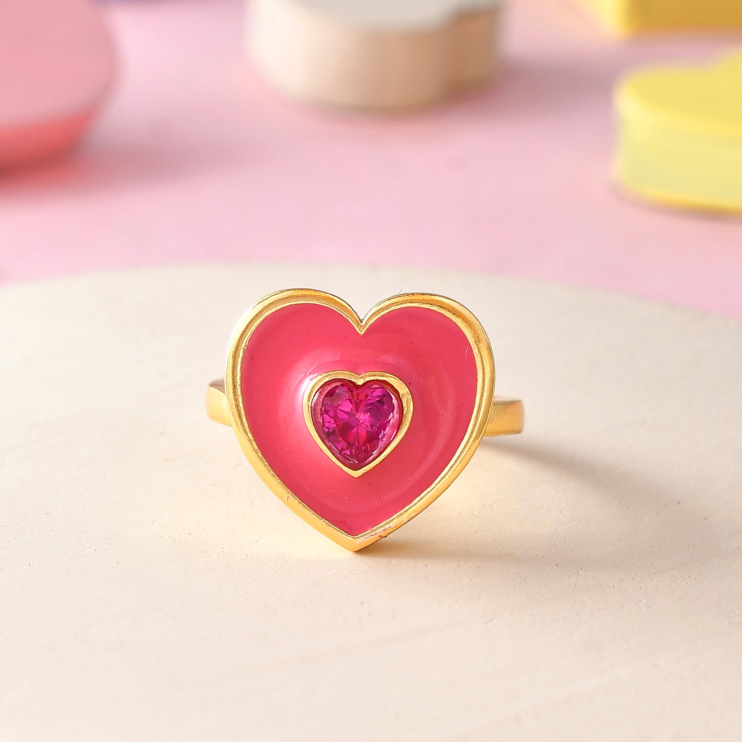 The perfect gift for Valentine's Day, this lovely heart shaped ring has been given a beautiful pink enamel finish. Adorned with a pink heart shaped CZ gemstone, the adjustable ring has been fashioned out of brass. Gold plating adds to the charm of this versatile piece.