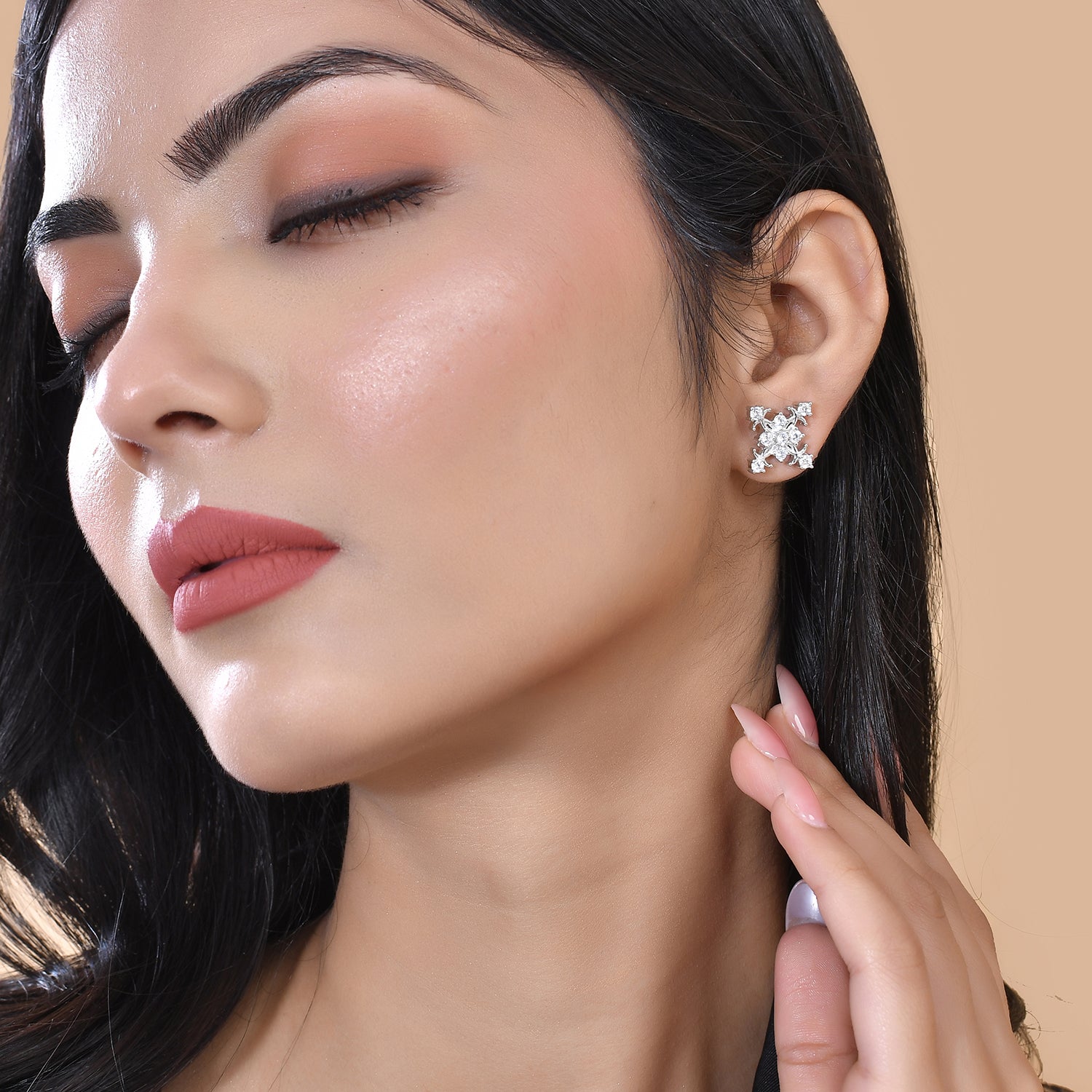 Step into a world of timeless romance with our Renaissance Floral Stud Earrings, The intricate floral design is adorned with sparkling cubic zirconia stones, evokes a sense of timeless beauty reminiscent of the Renaissance era. The lustrous white rhodium plating enhances the silver's radiance, symbolizing the purity and depth of your special connection.