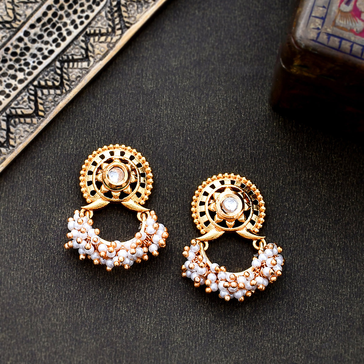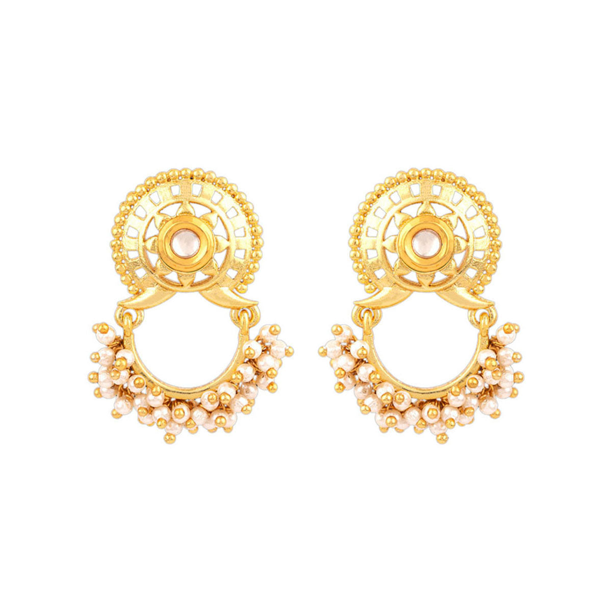 Veerangana Faux Pearls Brass Earrings