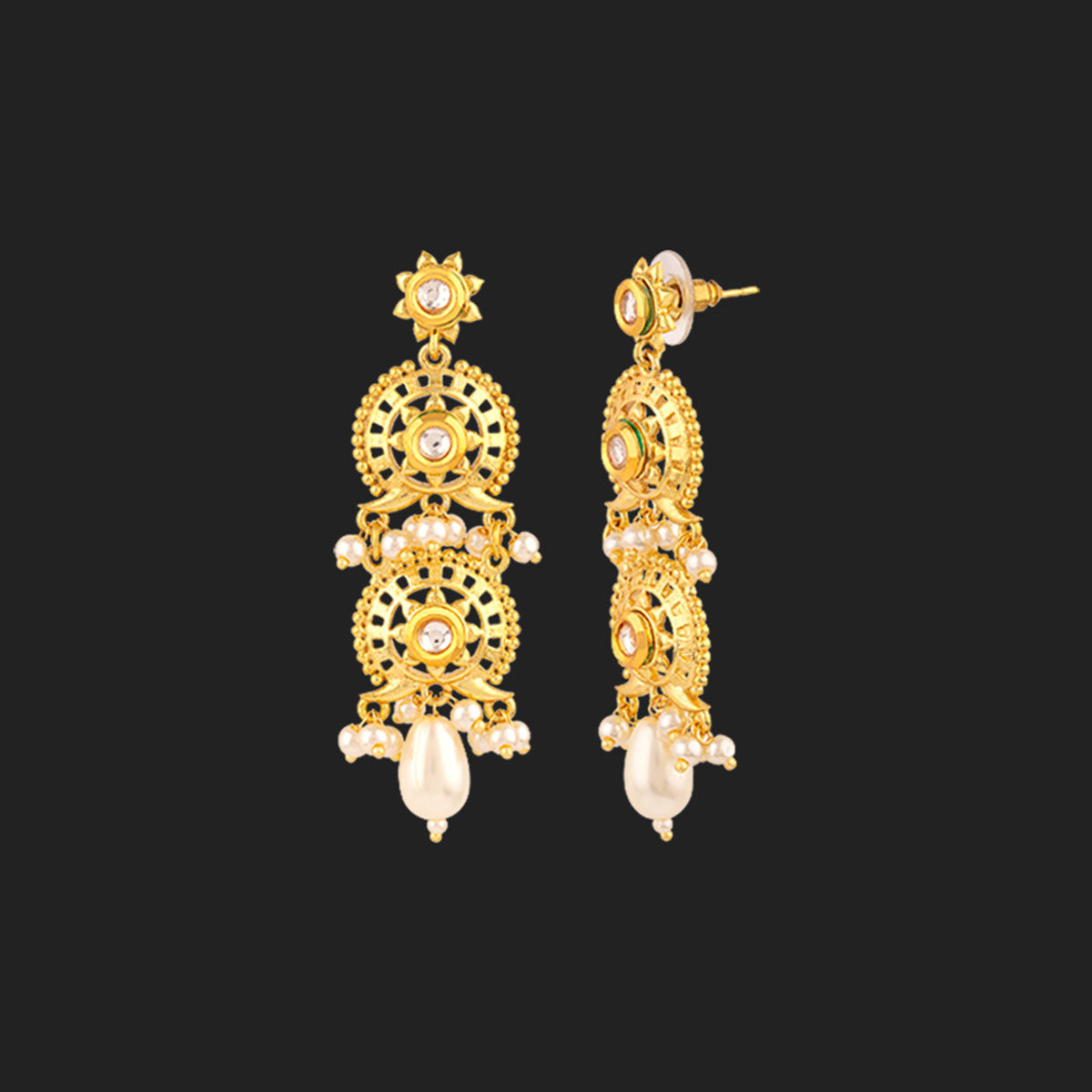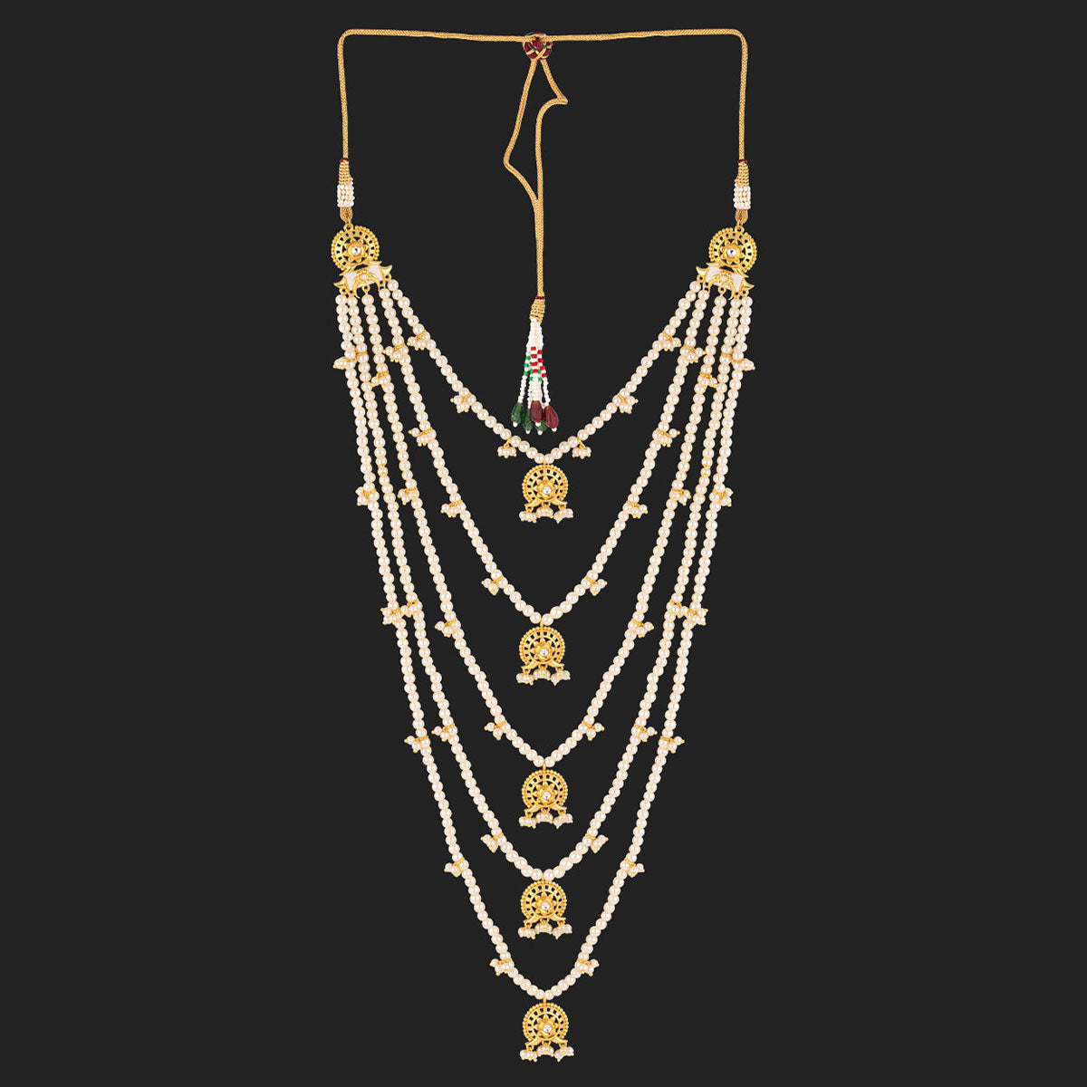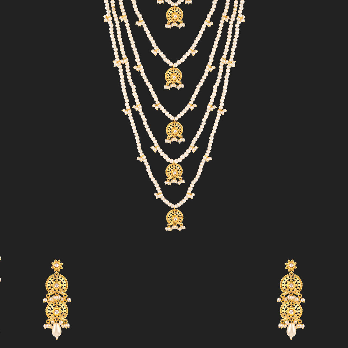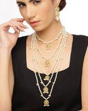 Layered style necklace set inspired by the life and times of Jhansi ki Rani Lakshmibai. Made from brass and yellow gold plated. Wear with a formal kurta.