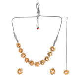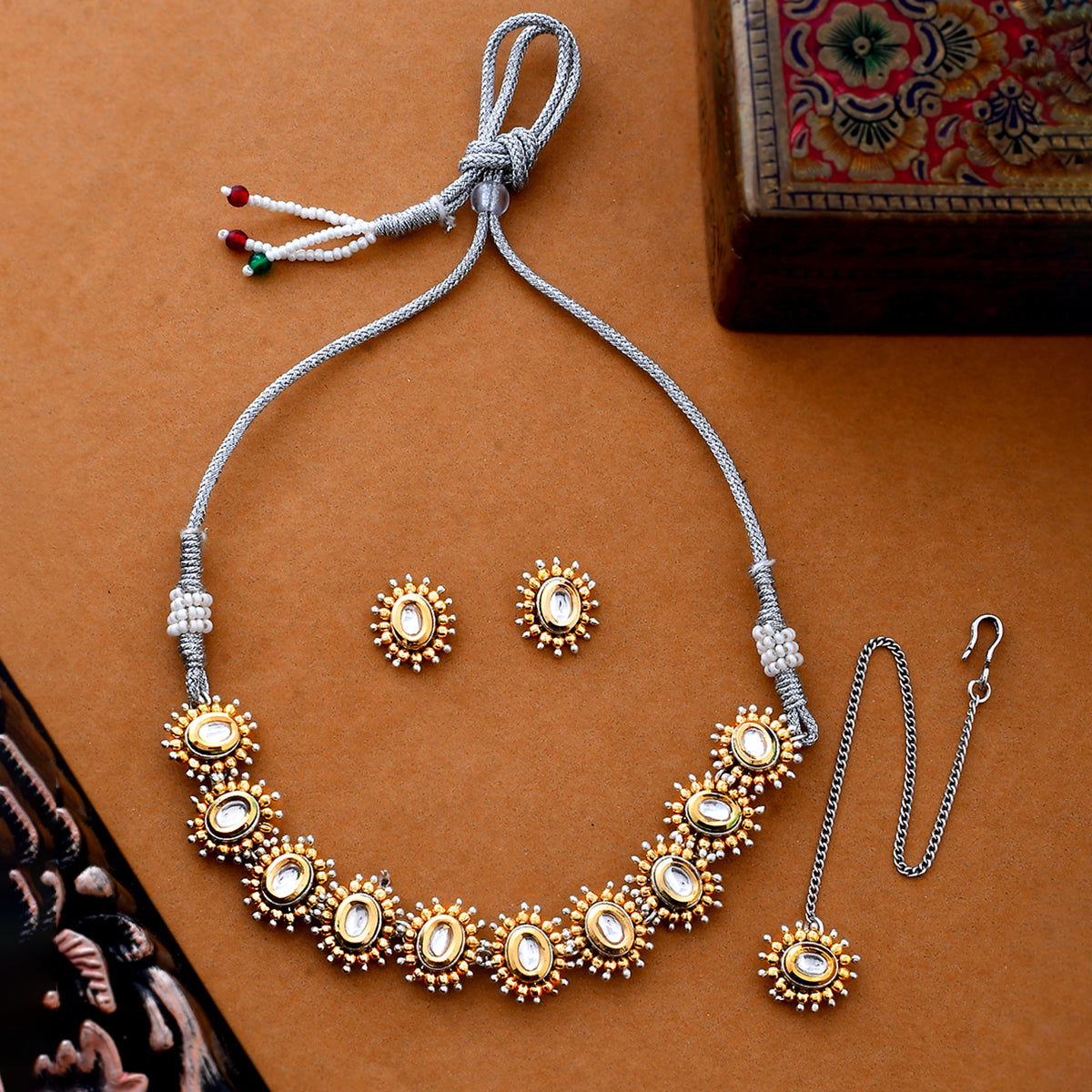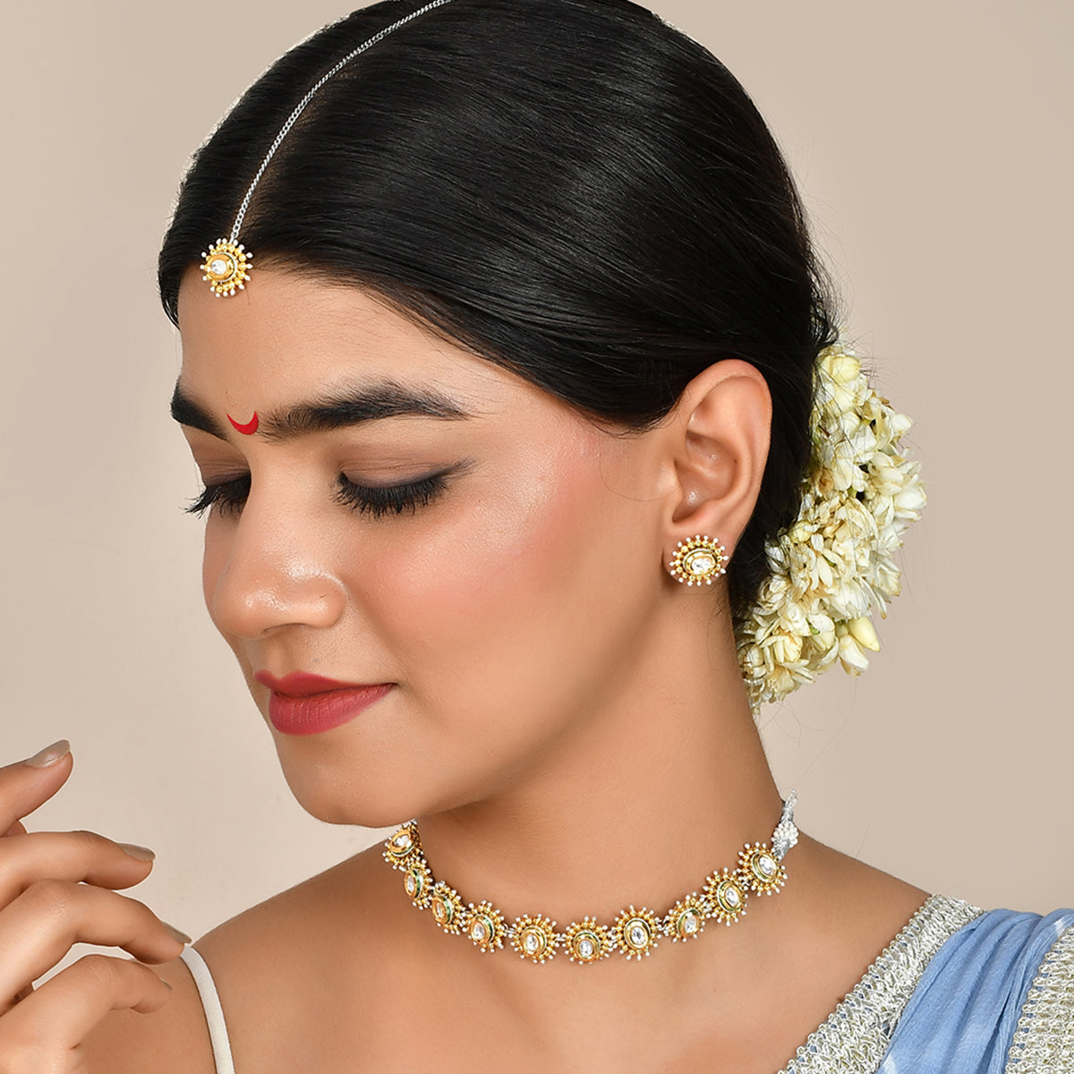 Veerangana White Pearls and Oval Cut Kundan Maang Tika Set