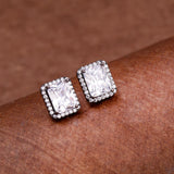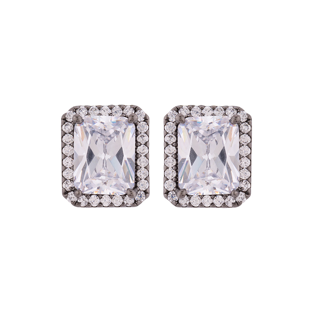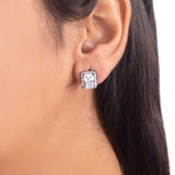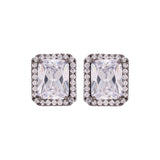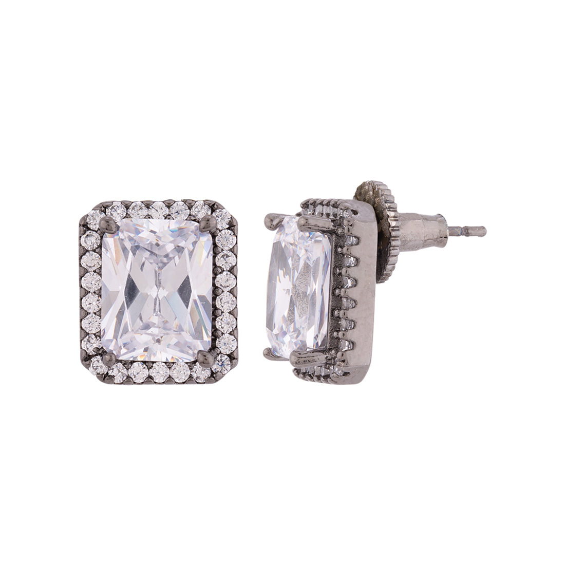Brass stud earrings fashioned into a Victorian inspired design. Embellished with American Diamond gems and oxidised silver plated. Good for formal wear. This piece of jewelry comes with the Voylla assurance of quality and durability.