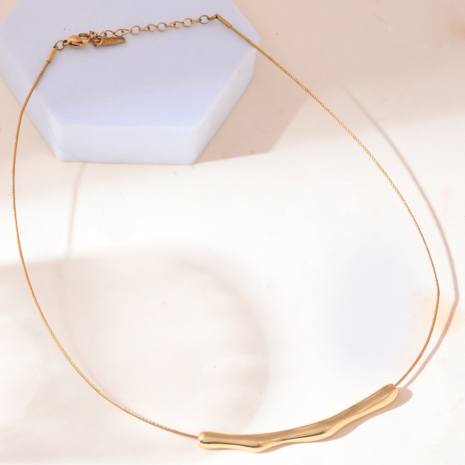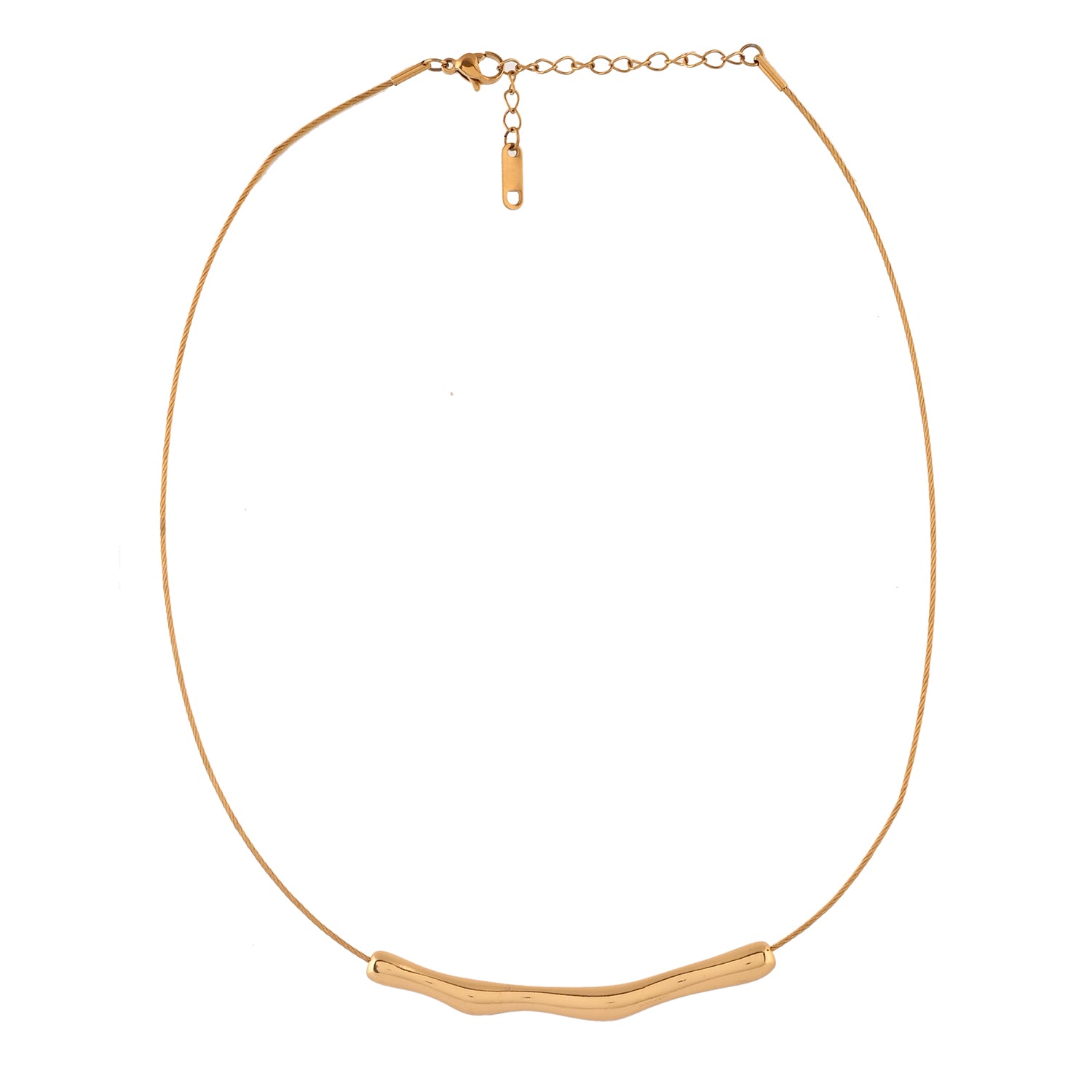 Dive into the world of timeless elegance with the Voylla Necklace, a masterpiece crafted for the modern woman. This exquisite piece features a sleek, minimalist design with a unique wavy bar pendant that gracefully adorns the neckline. Made from high-quality alloy and plated with luxurious yellow gold, this necklace is the perfect blend of sophistication and style. Whether you're dressing up for a party, heading to work, or planning a vacation, this versatile accessory will elevate any outfit. Ideal for gifting on special occasions like Valentine's Day, Diwali, Rakshabandhan, or Christmas, it’s a thoughtful present for your sister, girlfriend, wife, mother, or any special woman in your life. Embrace the allure of gold and make a statement with this stunning piece from Voylla