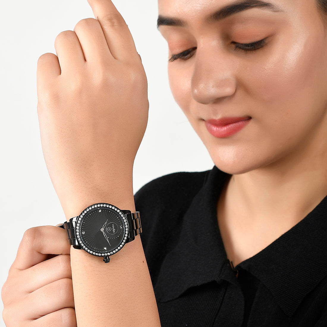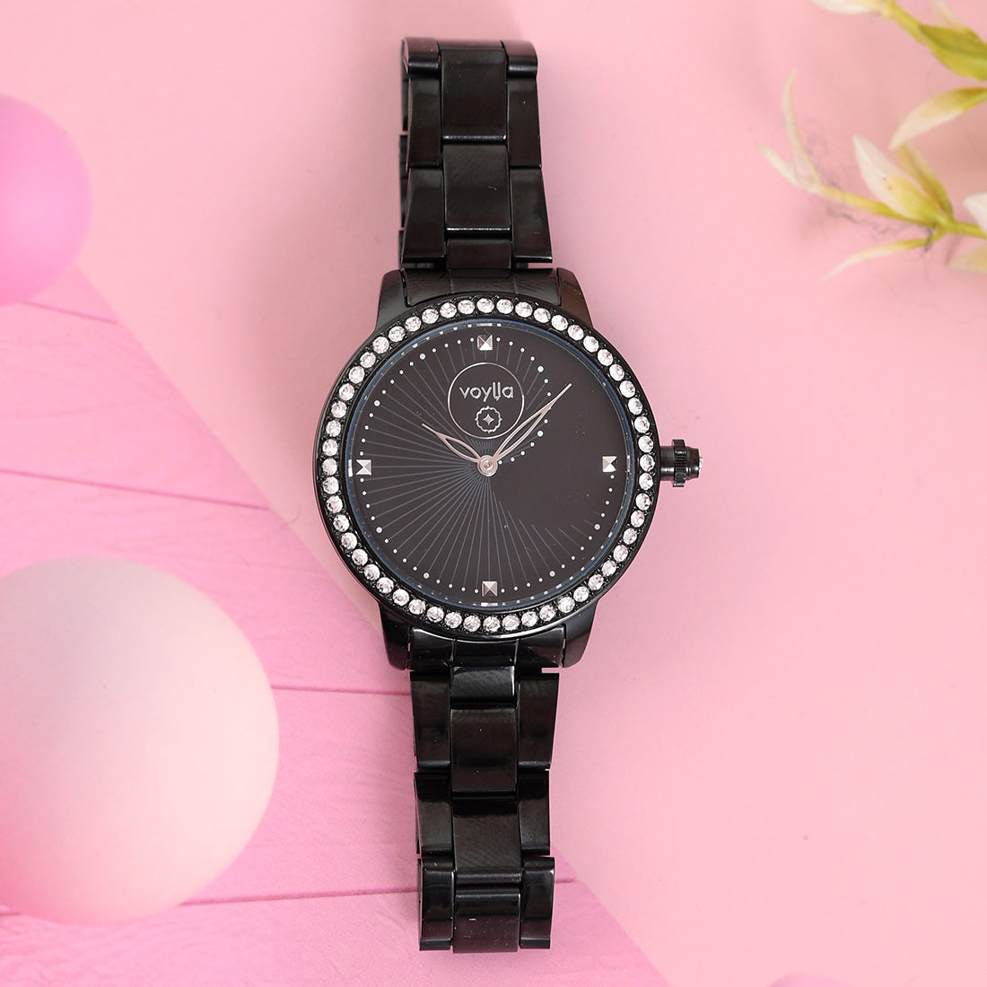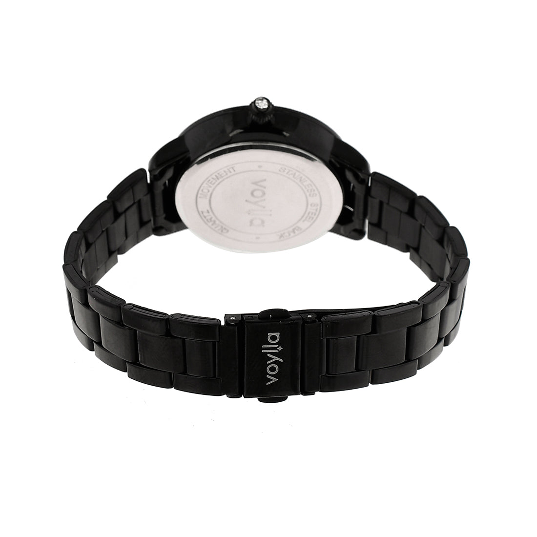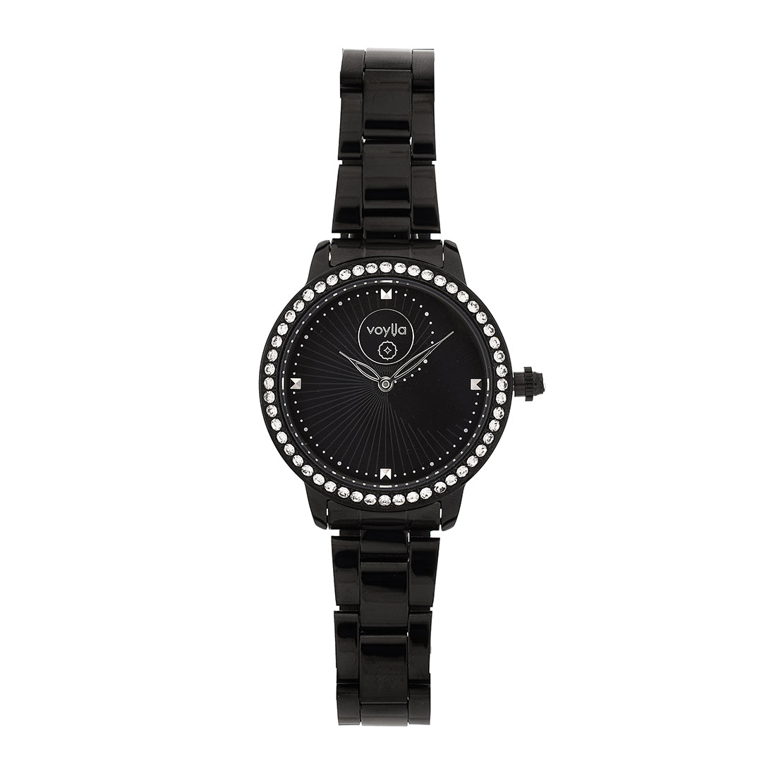 Voylla Black Dial Studded Steel Watch