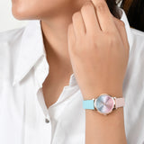 Blue and pink dial women's analog watch. Made from stainless steel and rose gold plated. Wear with any of your favourite outfits.