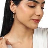 Gold earrings for gold-hearted women. The design of these earrings gives a quirky yet decent look to your office casuals. The small diamonds in it can be styled, with all your office look giving you a boss vibe every day.