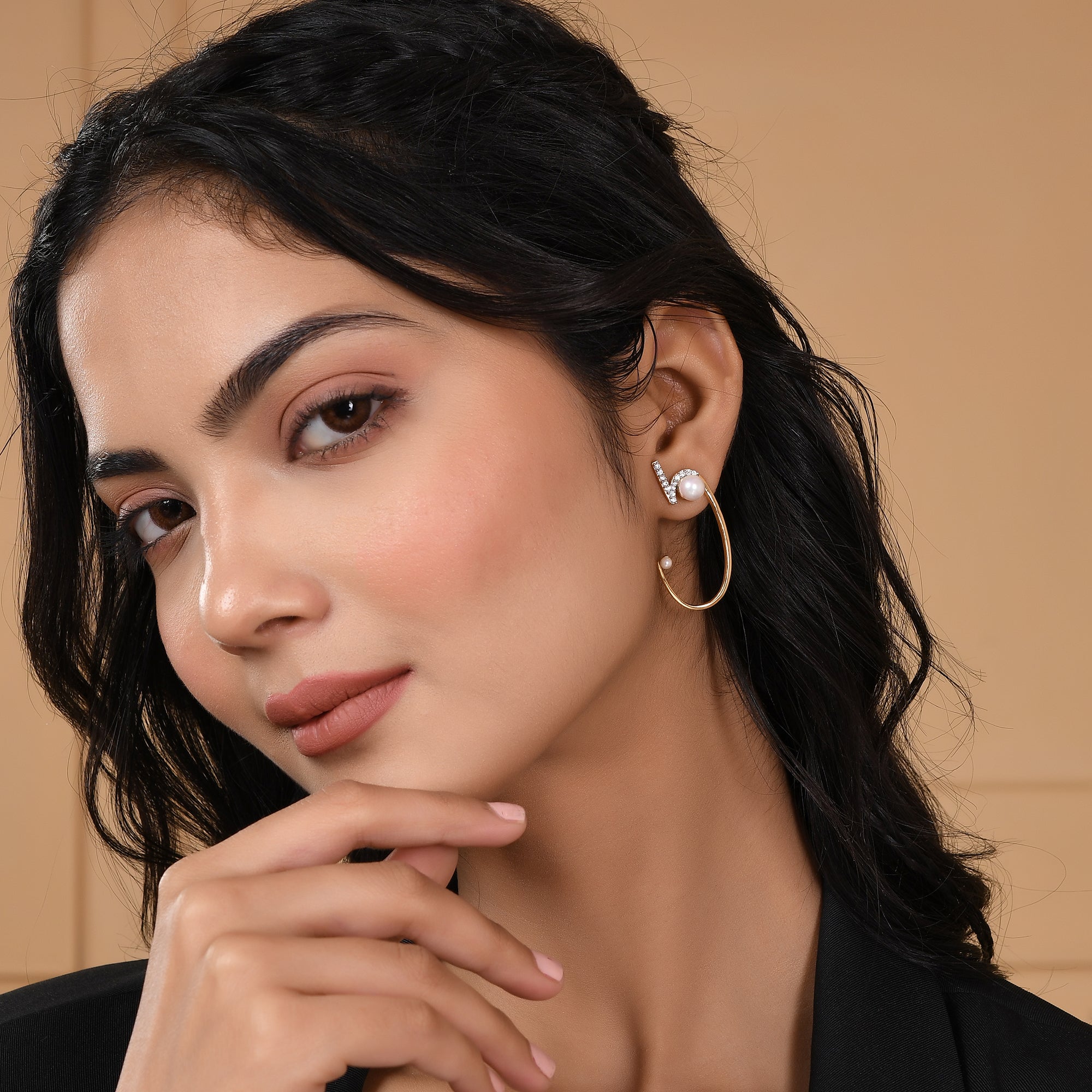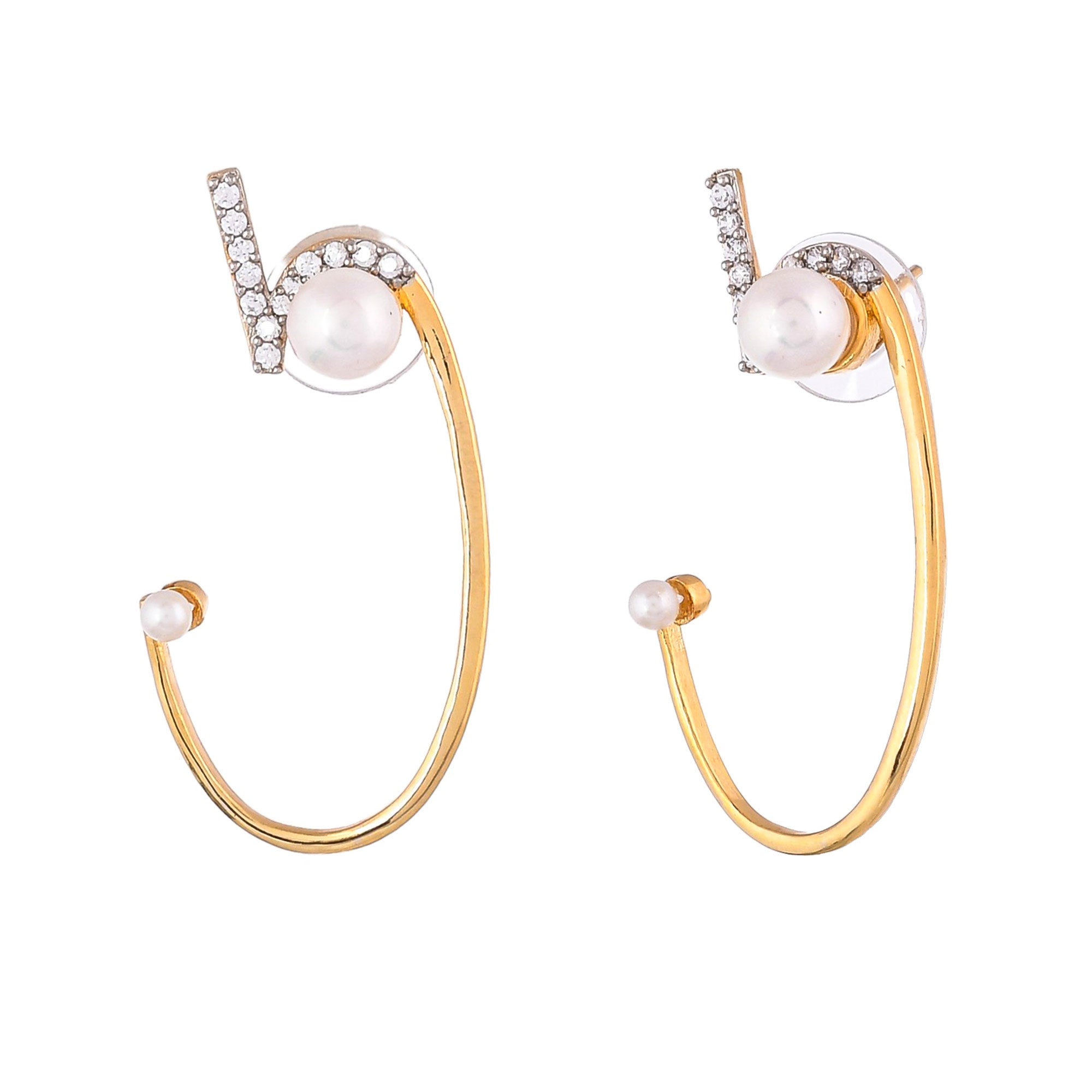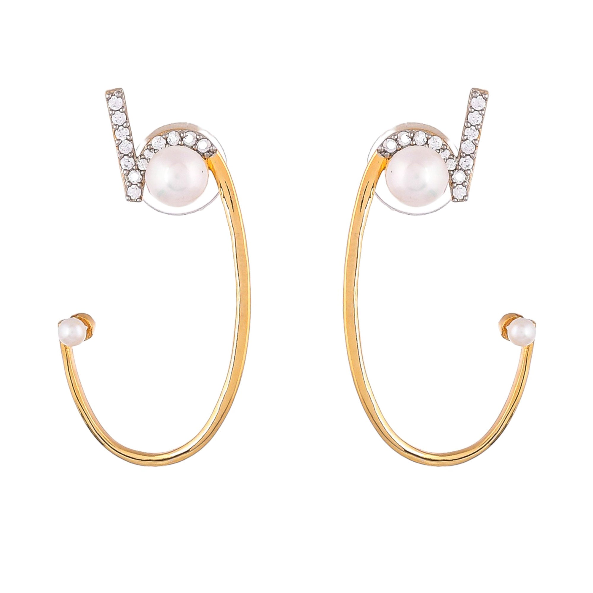 This pair of earrings is a perfect gift to celebrate the woman in you. These gold-plated earrings are worth every single penny as it enhances the finishing look of any attire, they go well with every neckline and dress style. The Flawless pearl stone on top of the earring gives it a diva look.