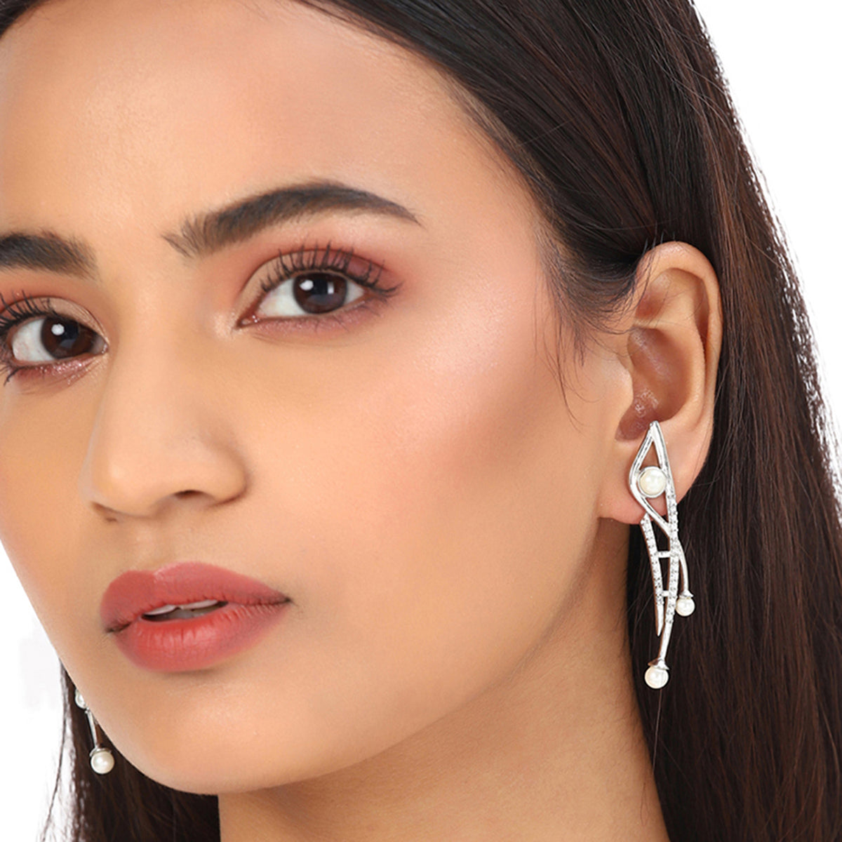 Adorn your dream with this pair of silver earrings. The aesthetic style gives it a glamourous look. The beautifully crafted design is what makes it unique and will make you stand out with your fashion statement.