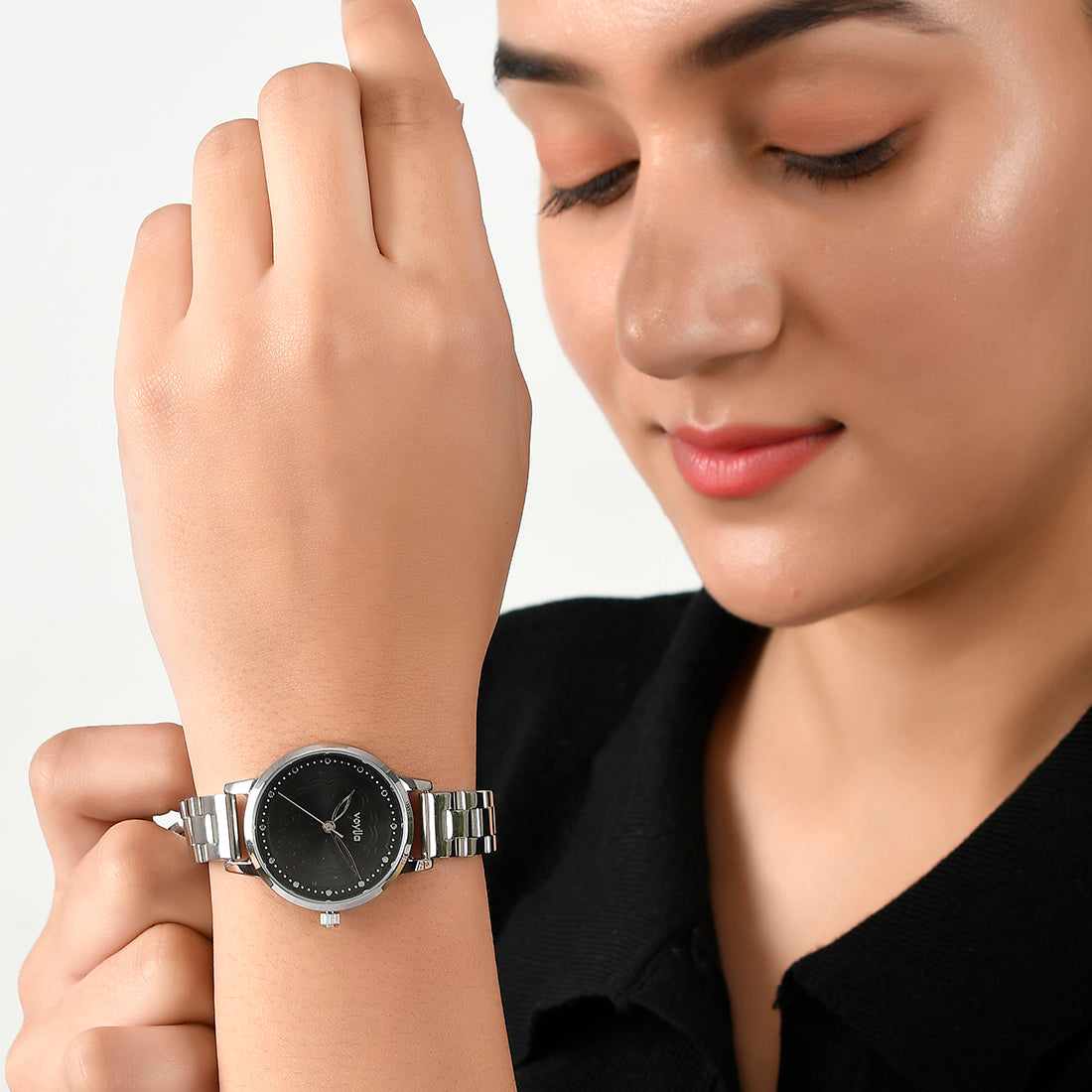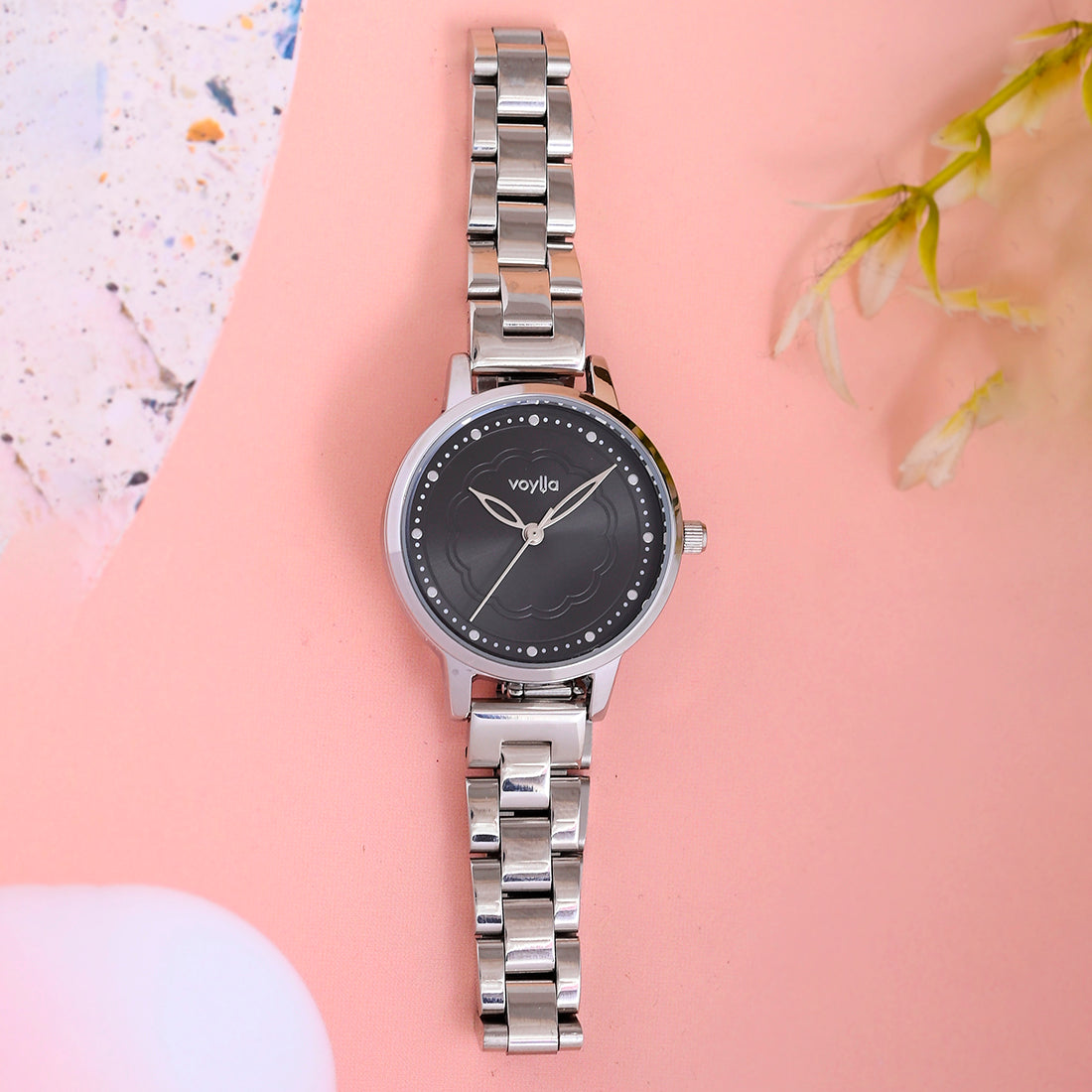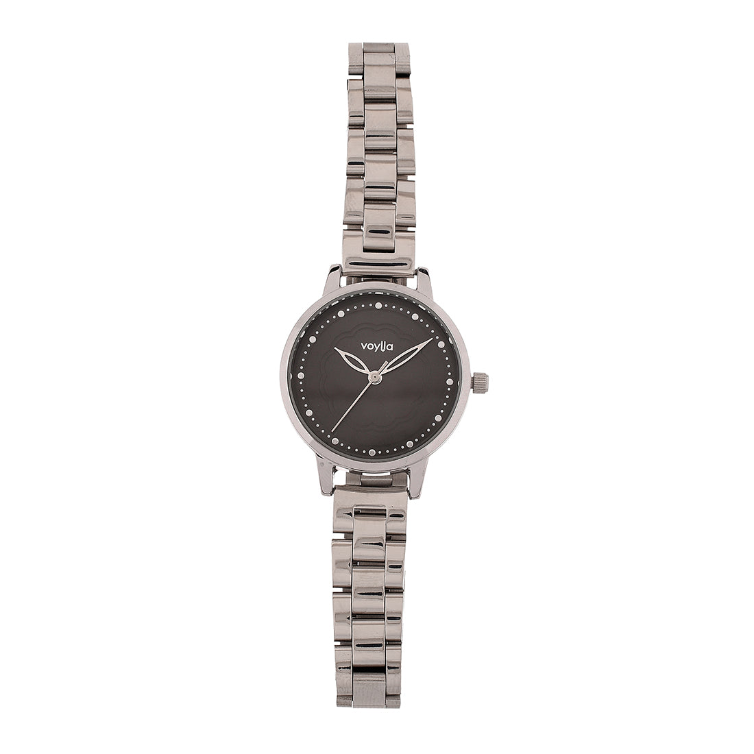 Voylla Silver Toned Black Dial Watch