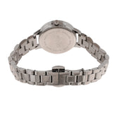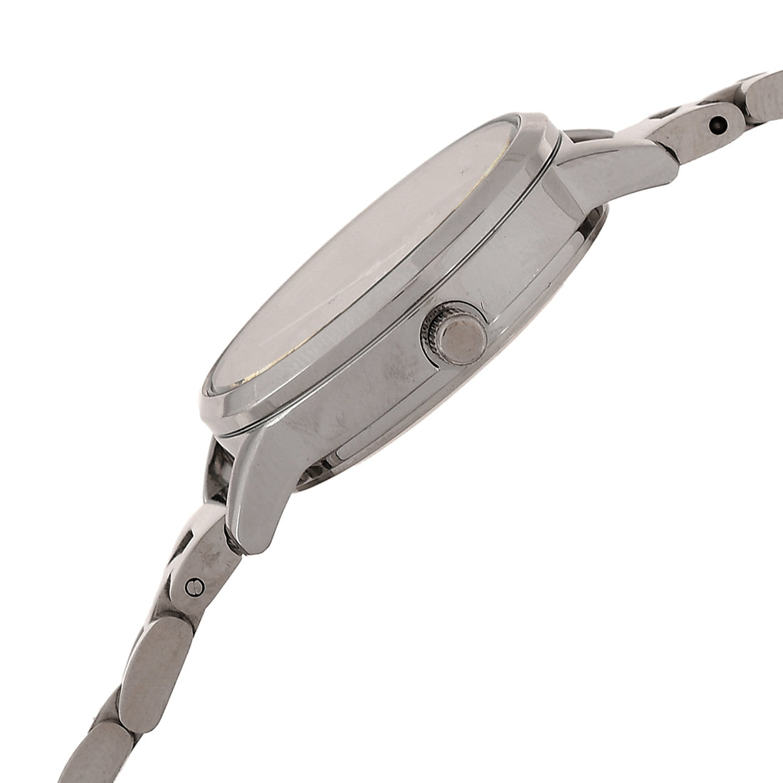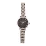 Silver toned analog watch with a classic black dial. The white rhodium plated watch has been crafted from brass. Pair with formal gowns and dresses.