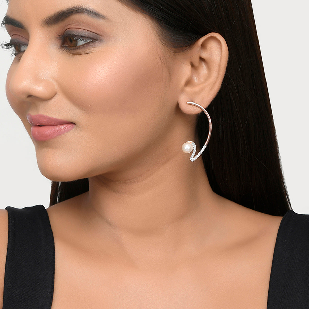 Adorn your diva look with these rose gold earrings. The simple yet elegant style is the one that makes it so unique. The perfect finish adds glamour to them. This pair of earrings will look good with every outfit and the simple design makes it easy for daily wear.