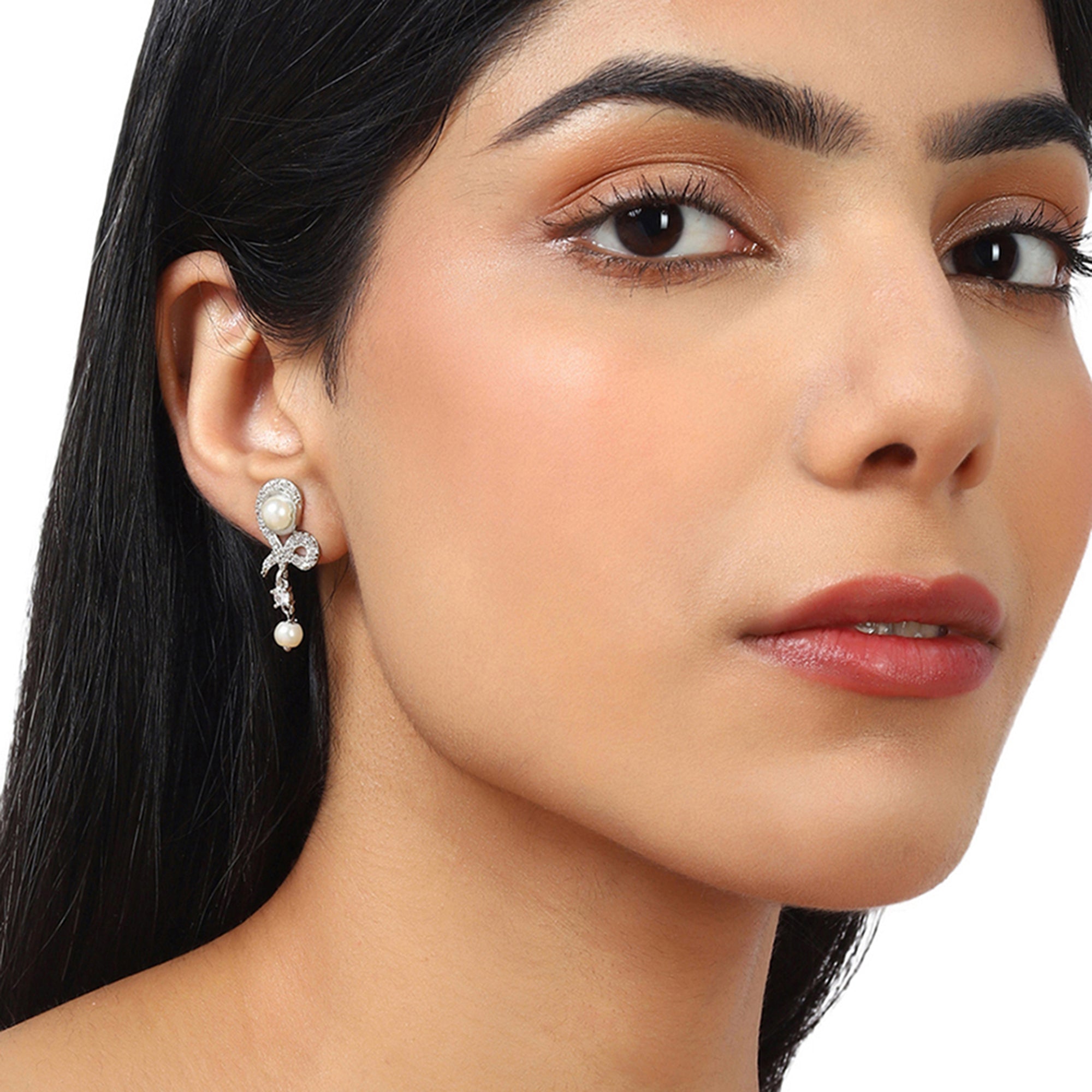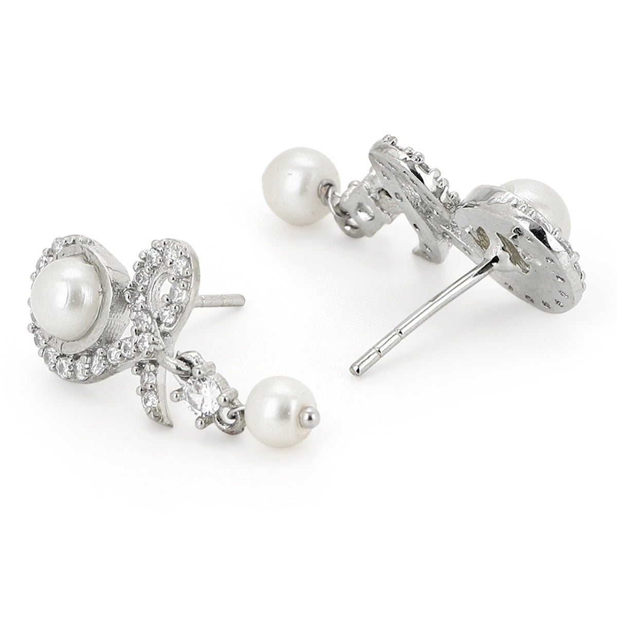 Beautiful earrings and a smile will help you sparkle and shine like nothing else! These silver and pearl earrings will add a touch of sophistication to your ensemble and will definitely make your day. The pearl stones will look rousing and fabulous on your ears. Stud earrings are the jewelry trend every woman must have and are perfect for everyday wear, but they will also add flair to any outfit to make any evening unforgettable.