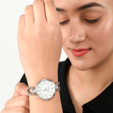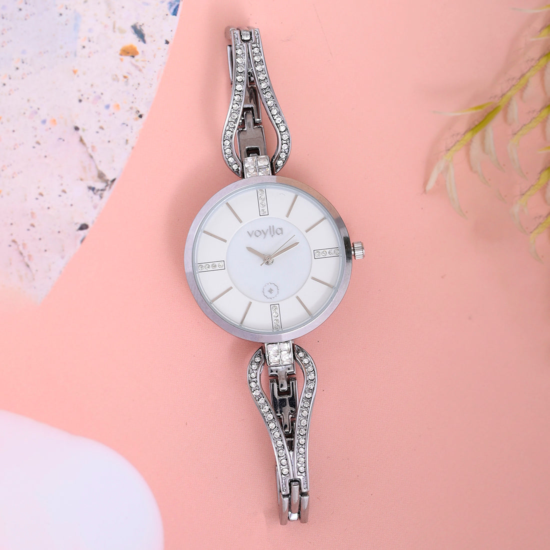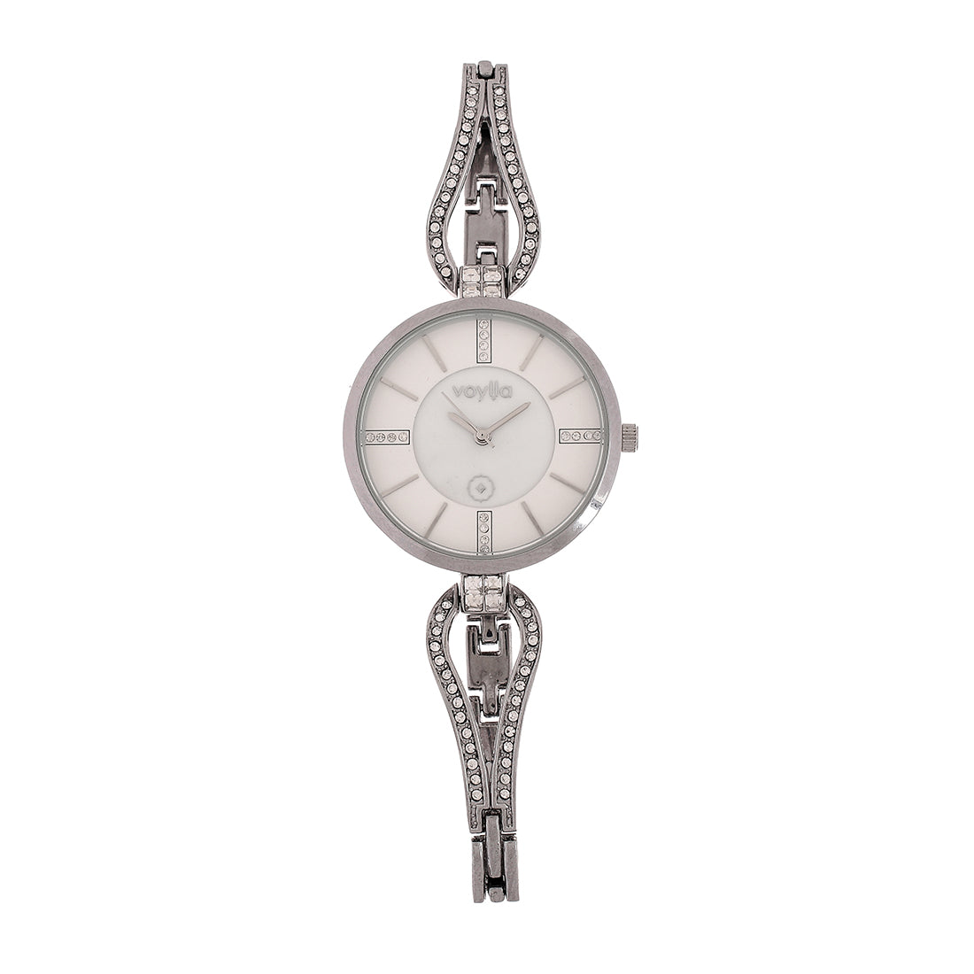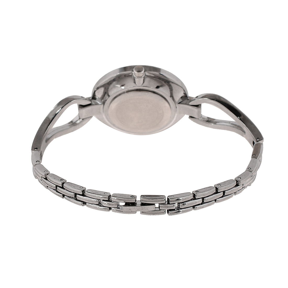 Silver tone cut-out band analog watch made from stainless steel. White rhodium plating adds to the sheen of this piece, which is lightweight, comfortable and versatile.