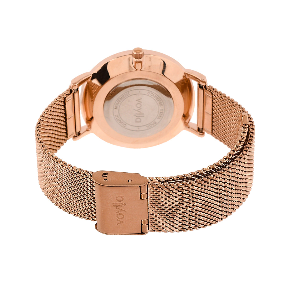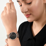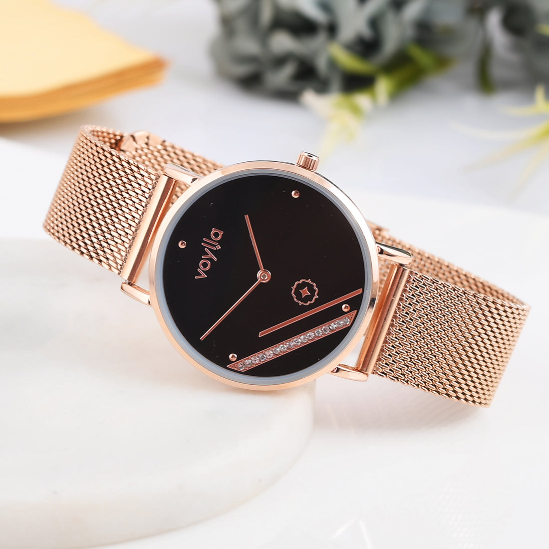 Rose gold plated studded black dial analog watch. Made from stainless steel, this luxurious piece can be paired with a wide range of looks and outfits.