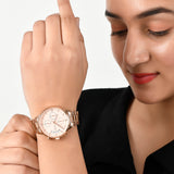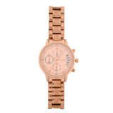 Rose gold plated chronograph watch for women, crafted from high quality brass. Pair with formal outfits of all kinds.