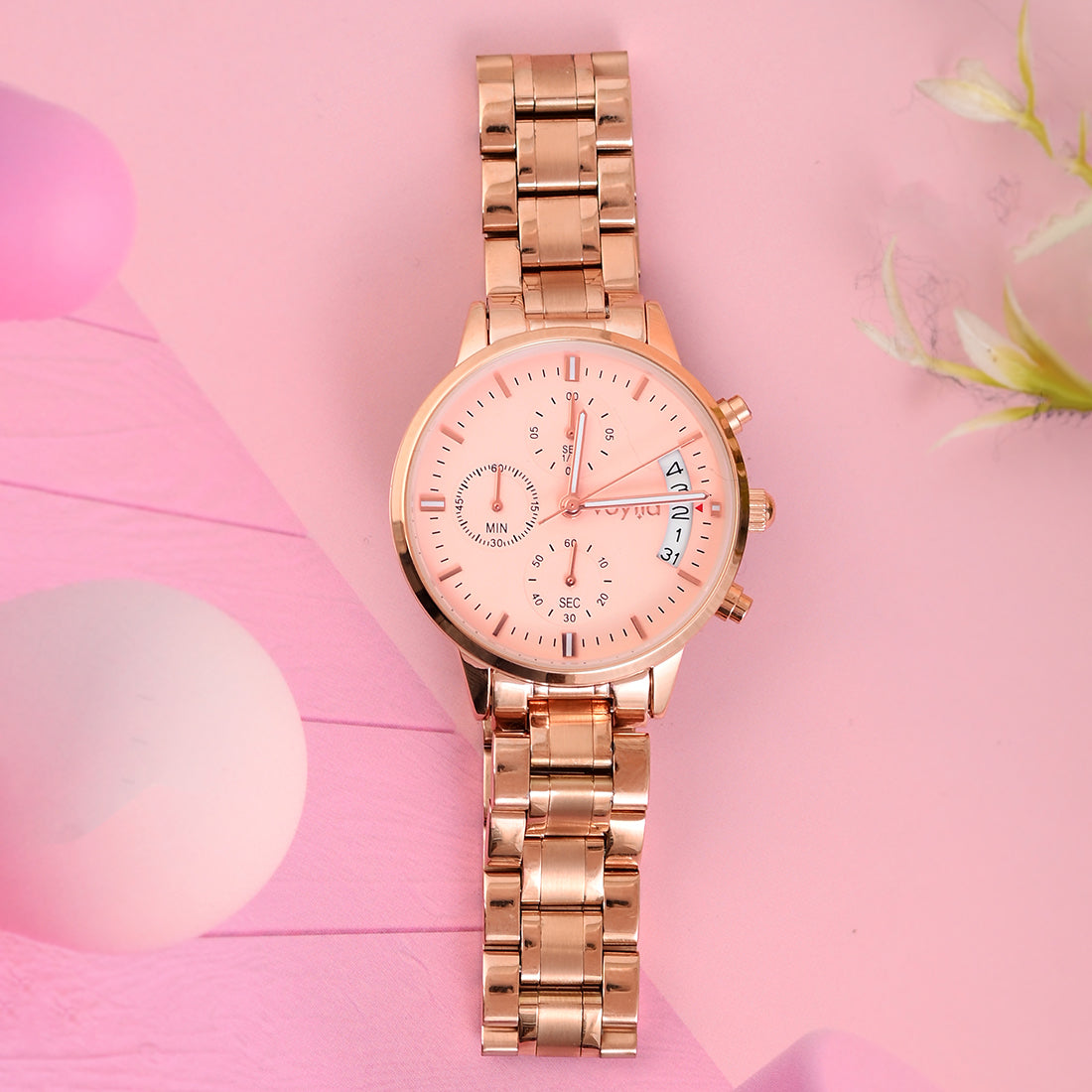 Voylla Rose Gold Dial Chronograph Watch