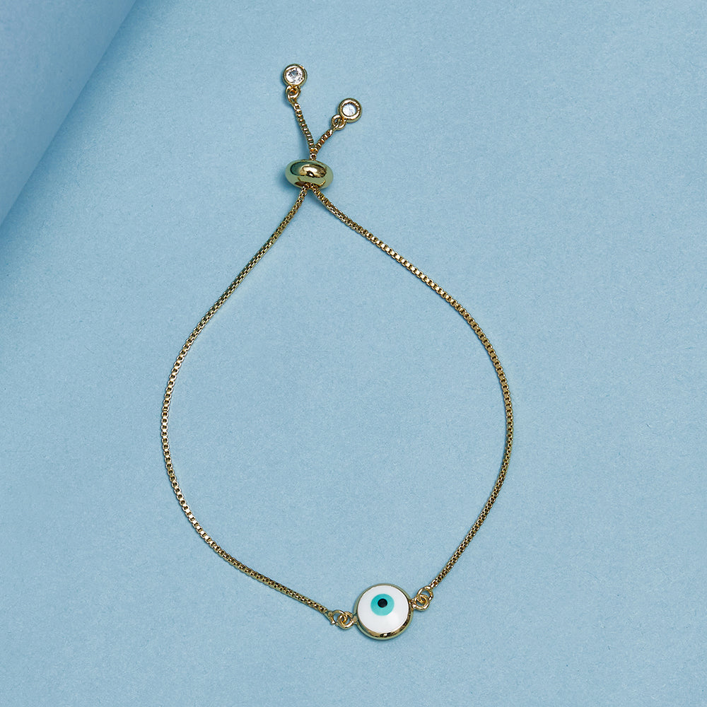 White and Blue Evil Eye Amulet Gold Plated Brass Chain Bracelet