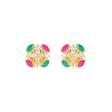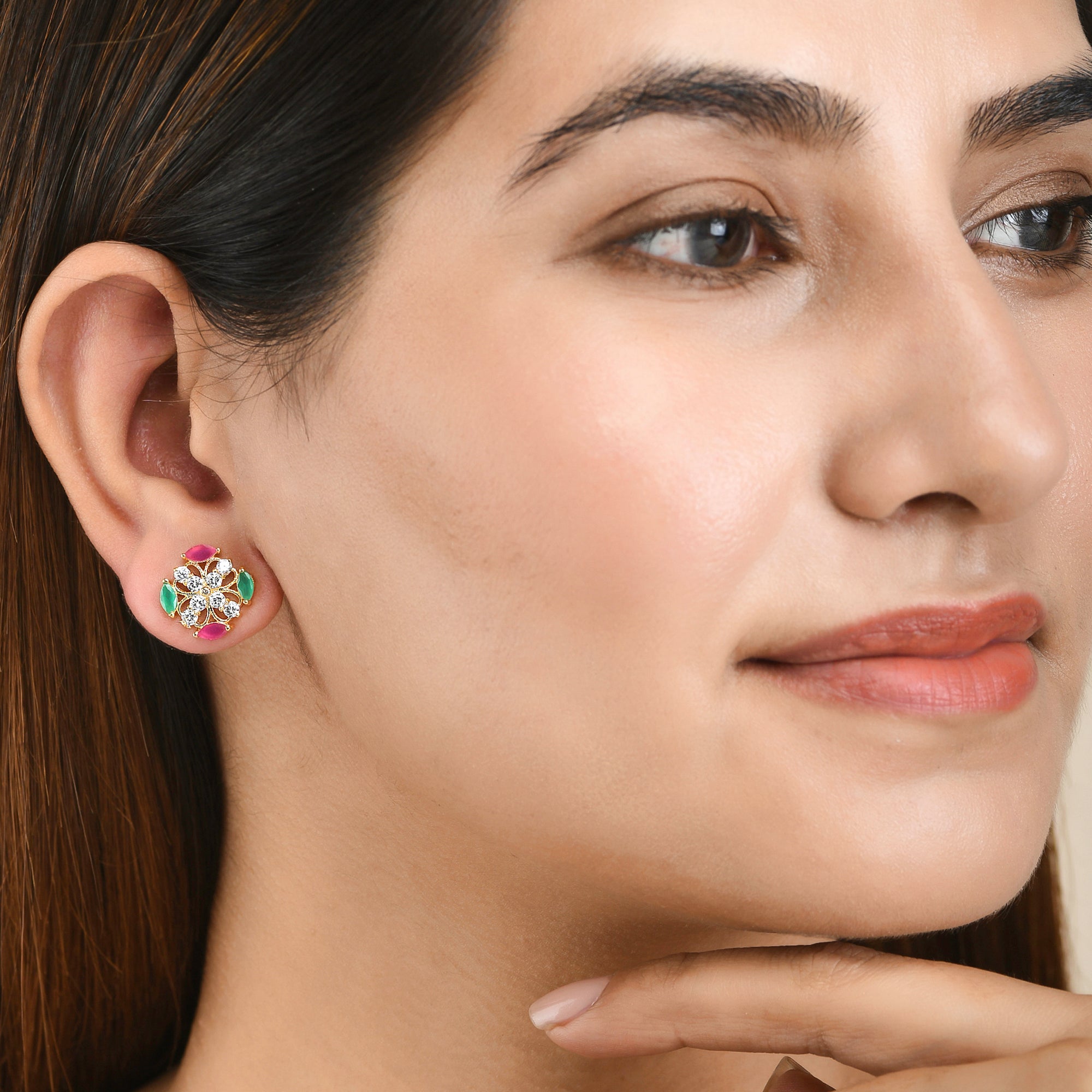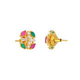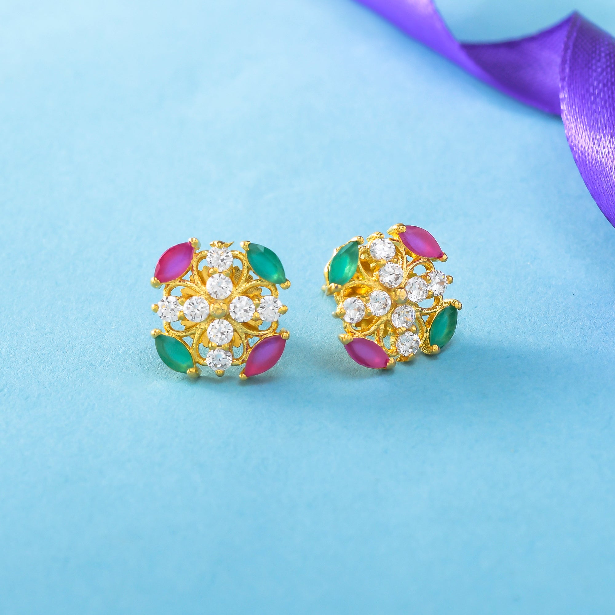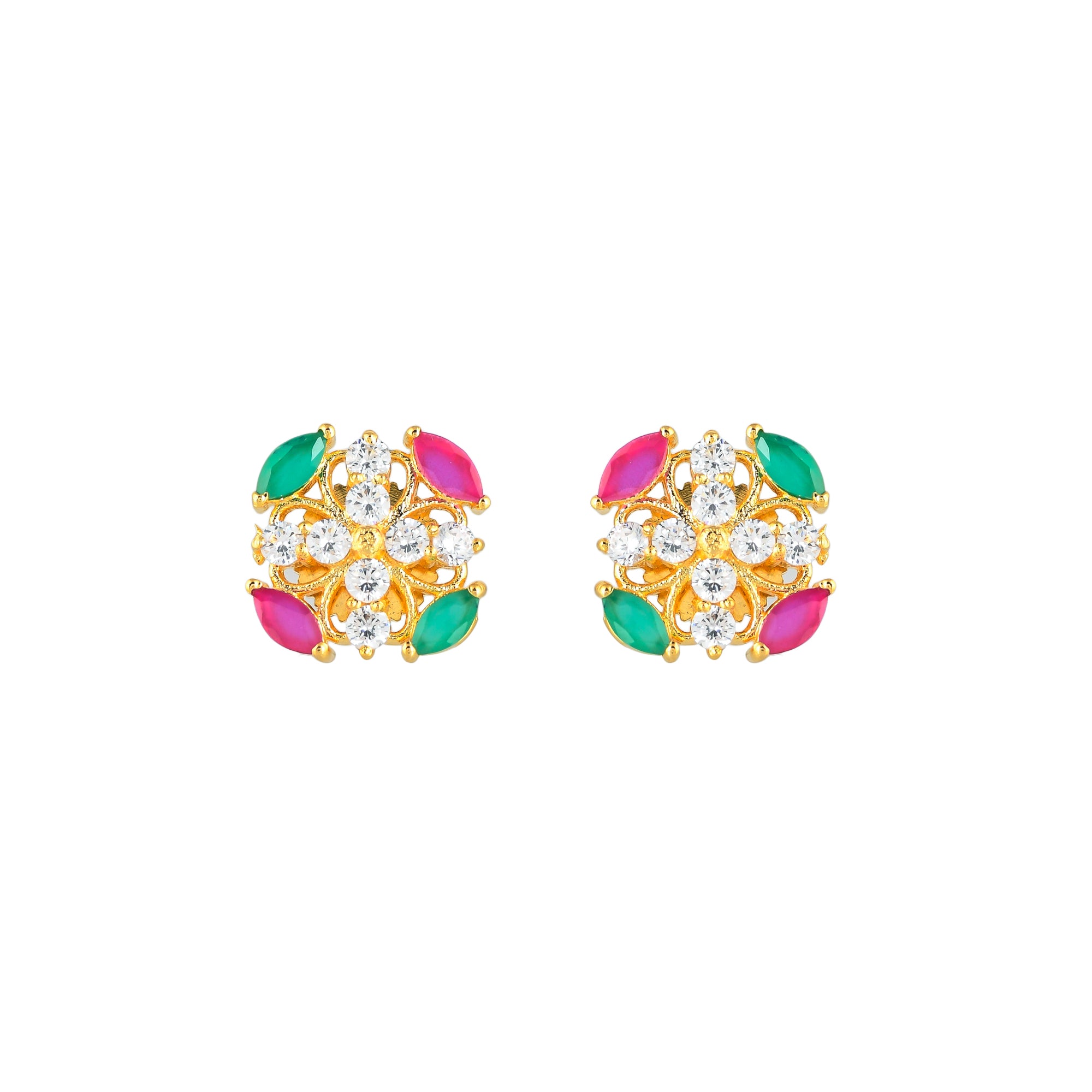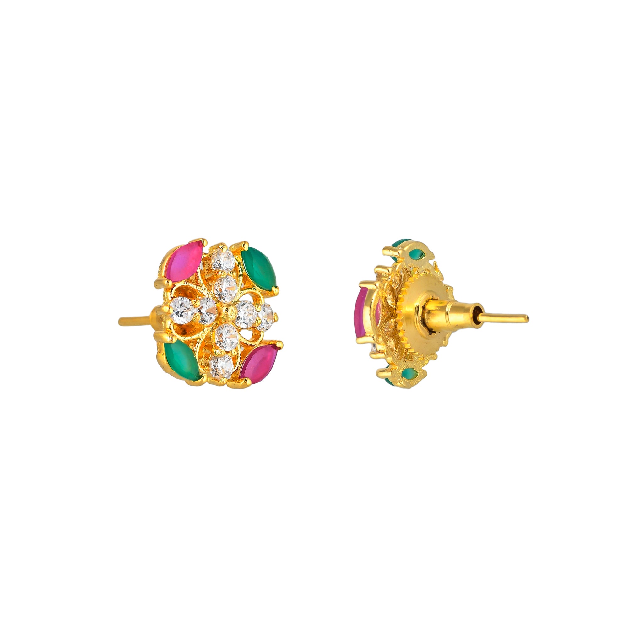 White and green zirconia gems stud earrings. Made from brass and gold plated. Good for casual looks.