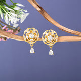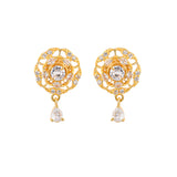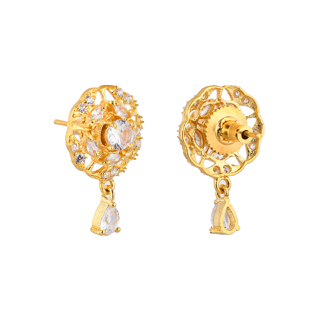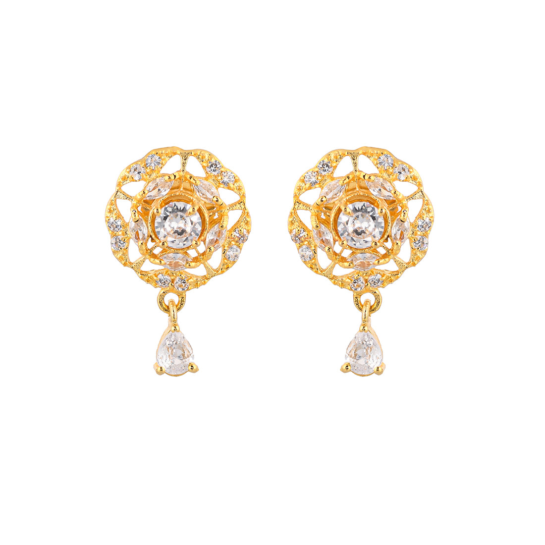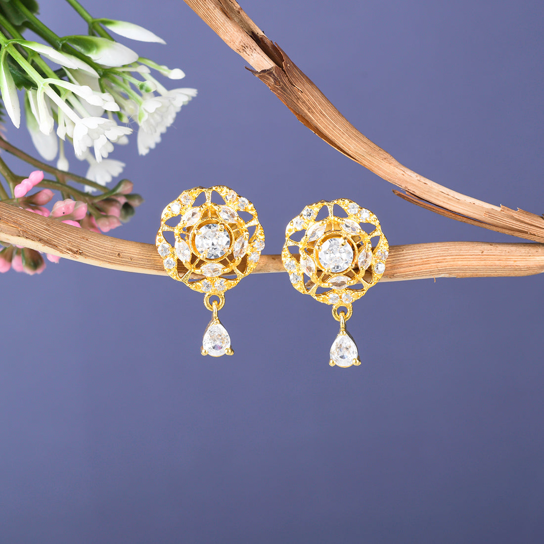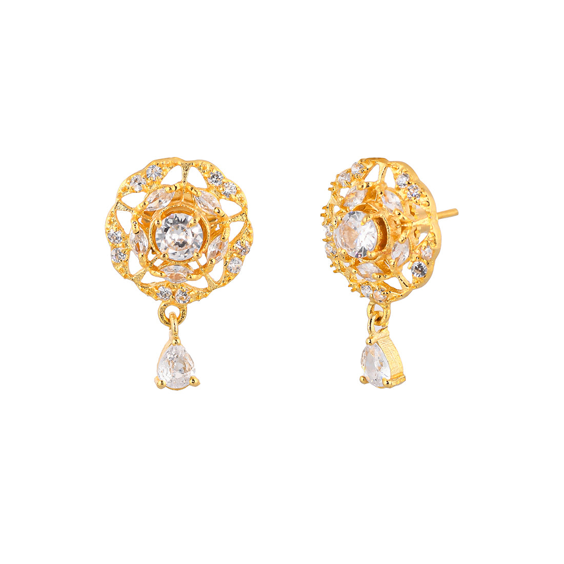 Tiny drop stud earrings with white zirconia gemstones. Made from brass and gold plated. Good for everyday wear.
