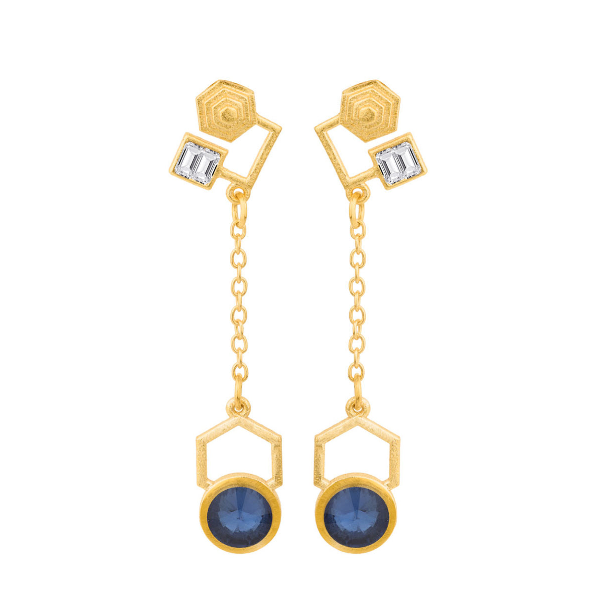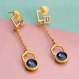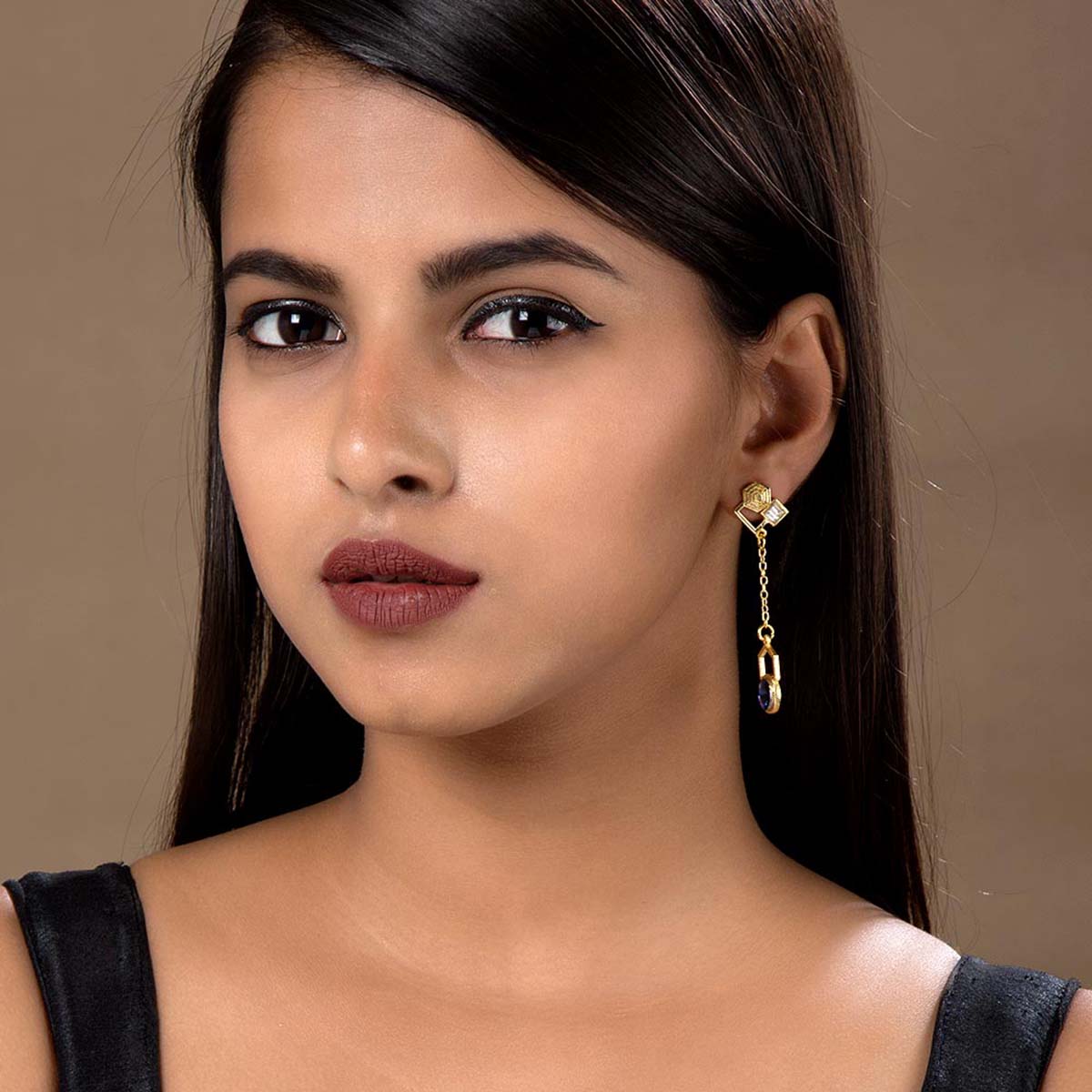 Add a bit of muted elegance to your look with these brass White n Blue Stone Geomatrix earrings. Wear with a muted blue top for the perfect look for an evening out. This piece of jewelry comes with the Voylla assurance of quality and durability. Caring for your fashion jewelry: We, at Voylla, take care of every piece of jewelry so that you don't spend hours caring for them.