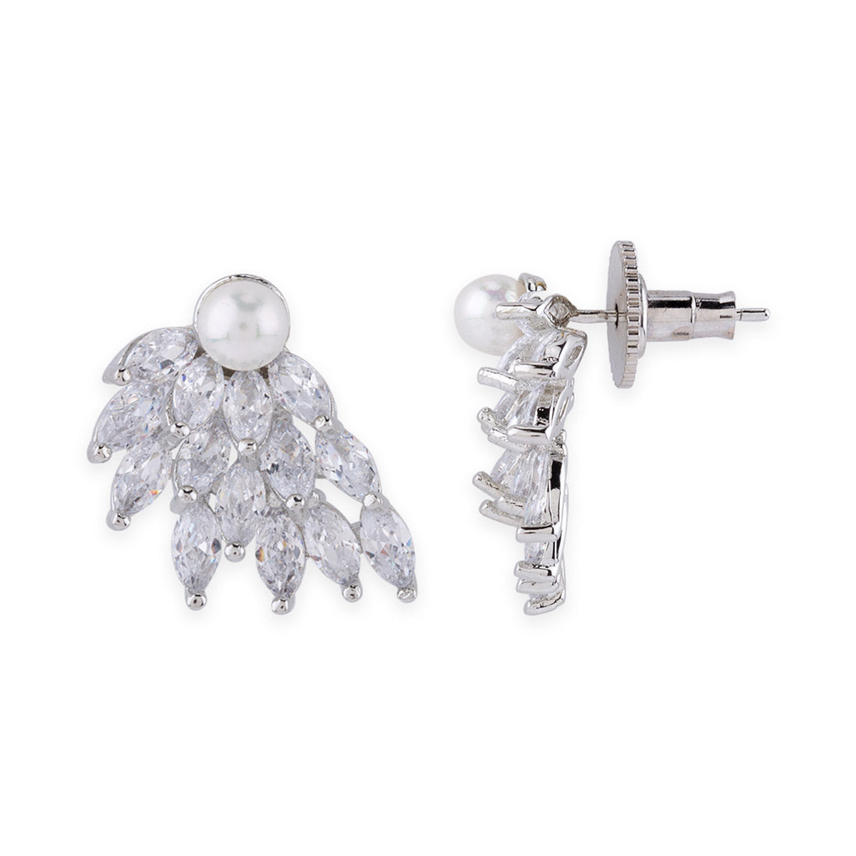 These cute earrings feature a lovely synthetic pearl and it is a great pair of earrings to add to your jewelry collection. These earrings feature cubic zirconia stones. Each one is carefully hand set by master jewelers onto a genuine brass base.