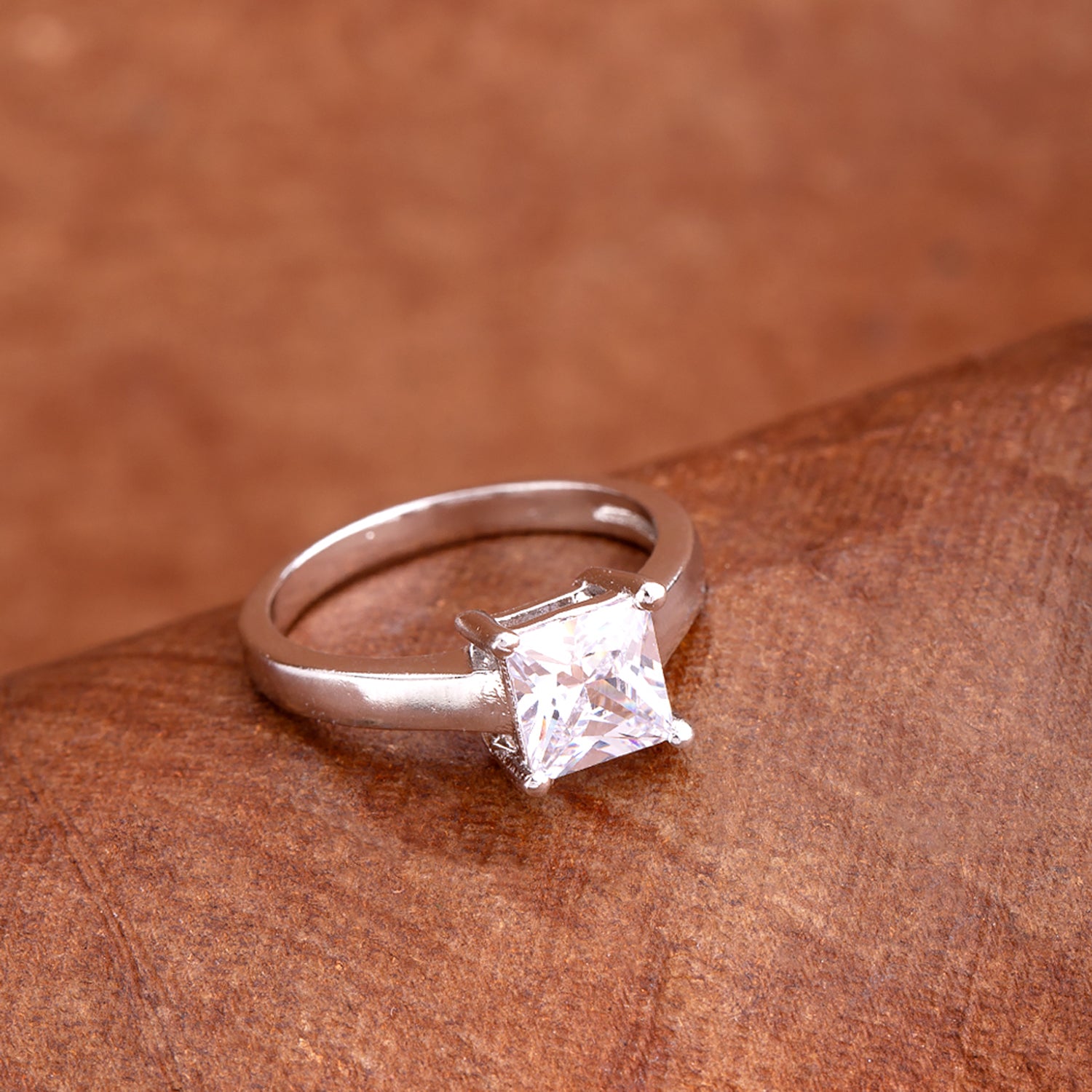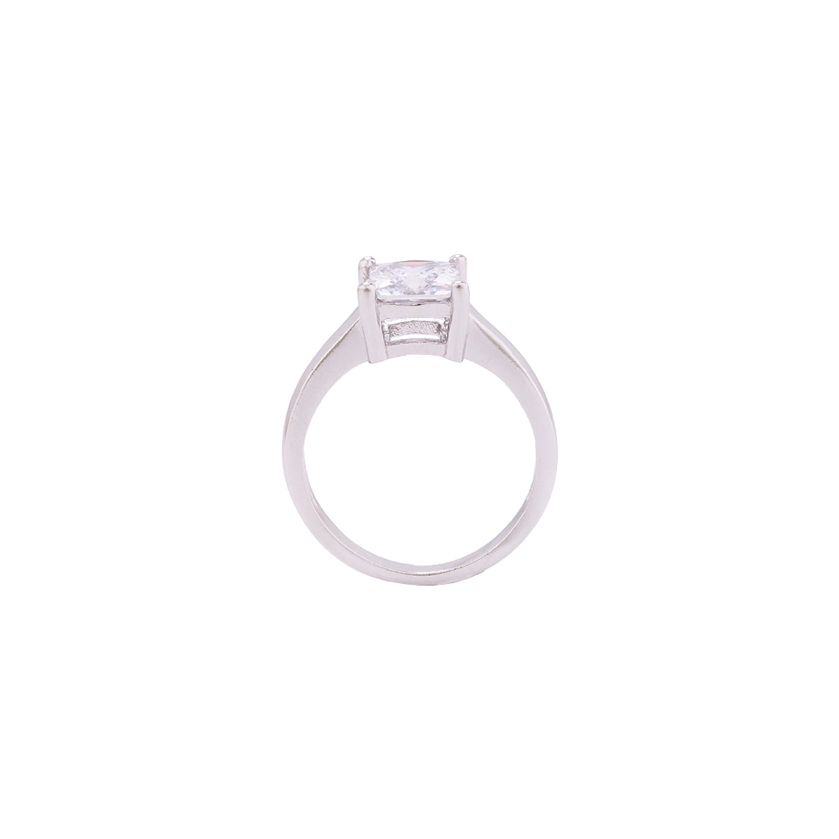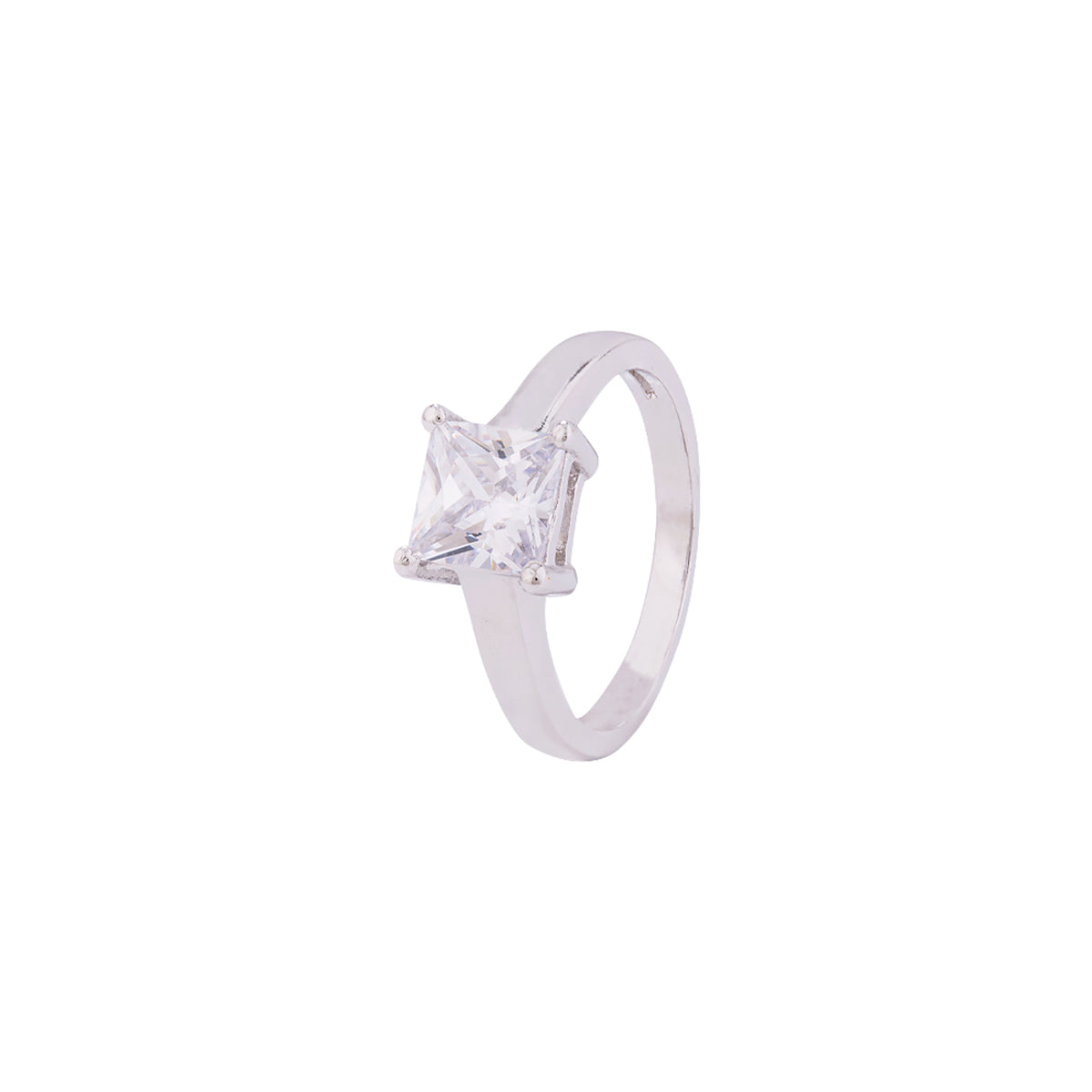 CZ gemstone embellished ring for women. Made from brass and silver plated. Pair with everyday attire.