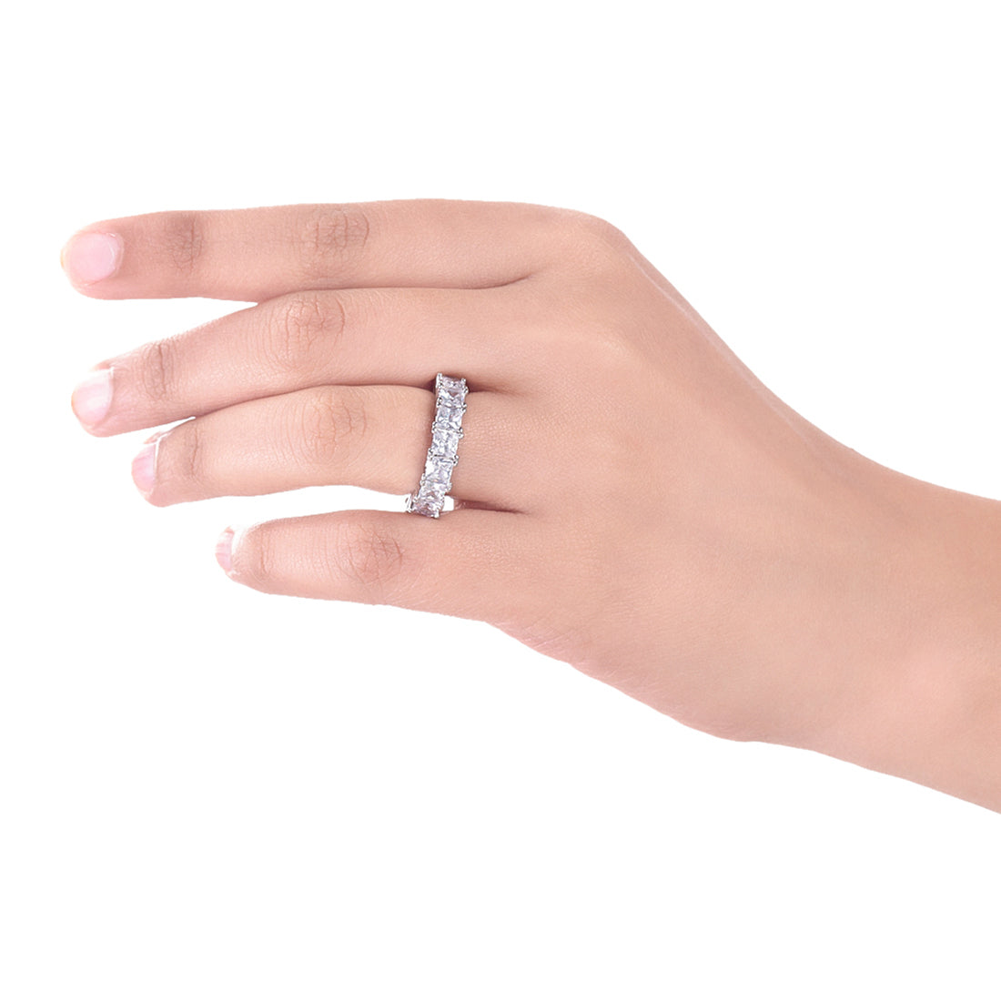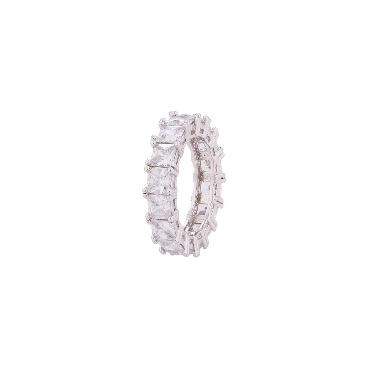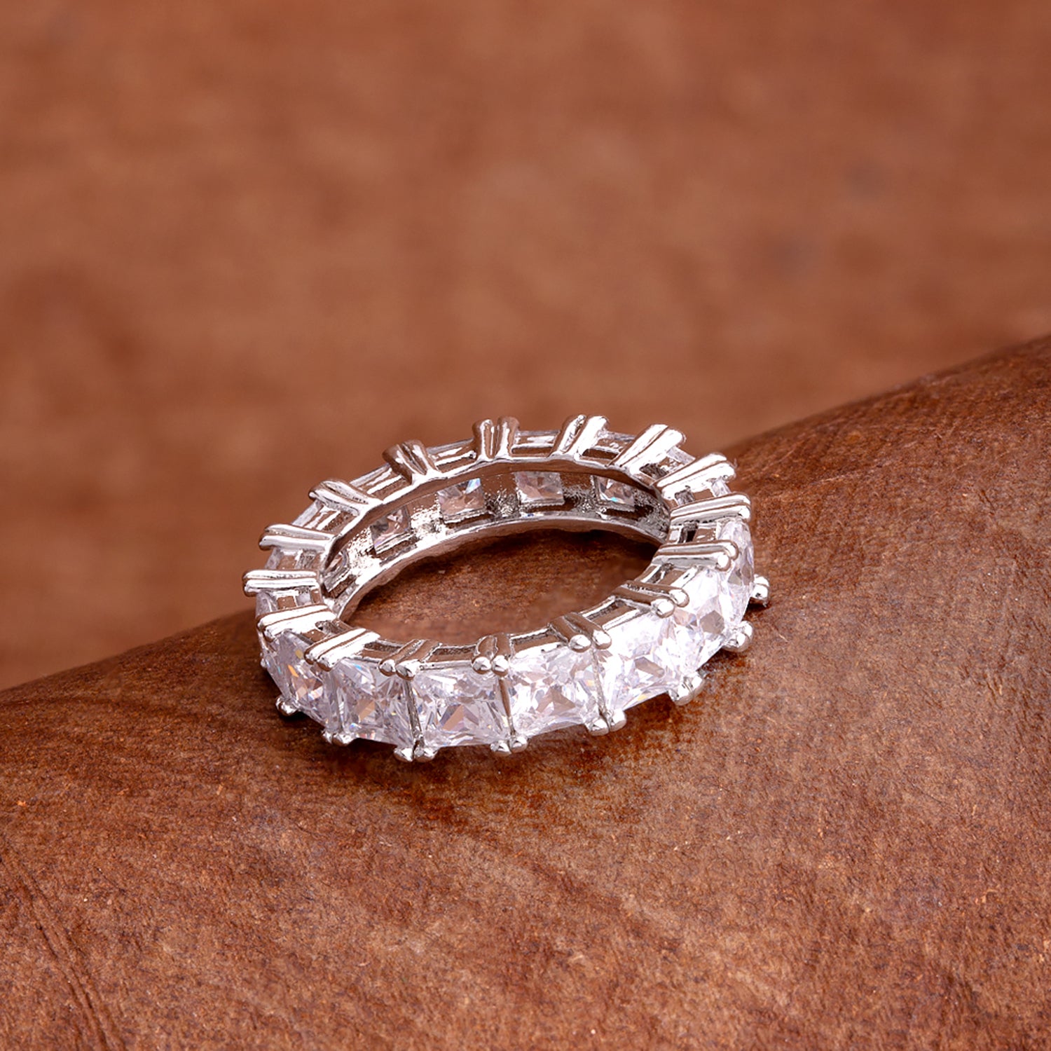 Brass band ring embellished with CZ gems. Yellow gold plated and good for everyday wear. This piece of jewelry comes with the Voylla assurance of quality and durability.