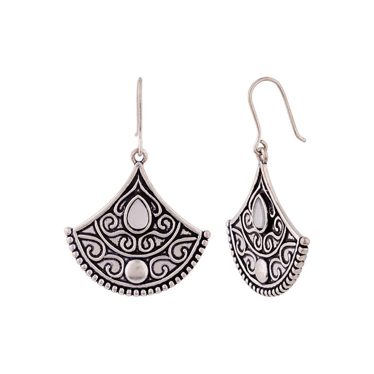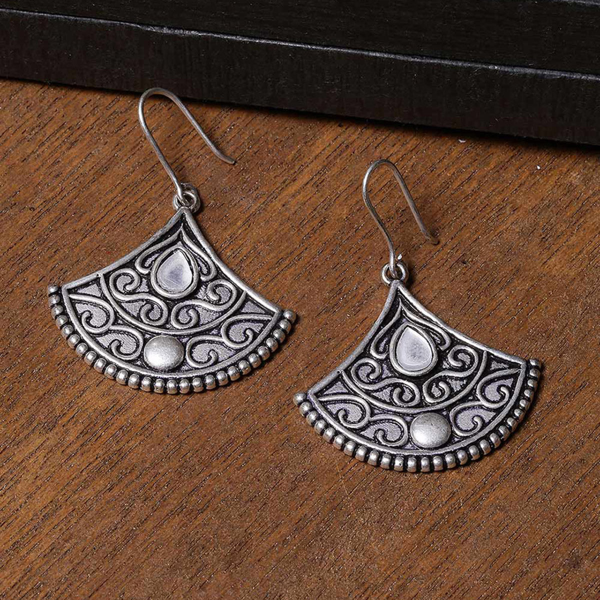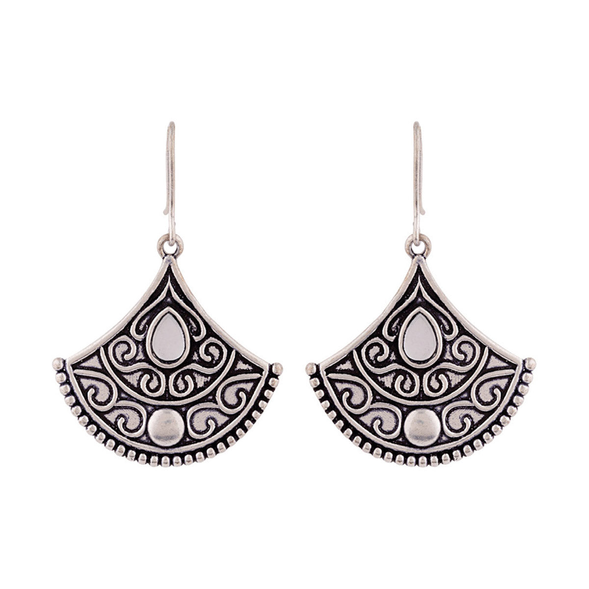 Tribal inspired brass earrings with oxidised silver plating. Wear with Indo-Western attire.