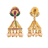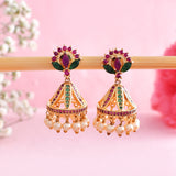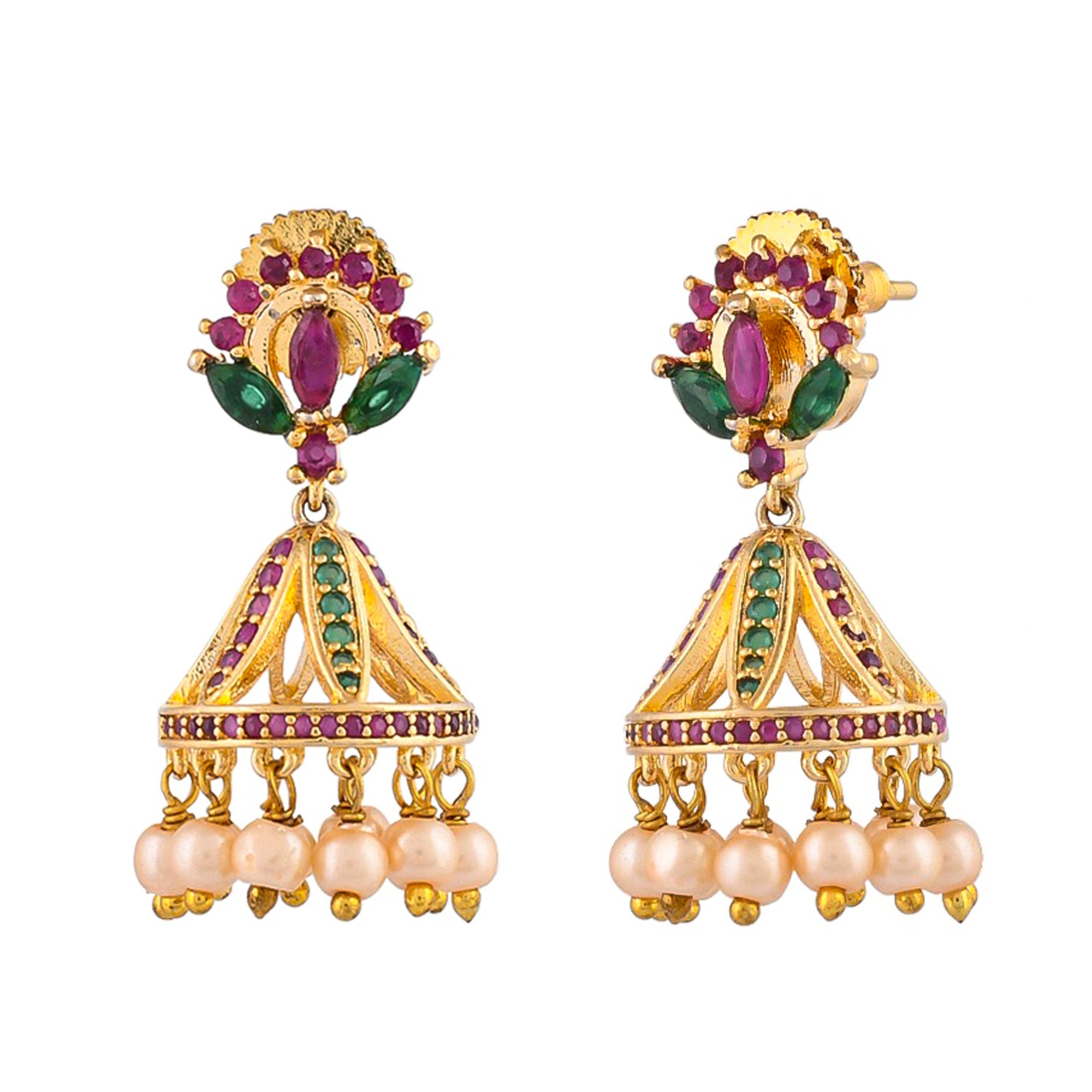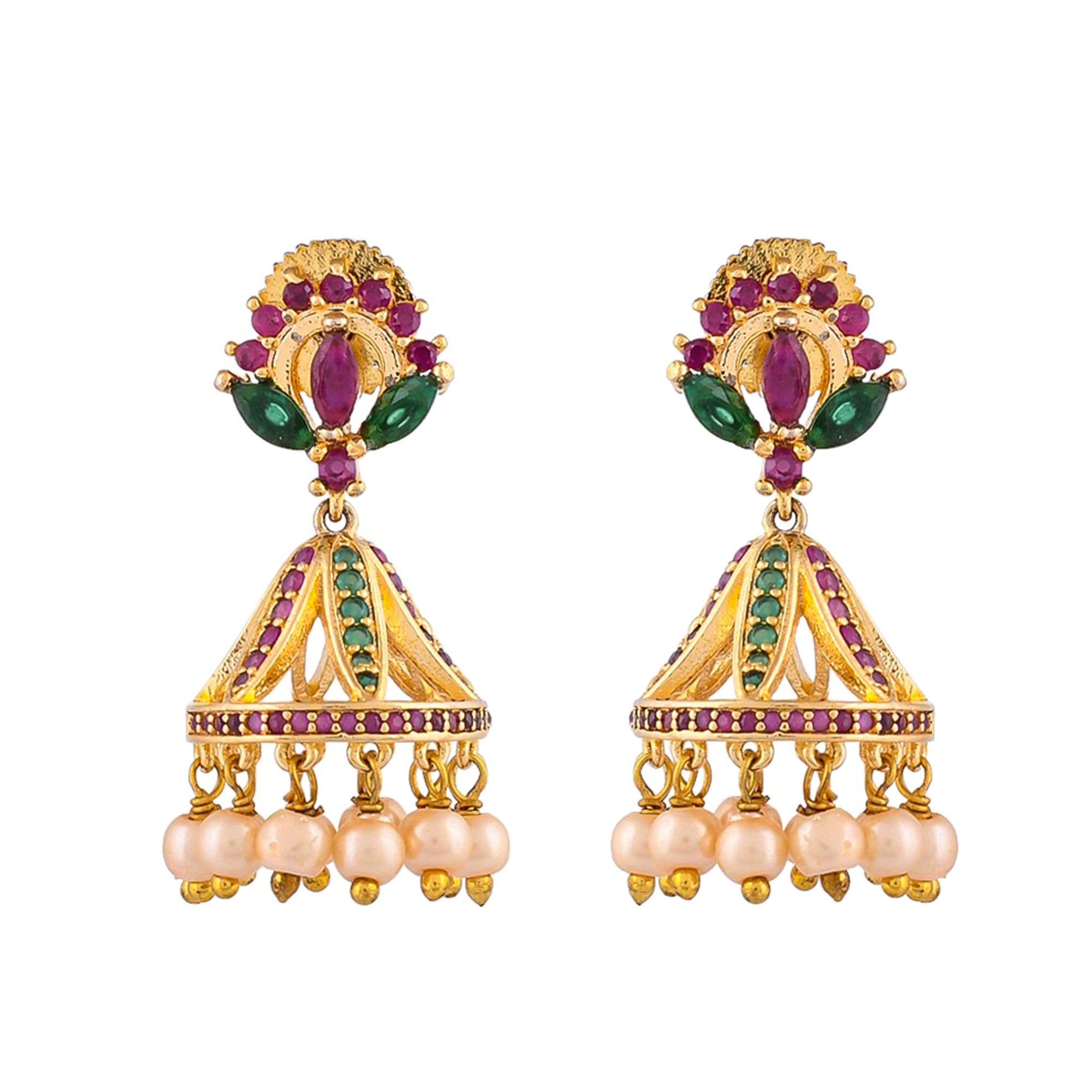 Adorn your ears with these breathtakingly beautiful earrings, which promise to make you the center of all attention everywhere you go. Perfectly sculpted to be absolutely flawless and in every way, and a result of expert craftsmanship, these beauties have been carved from the best quality brass and given a perfect finish and brilliant yellow gold plating. Decorated with gems, pearl droppings and intricate details, these drop earrings will compliment all your traditional Indian outfits.