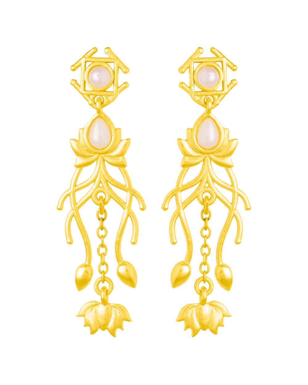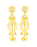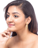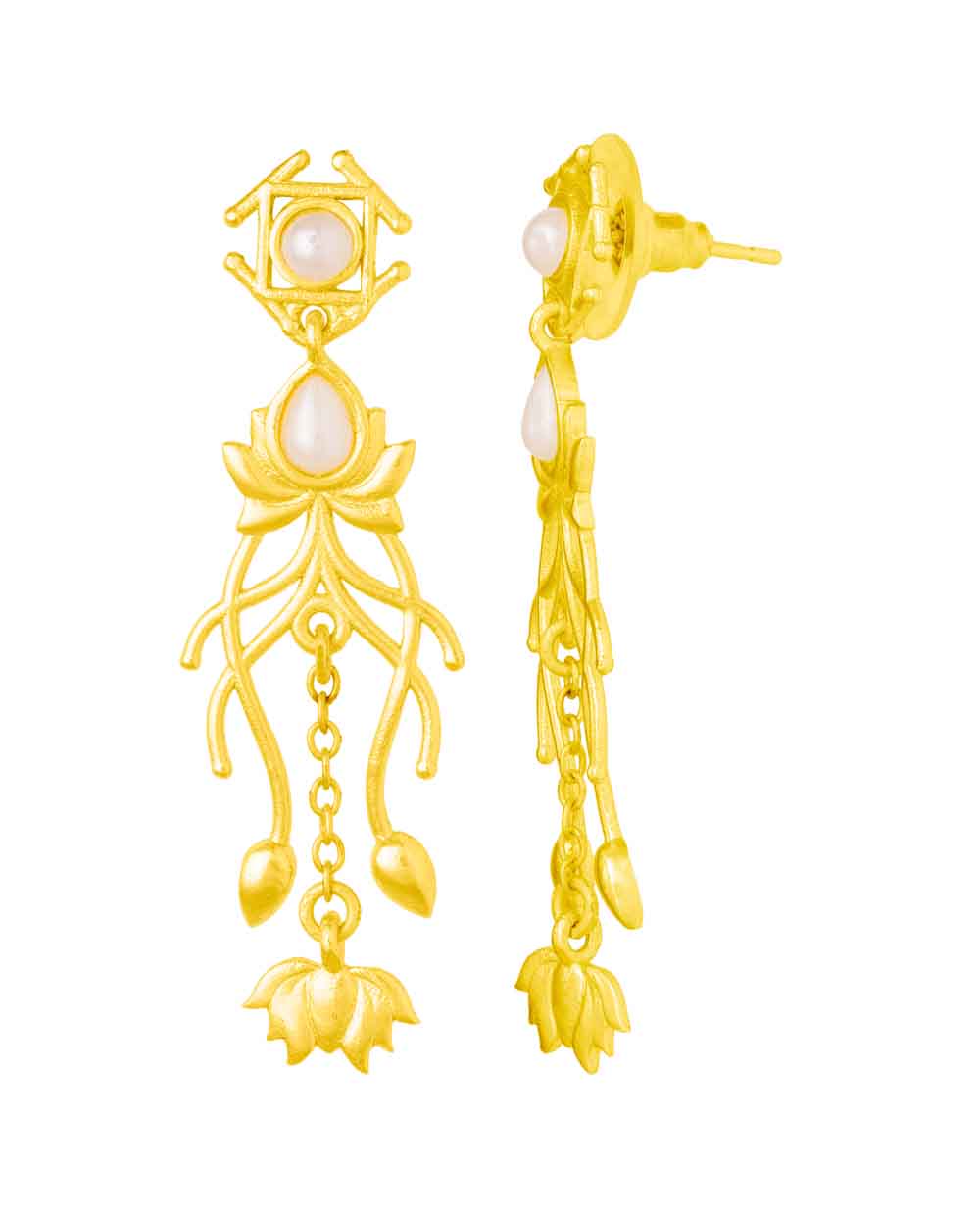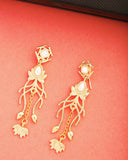 Here’s a pair of lovely floral drop earrings, which will sit pretty on your ears and playfully twinkle each time you move your head. Brass has been used to craft these stunning beauties, which have been given a yellow gold plating. Embellished with pearls, these drop earrings will make a worthy addition to your jewelry box.