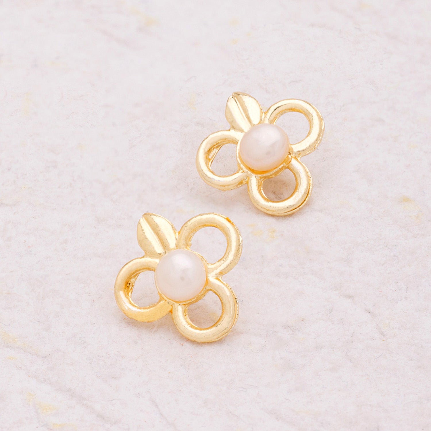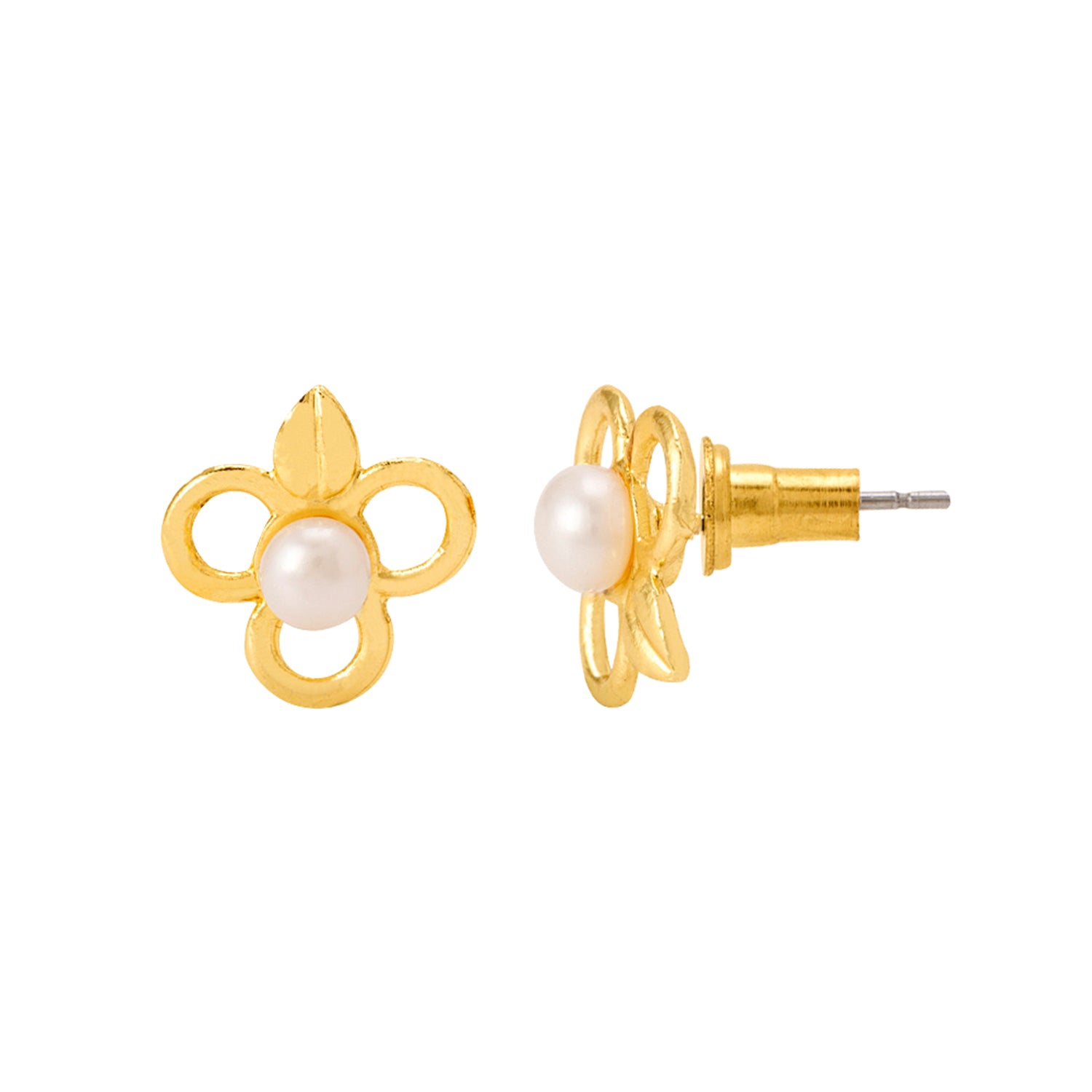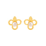 Take home these playful stud earrings that feature a floral-inspired design. Brass has been used in the making of these pearl adorned studs, which have been given a brilliant yellow gold plating for a genuine gold look and feel. This piece of jewelry comes with the Voylla assurance of quality and durability.