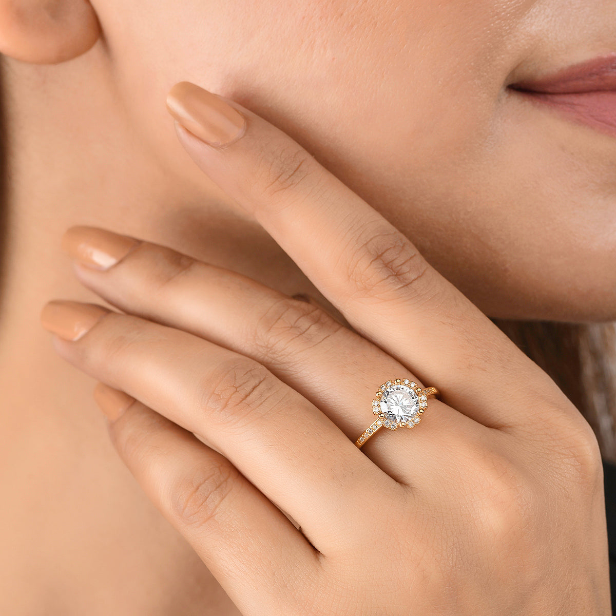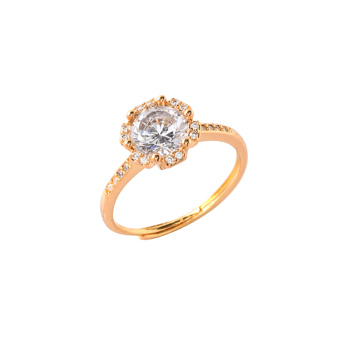 Yellow Gold Plated Round Cut Zircon Adorned Brass Ring