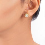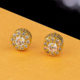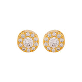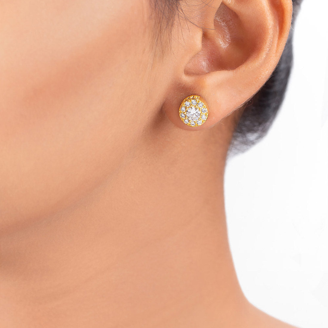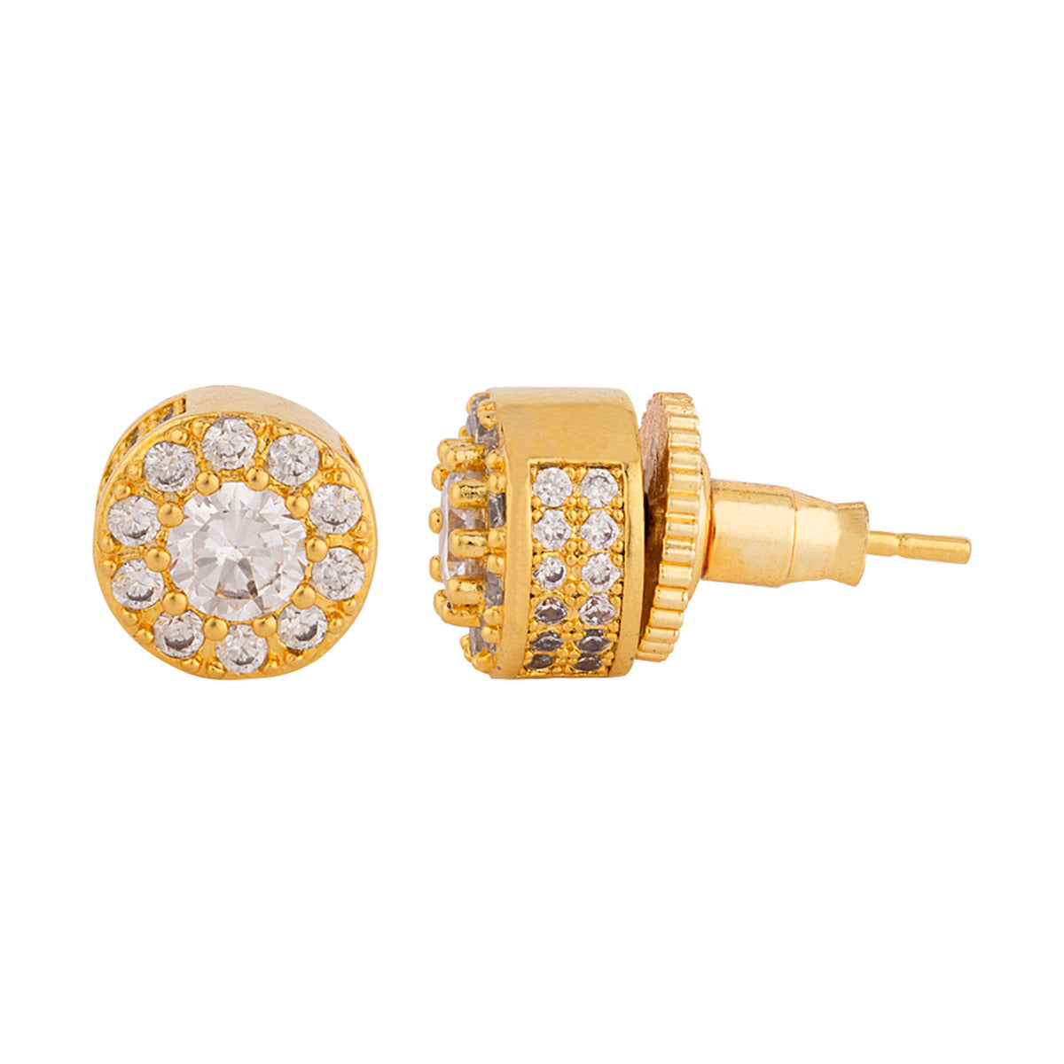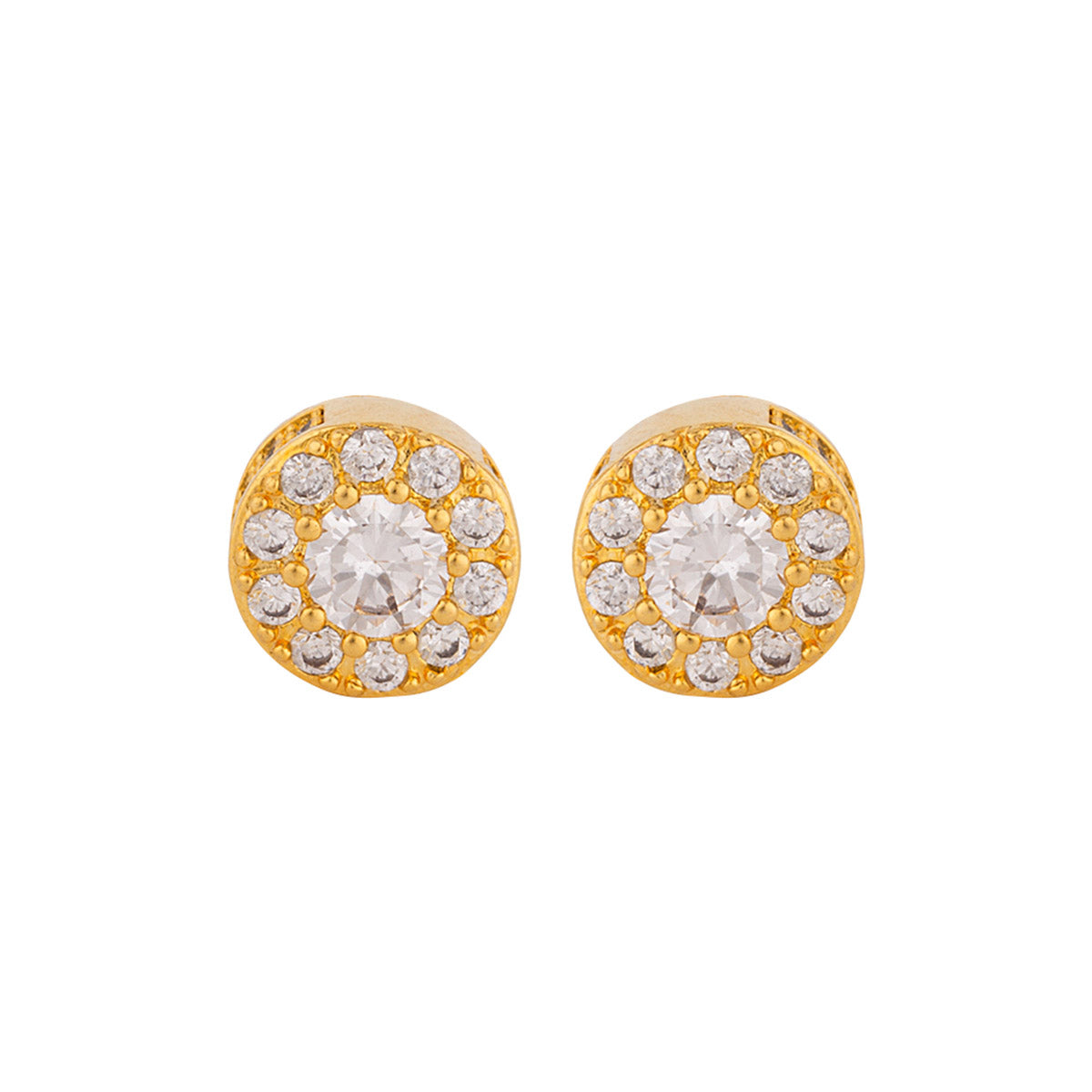 Gemstones adorned yellow gold plated stud earrings. Made from brass. Pair with formal and casual attire.