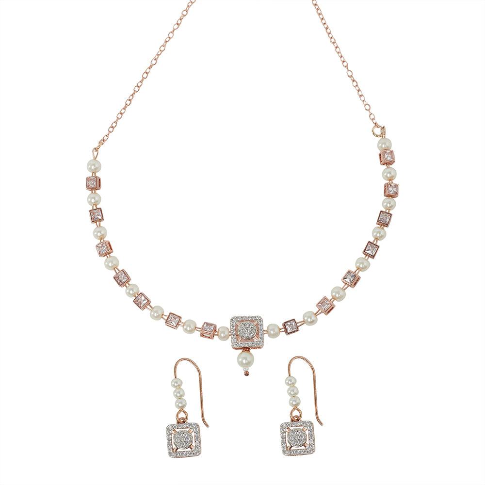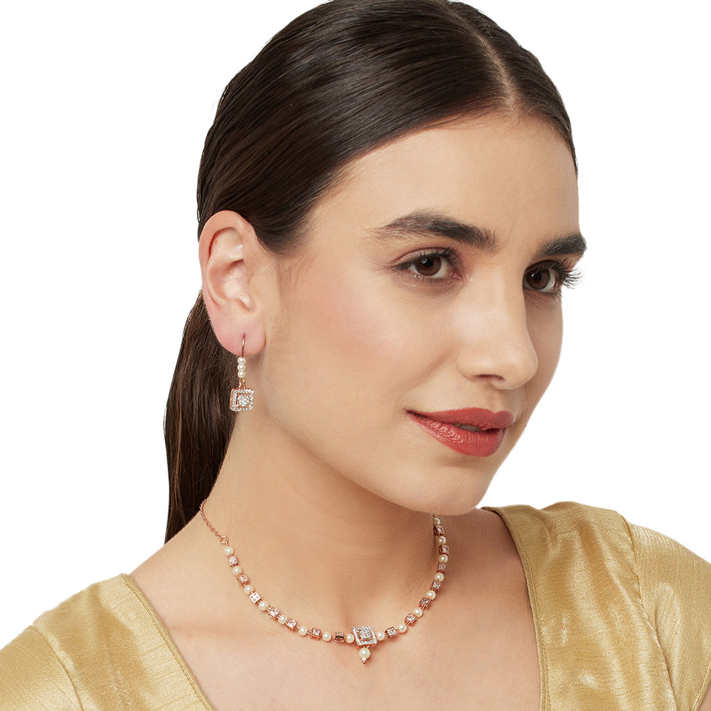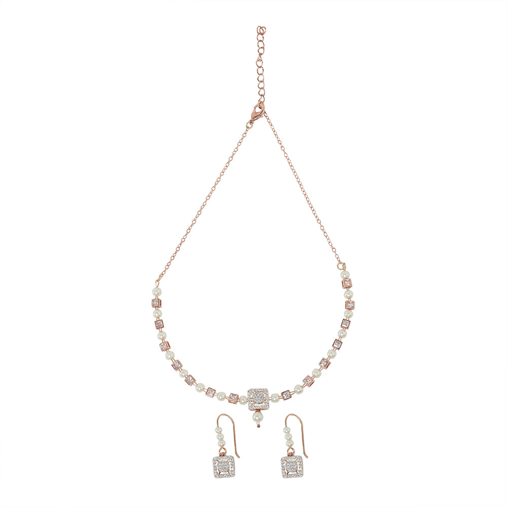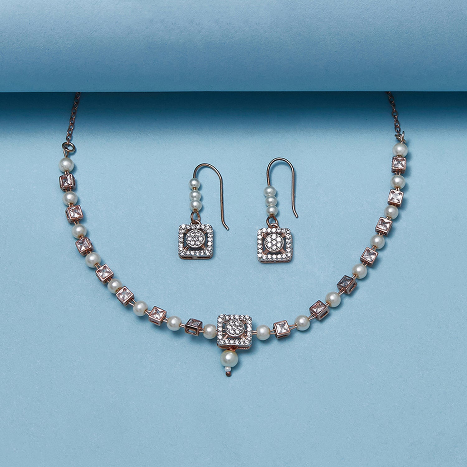 Yellow Gold Plated Zircons Adorned Brass Pendant Set